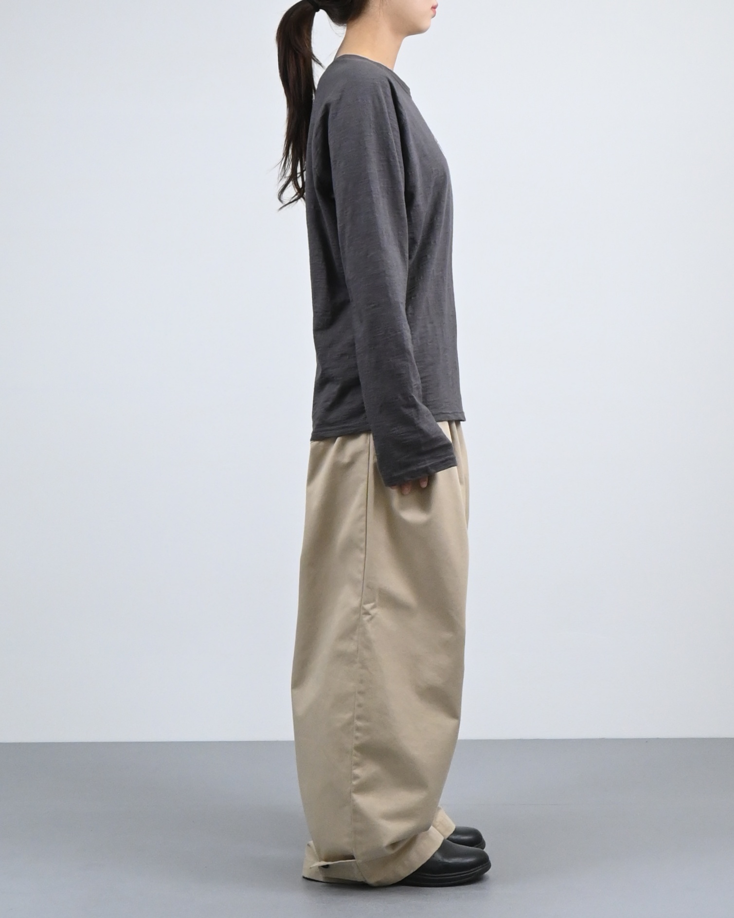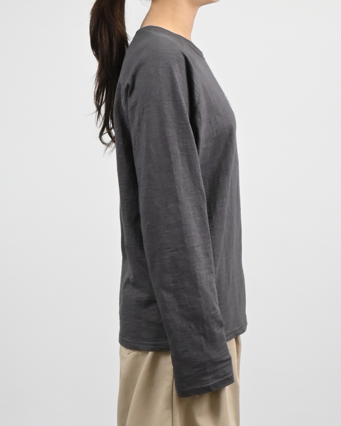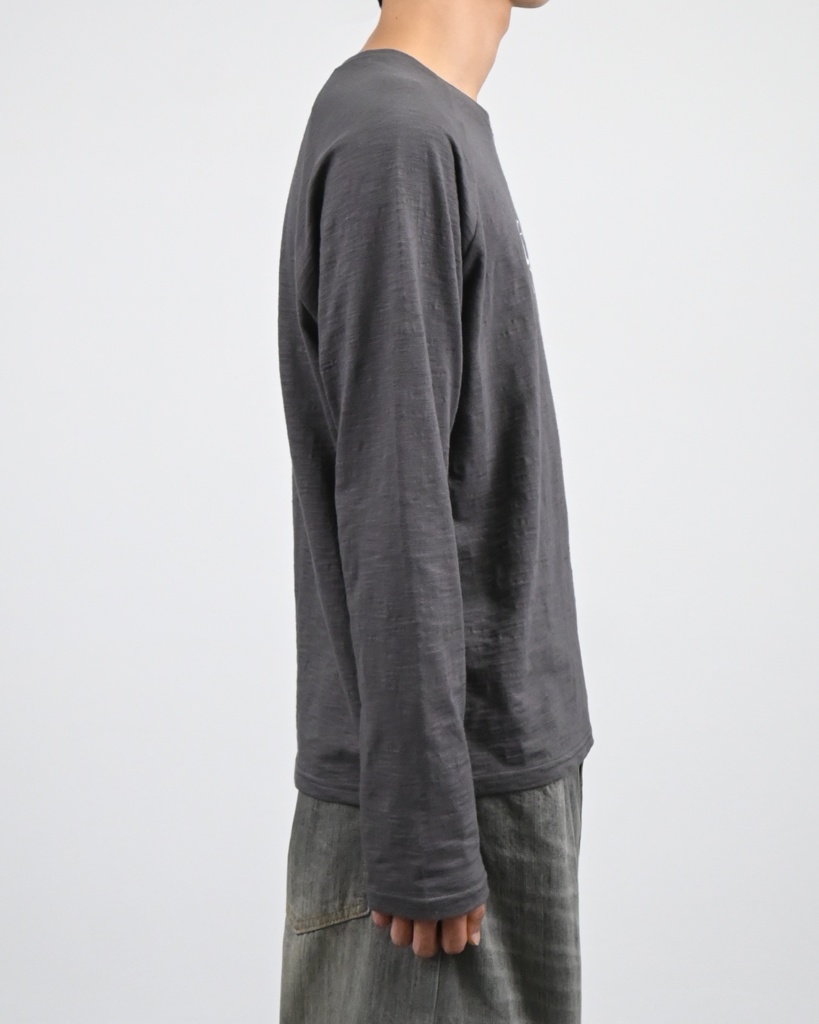 빈티지한 슬럽 원단에 자수 로고로 포인트를 준 롱 슬리브
