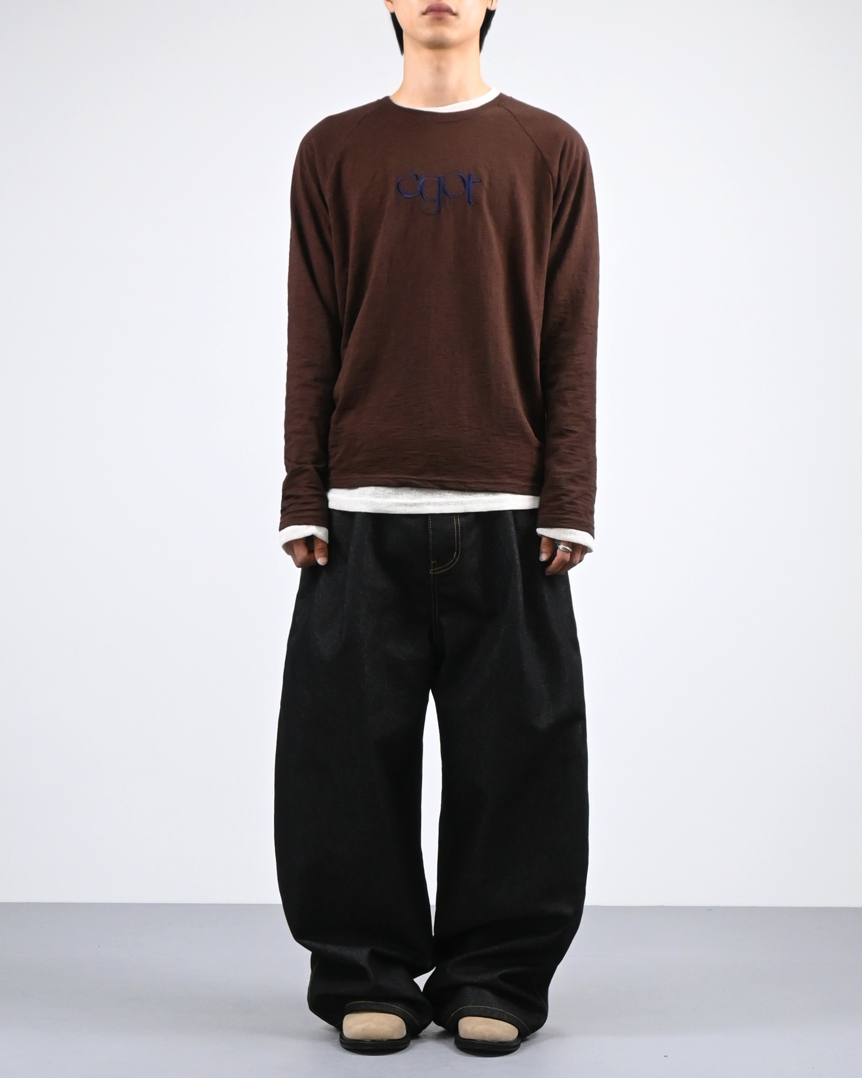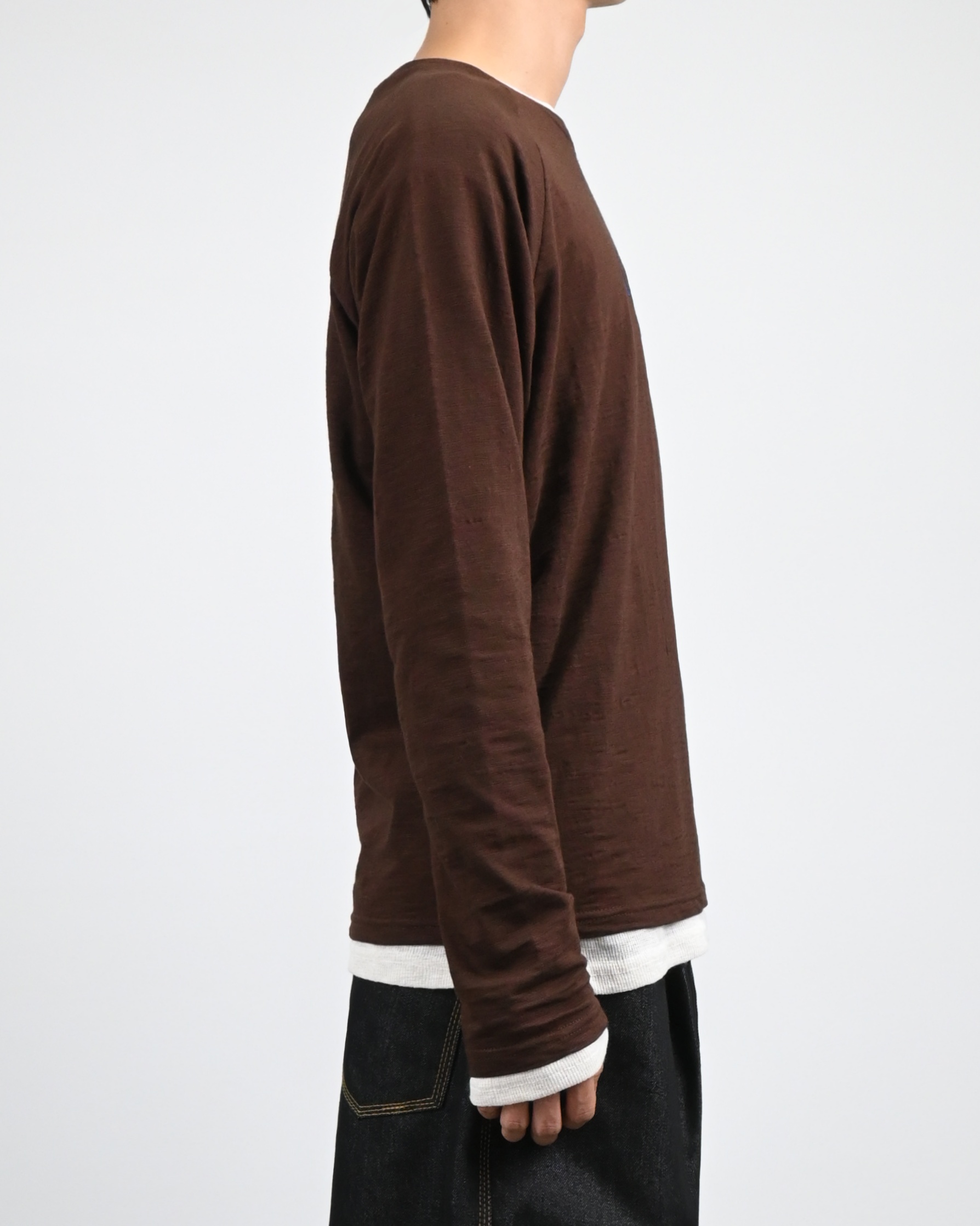 빈티지한 슬럽 원단에 자수 로고로 포인트를 준 롱 슬리브