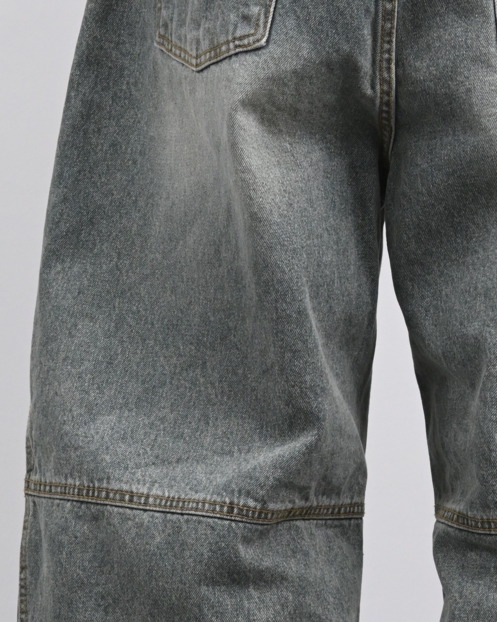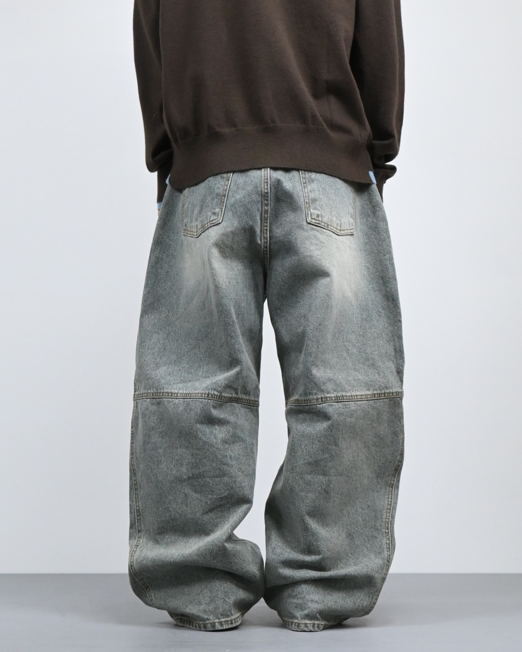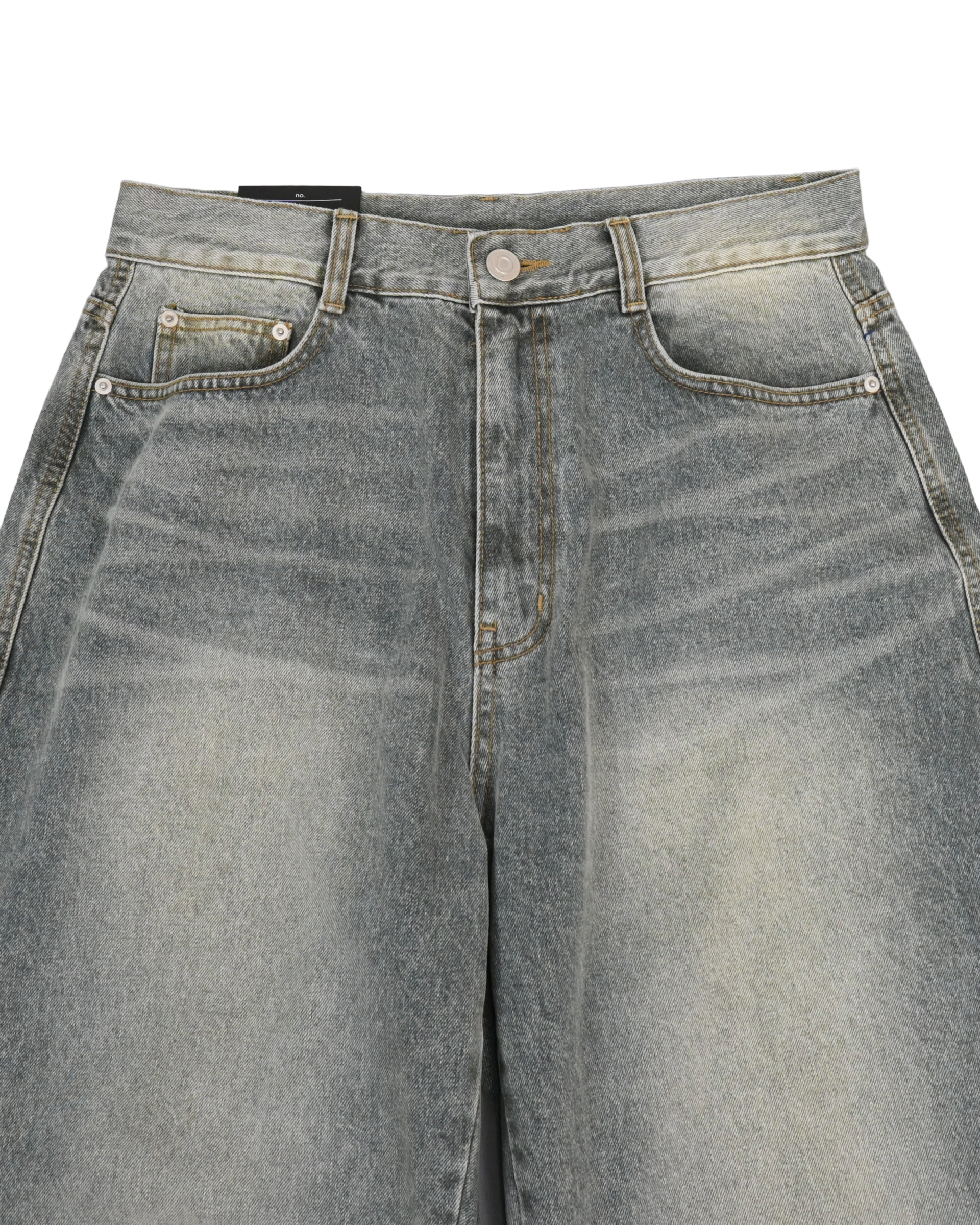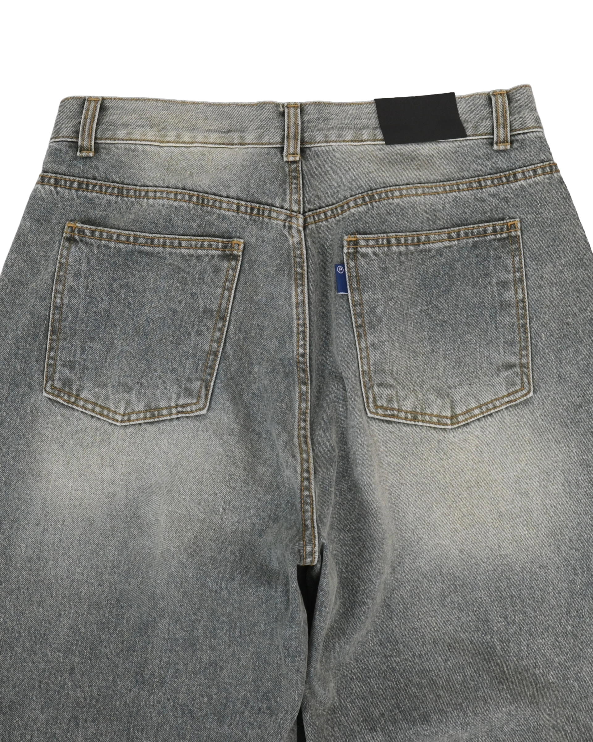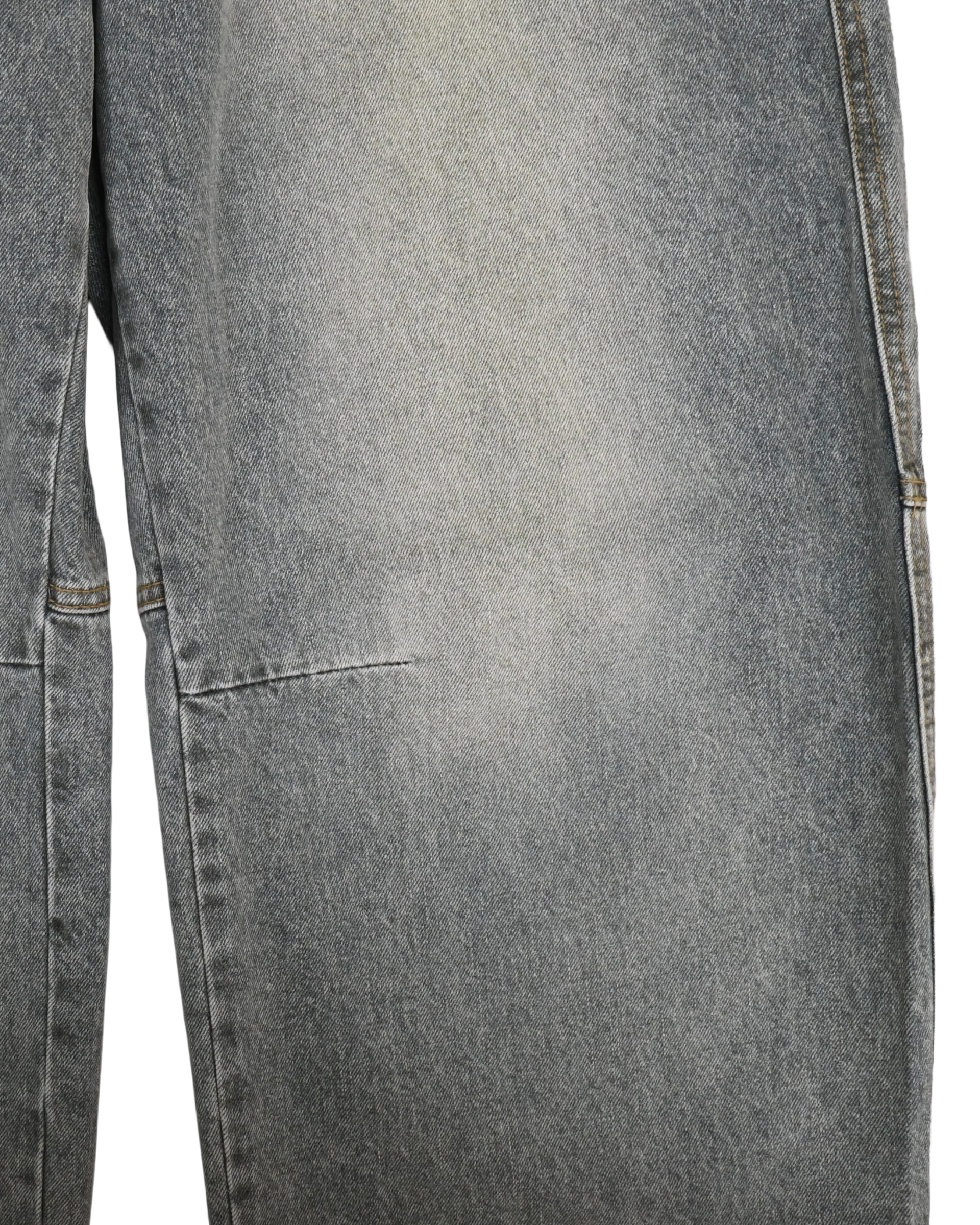 그레이 색 데님 원단에 밝은 워싱을 넣어