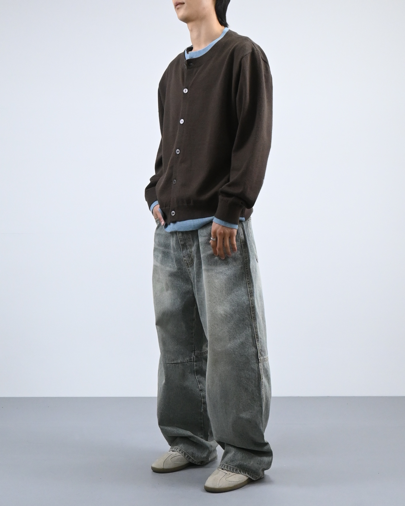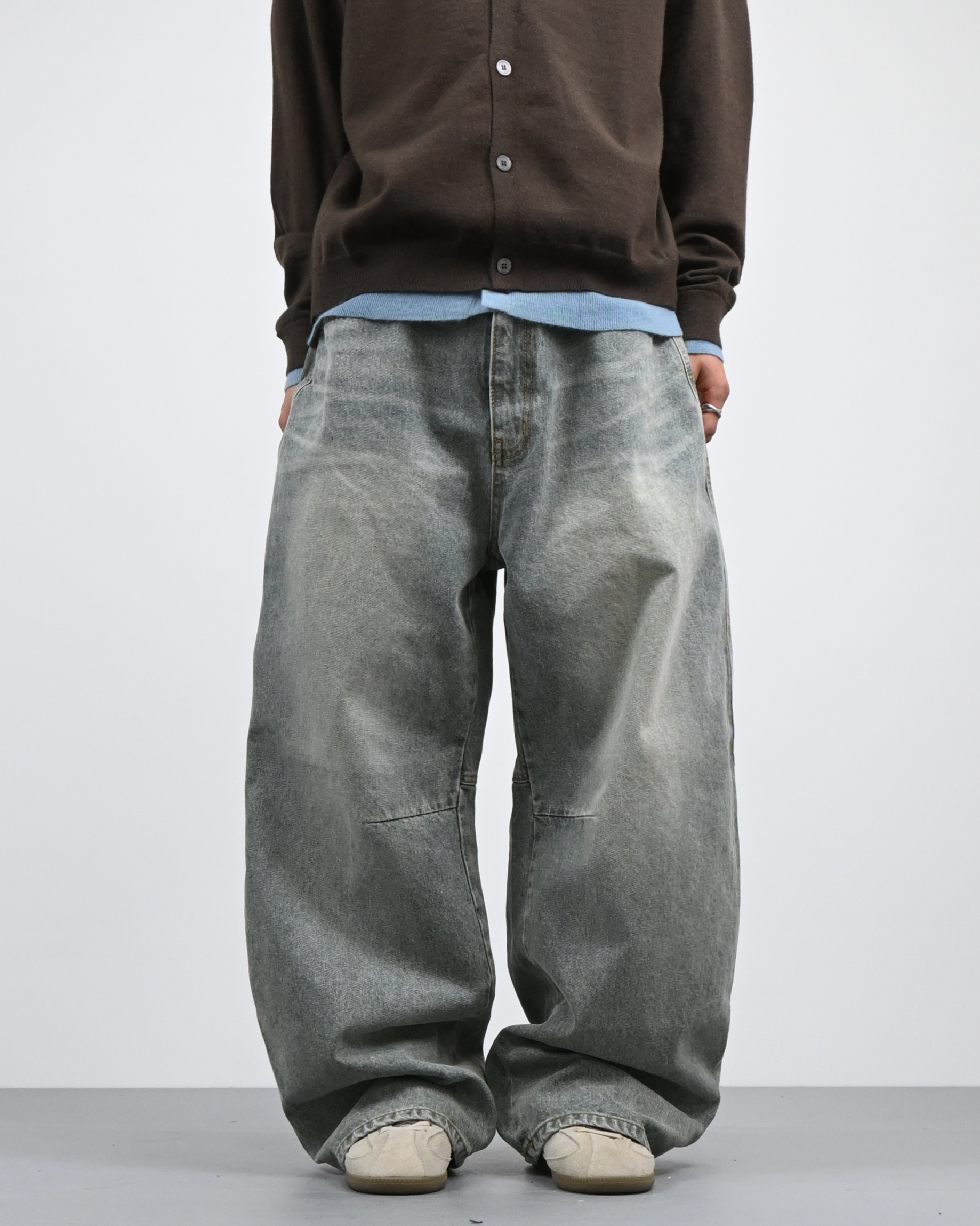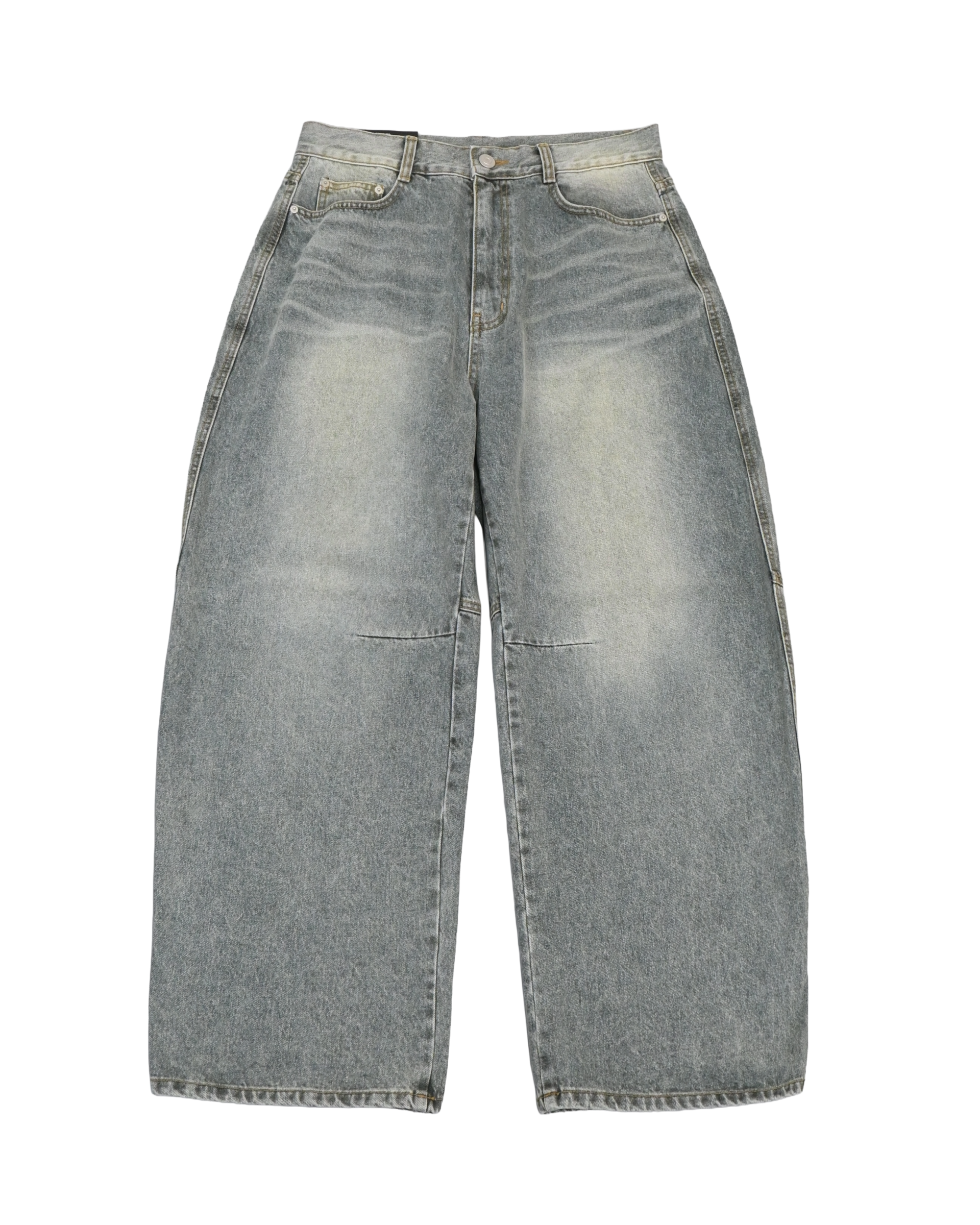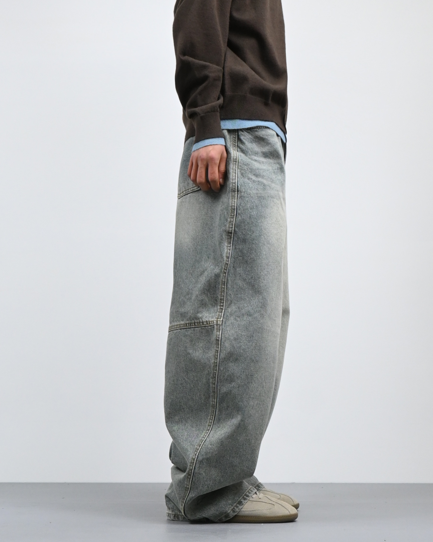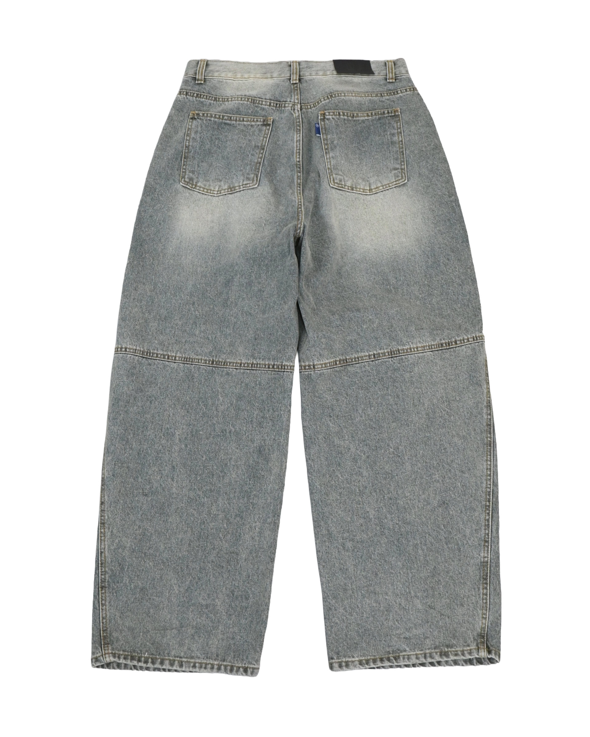 그레이 색 데님 원단에 밝은 워싱을 넣어