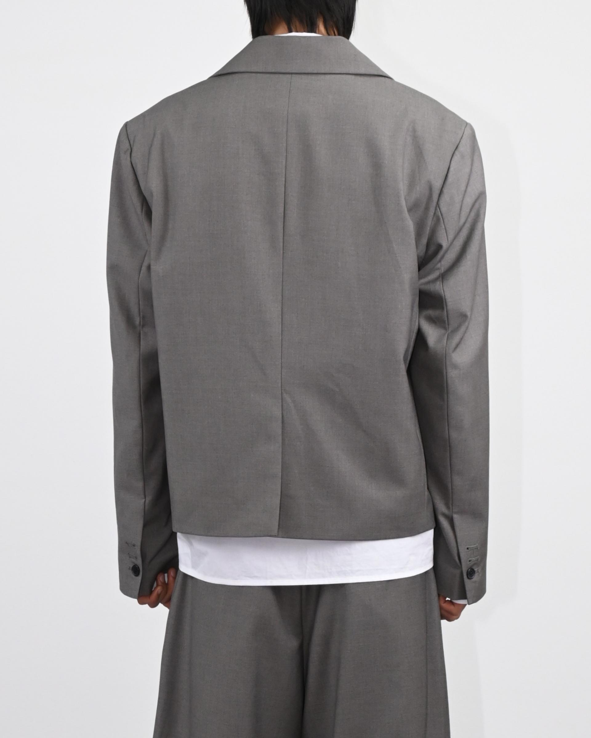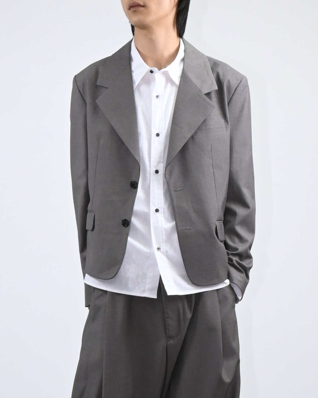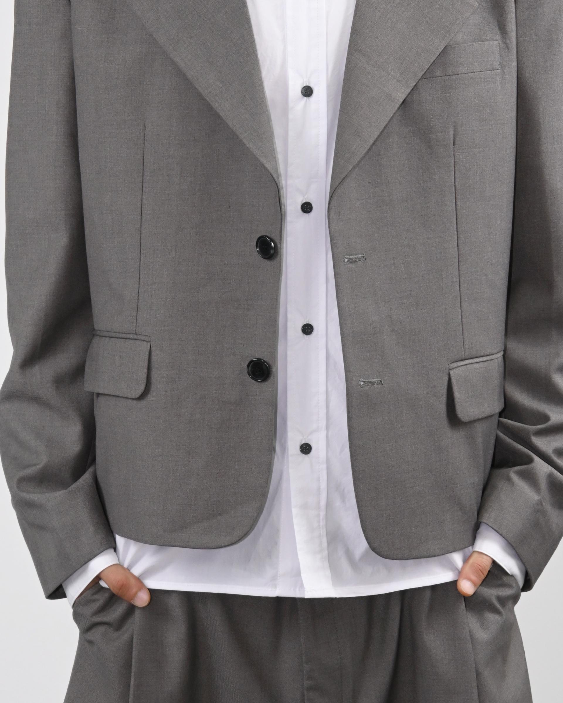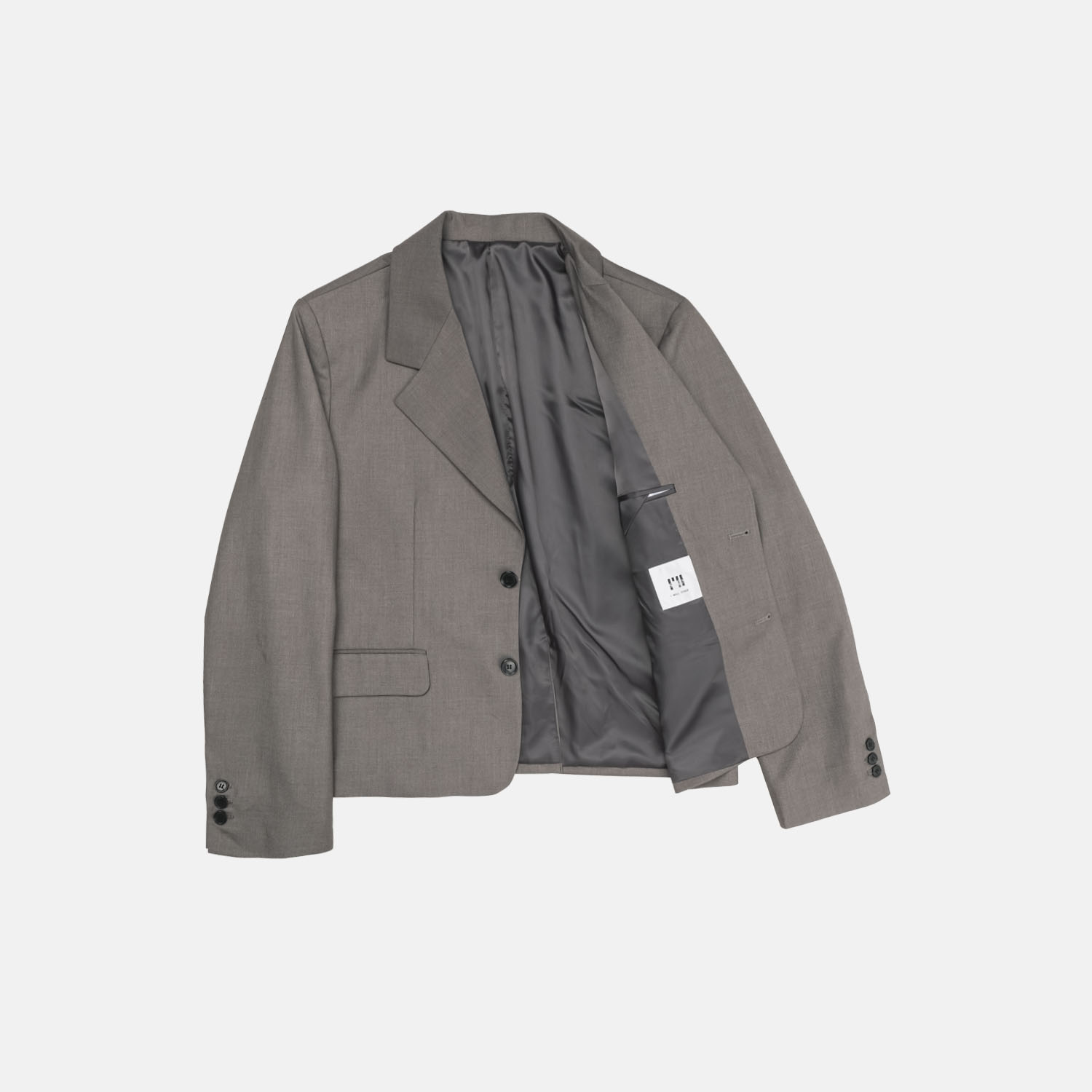 크롭한 기장으로 떨어지는 투 버튼 자켓