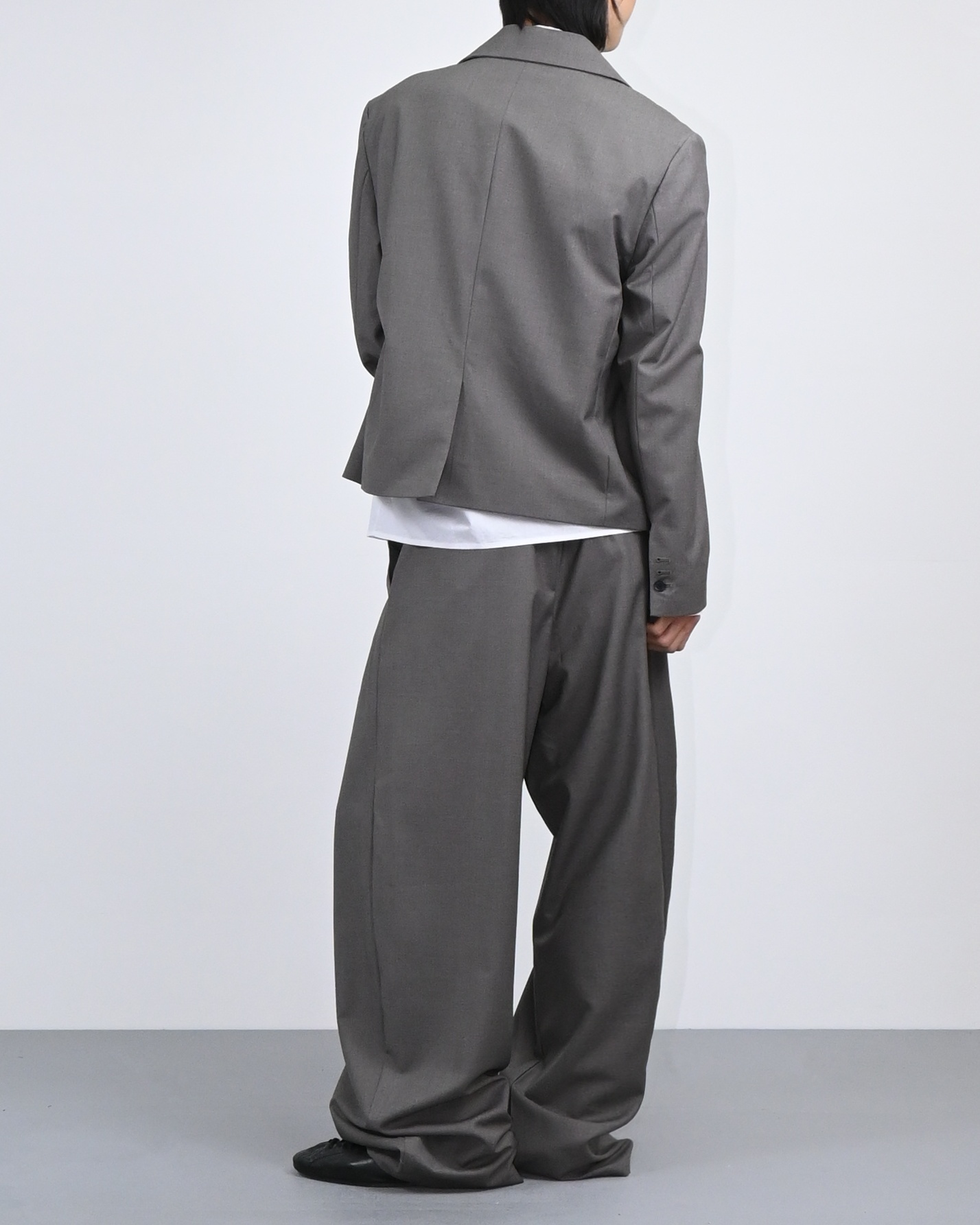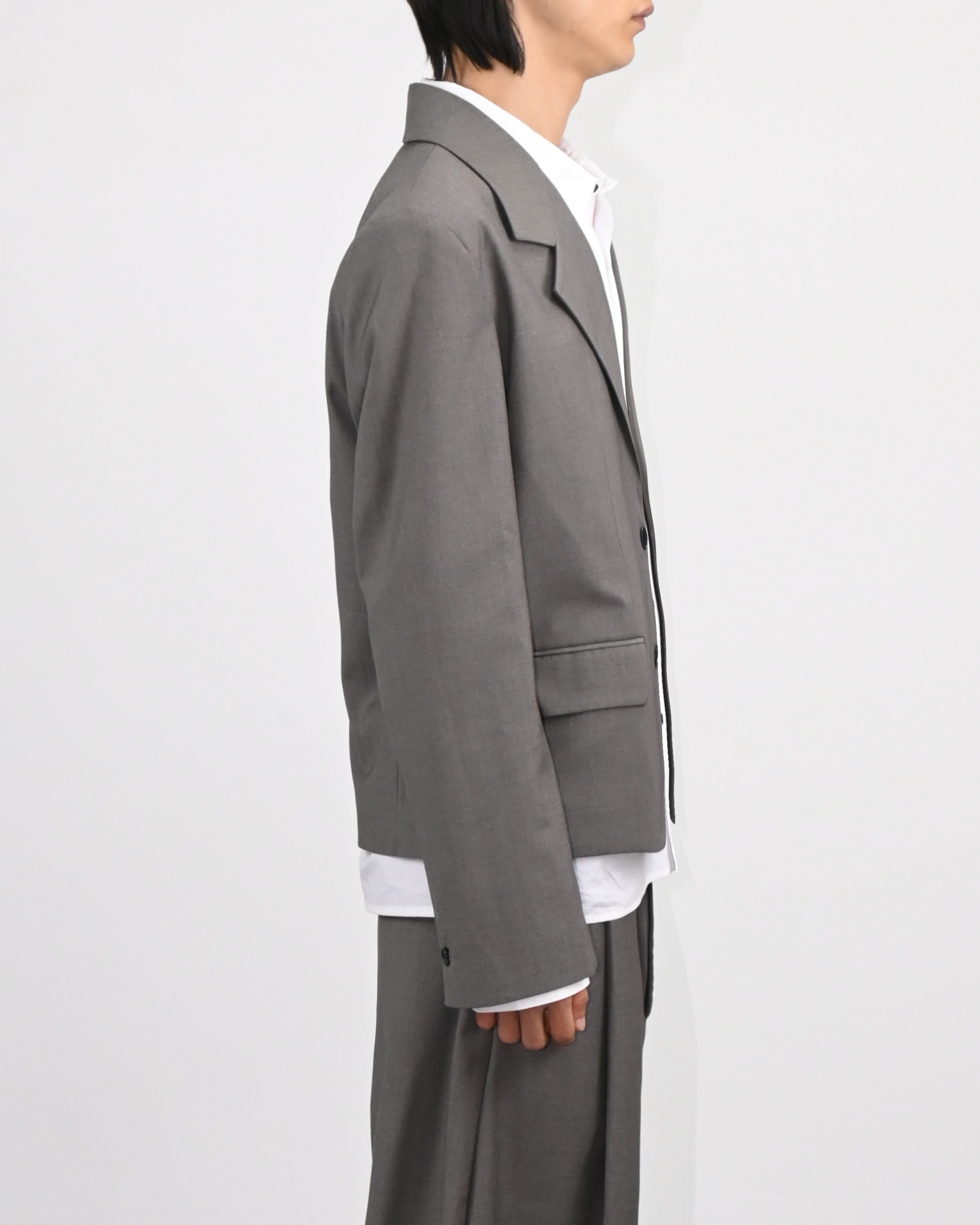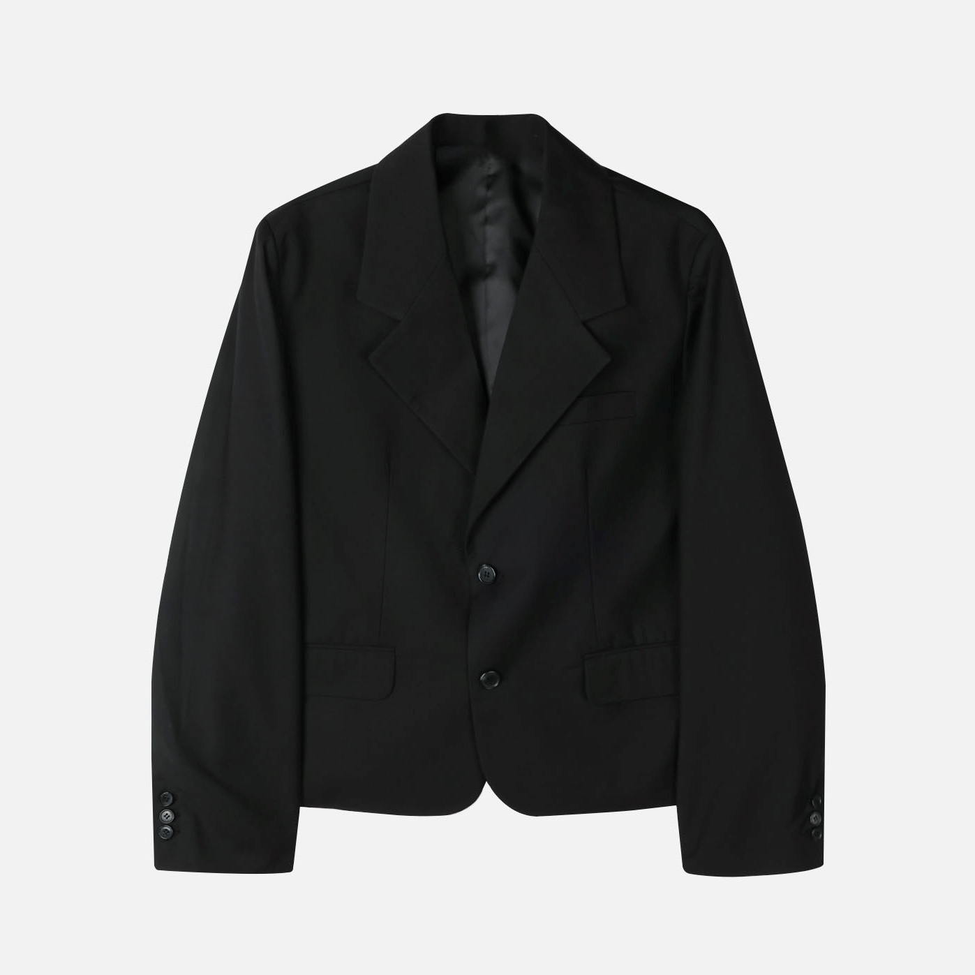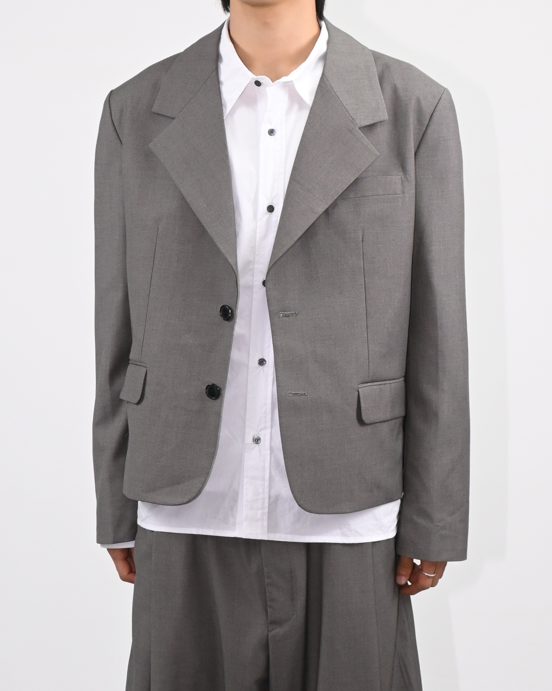 크롭한 기장으로 떨어지는 투 버튼 자켓