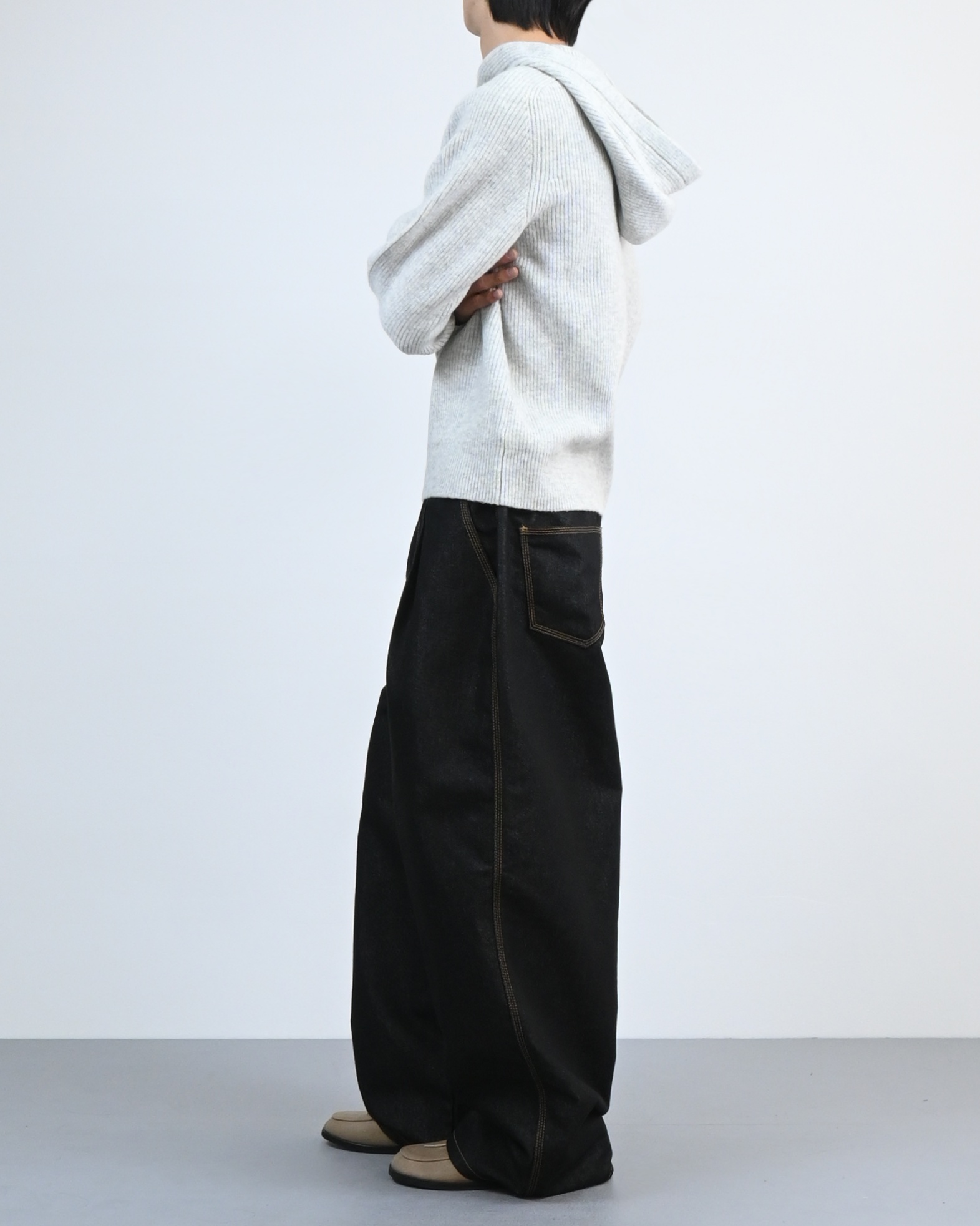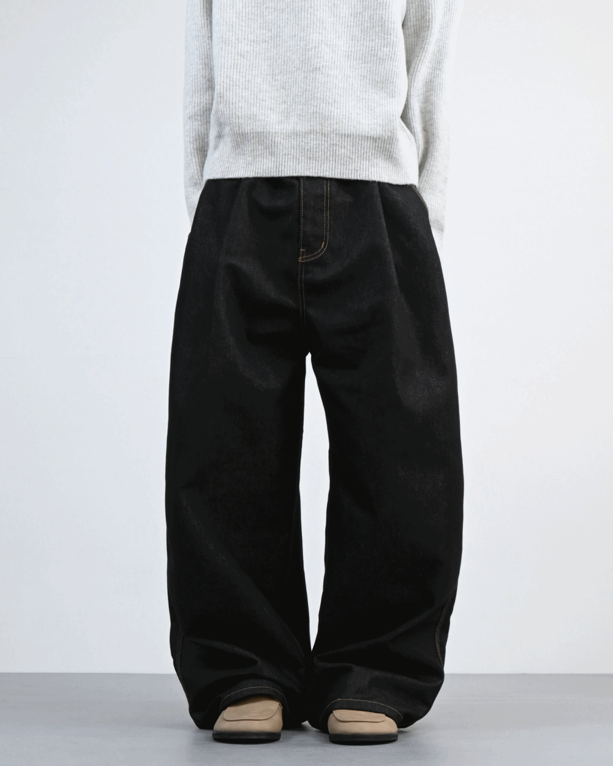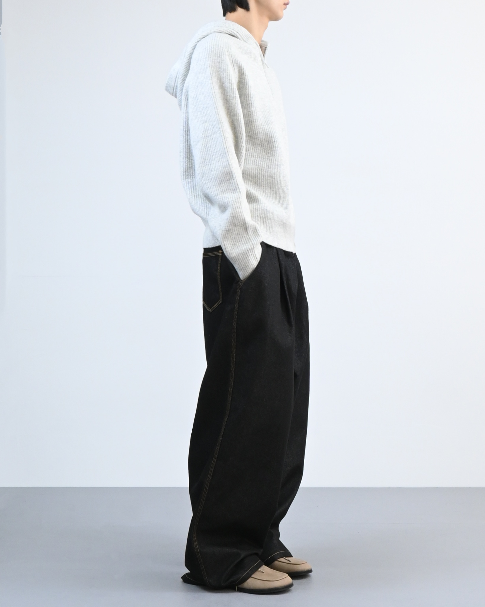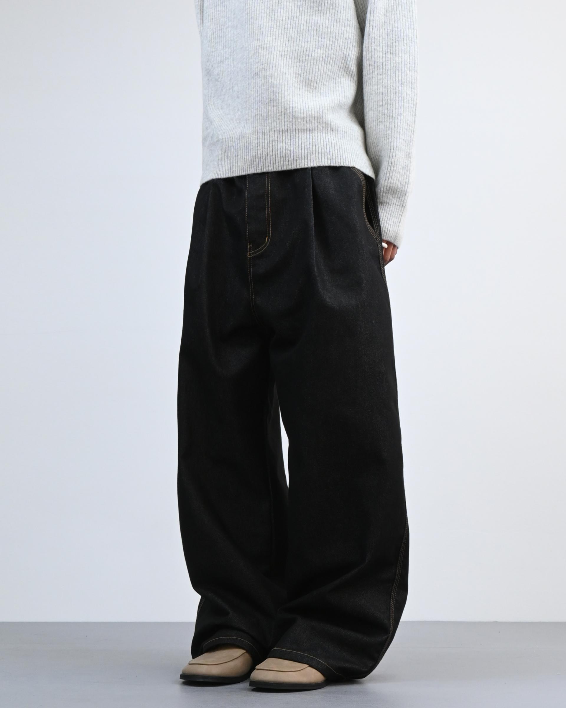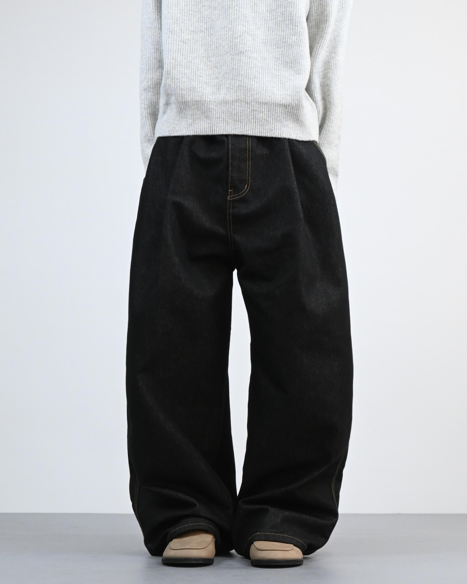 여유 있는 실루엣과 깊은 원턱으로
