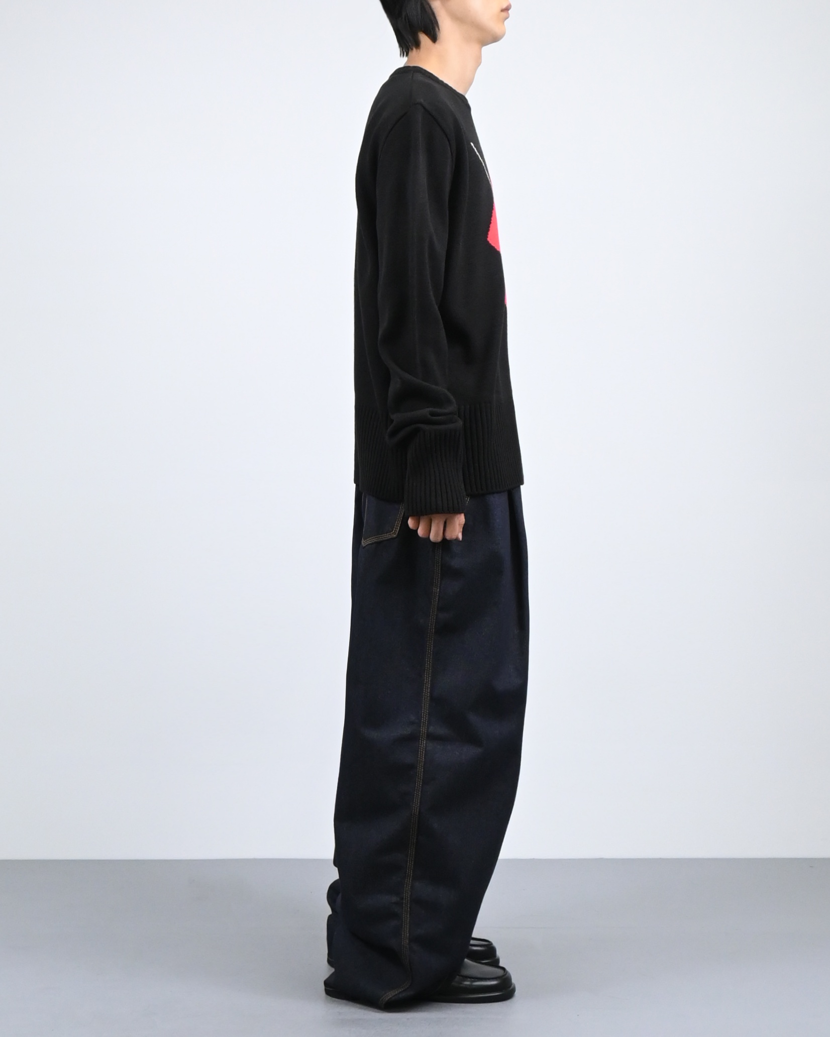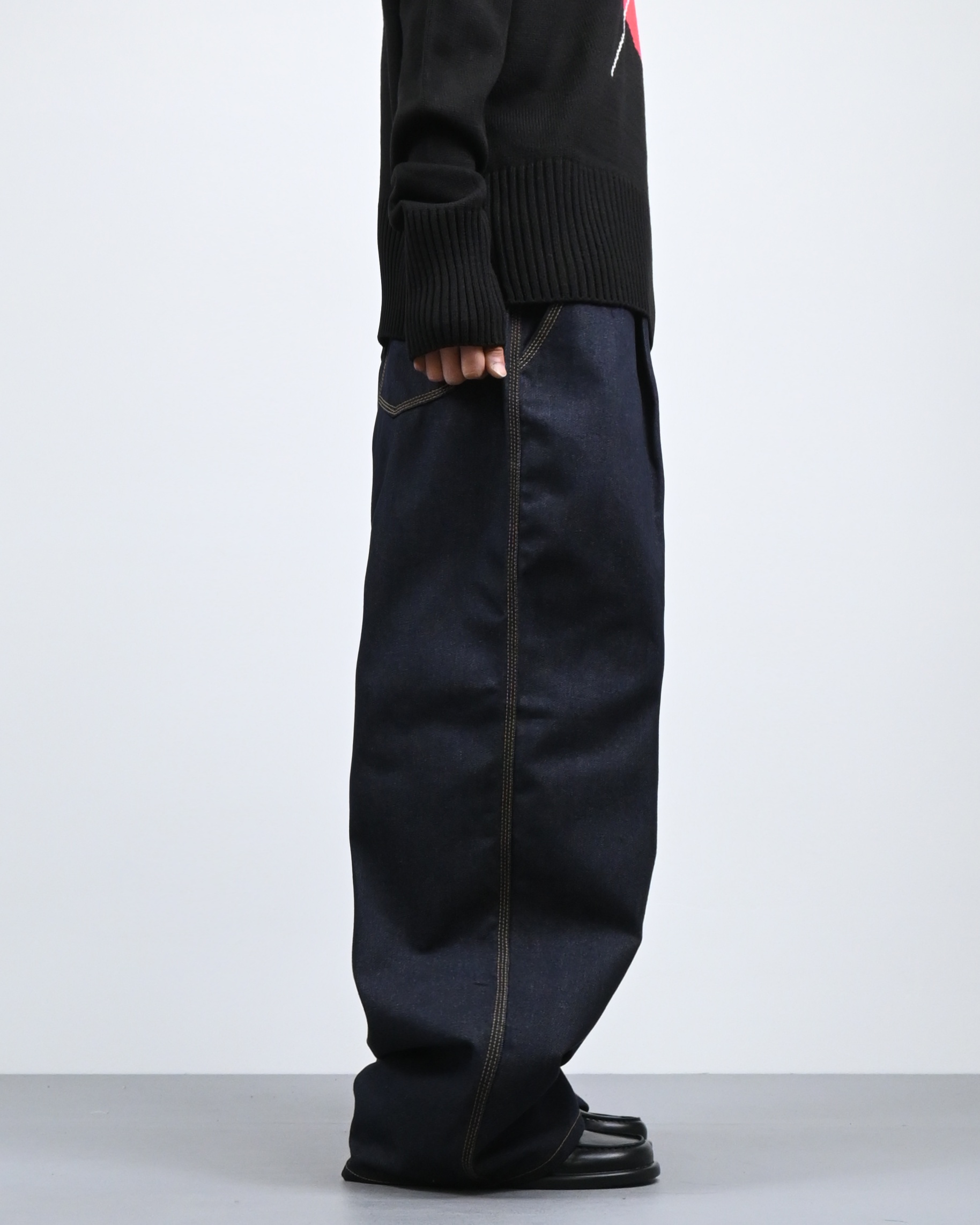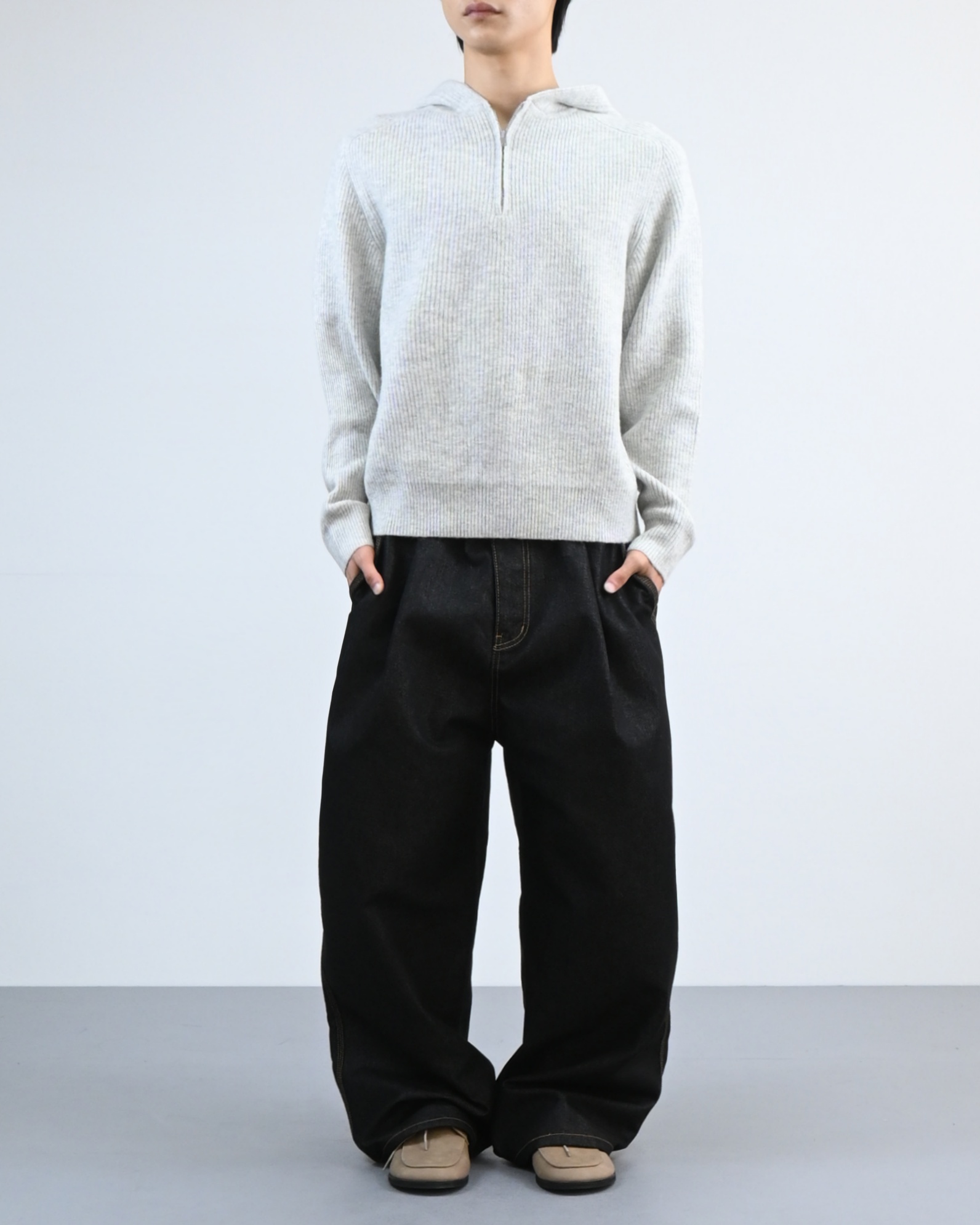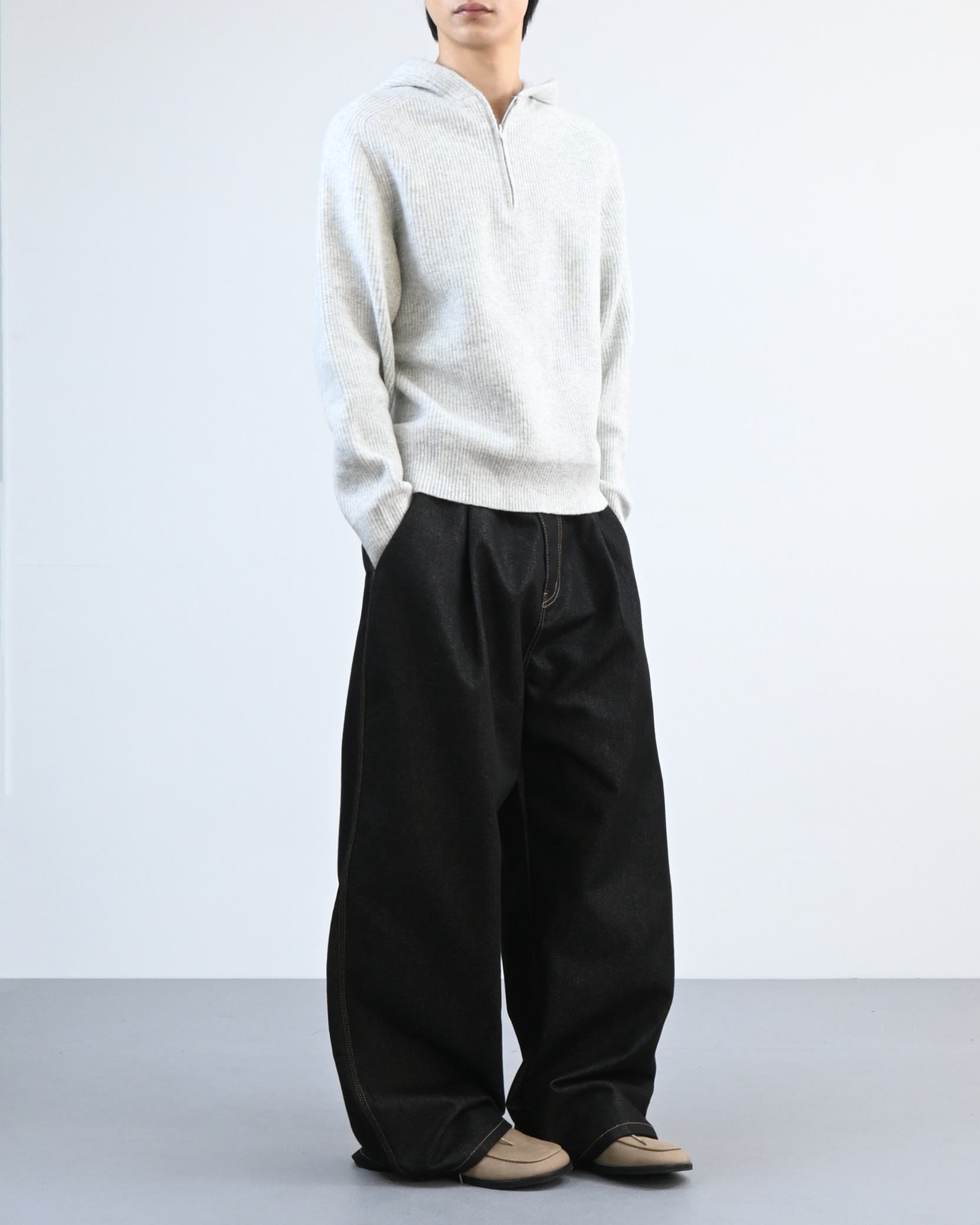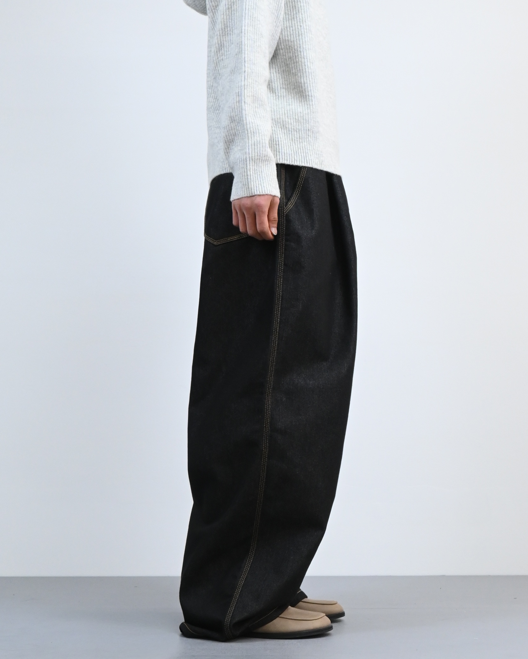 여유 있는 실루엣과 깊은 원턱으로