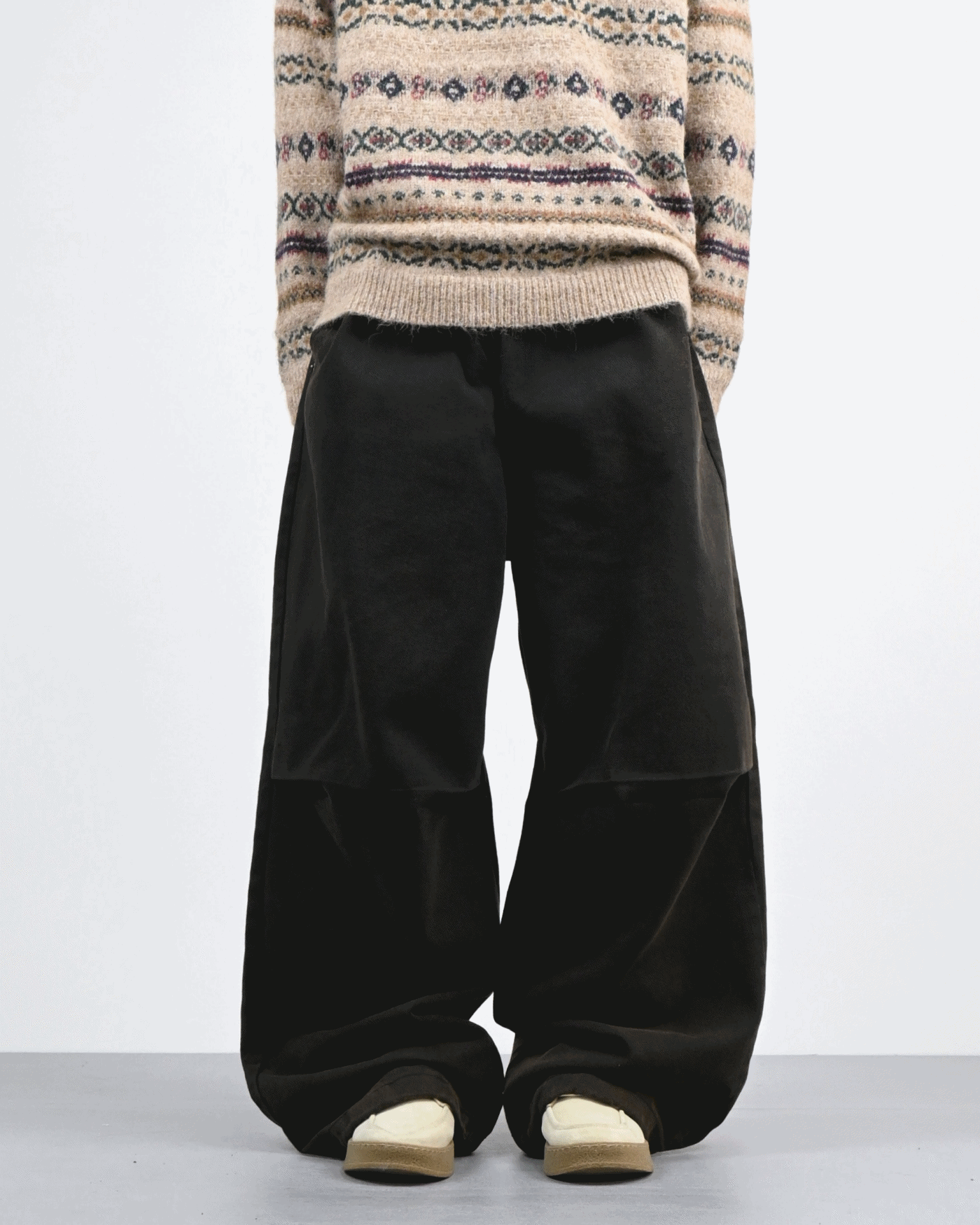 무릎에 턱 디테일로 와이드한 볼륨감 연출