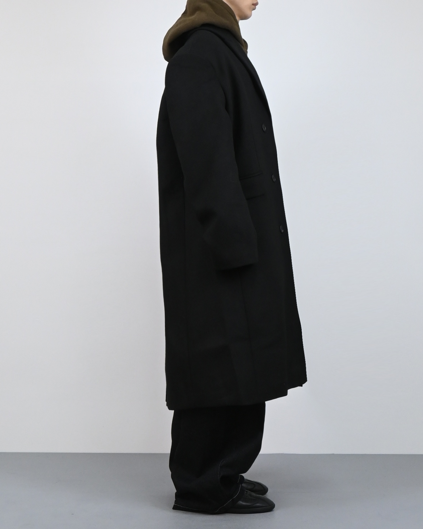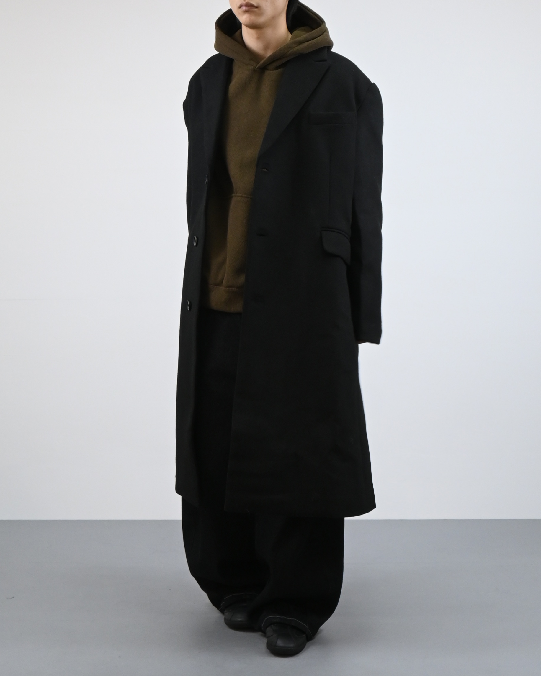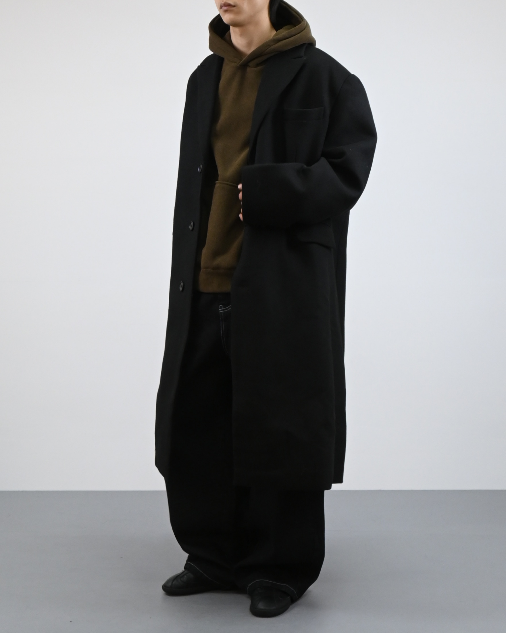 고밀도 울 혼방 원단으로 제작된 클래식 롱 코트
