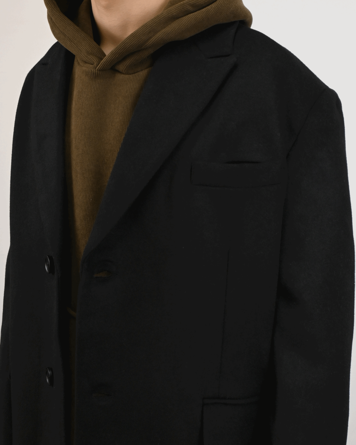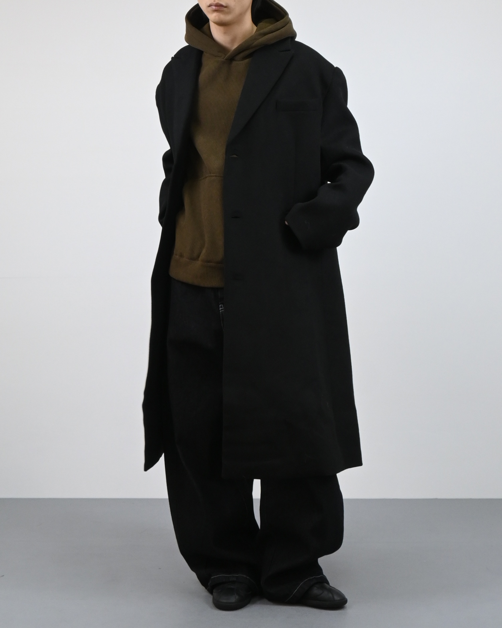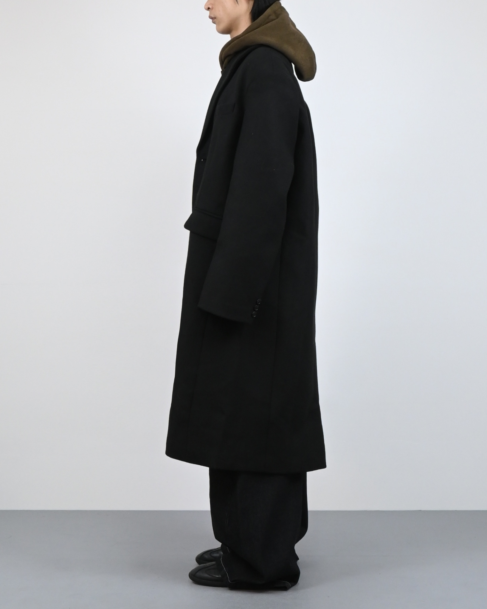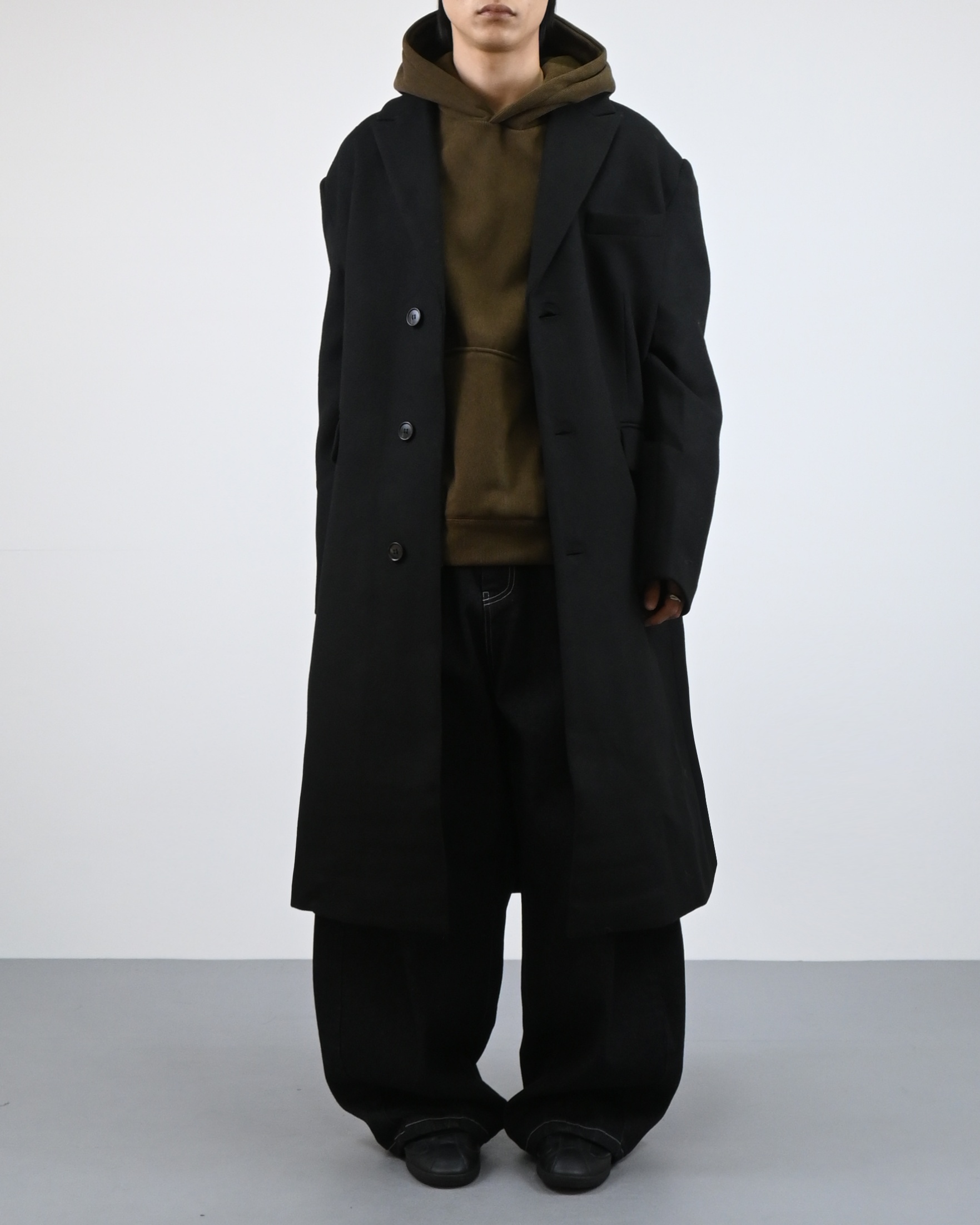고밀도 울 혼방 원단으로 제작된 클래식 롱 코트