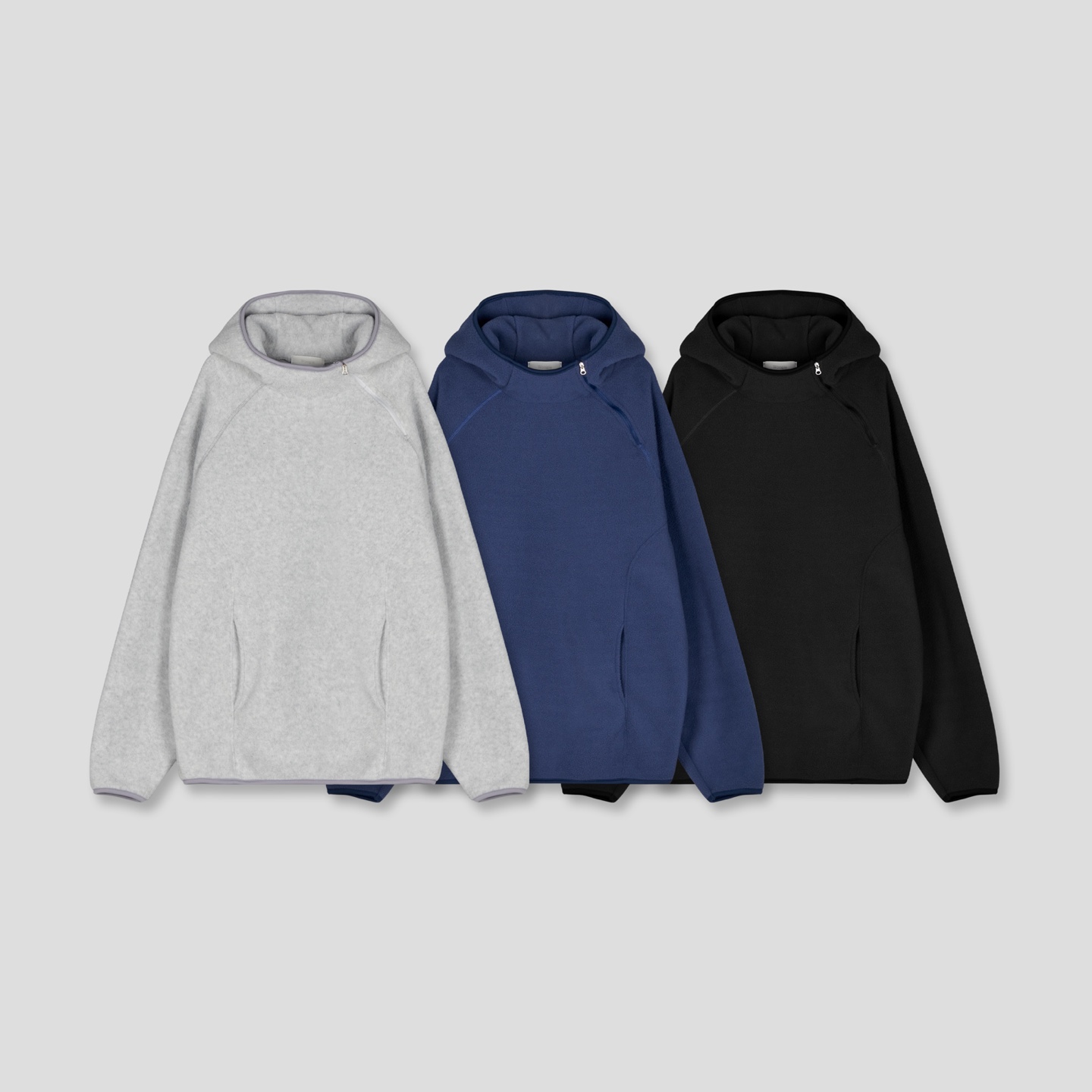 사이드 지퍼가 돋보이는 후리스 아노락