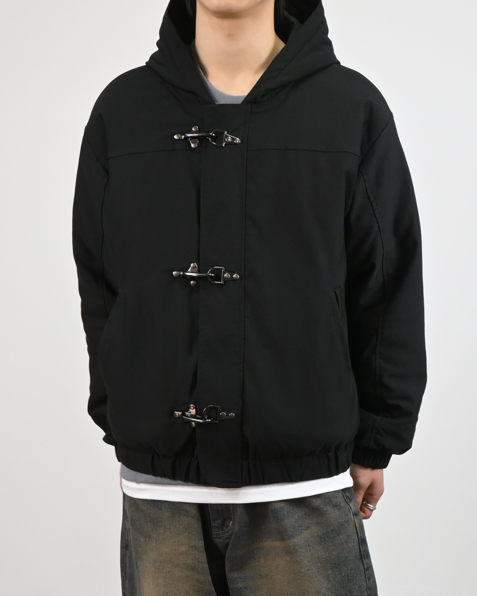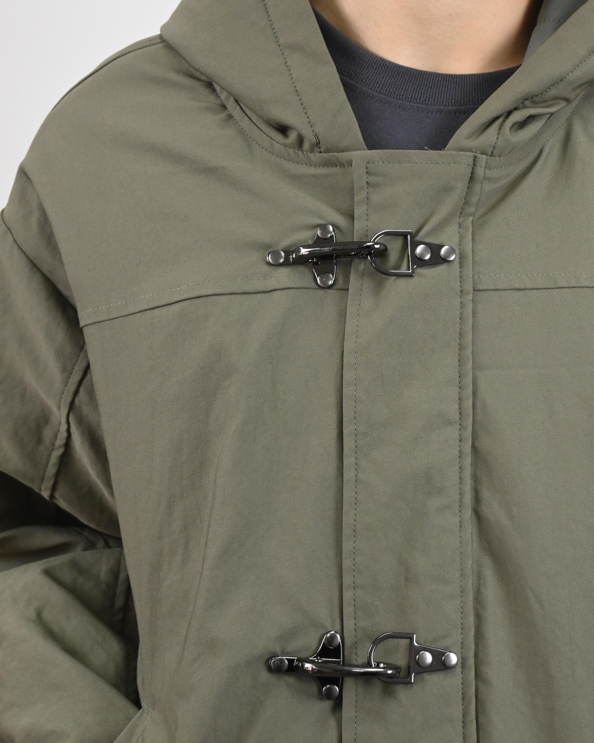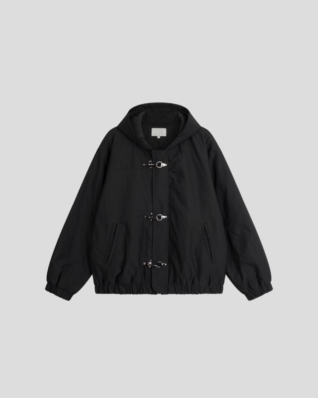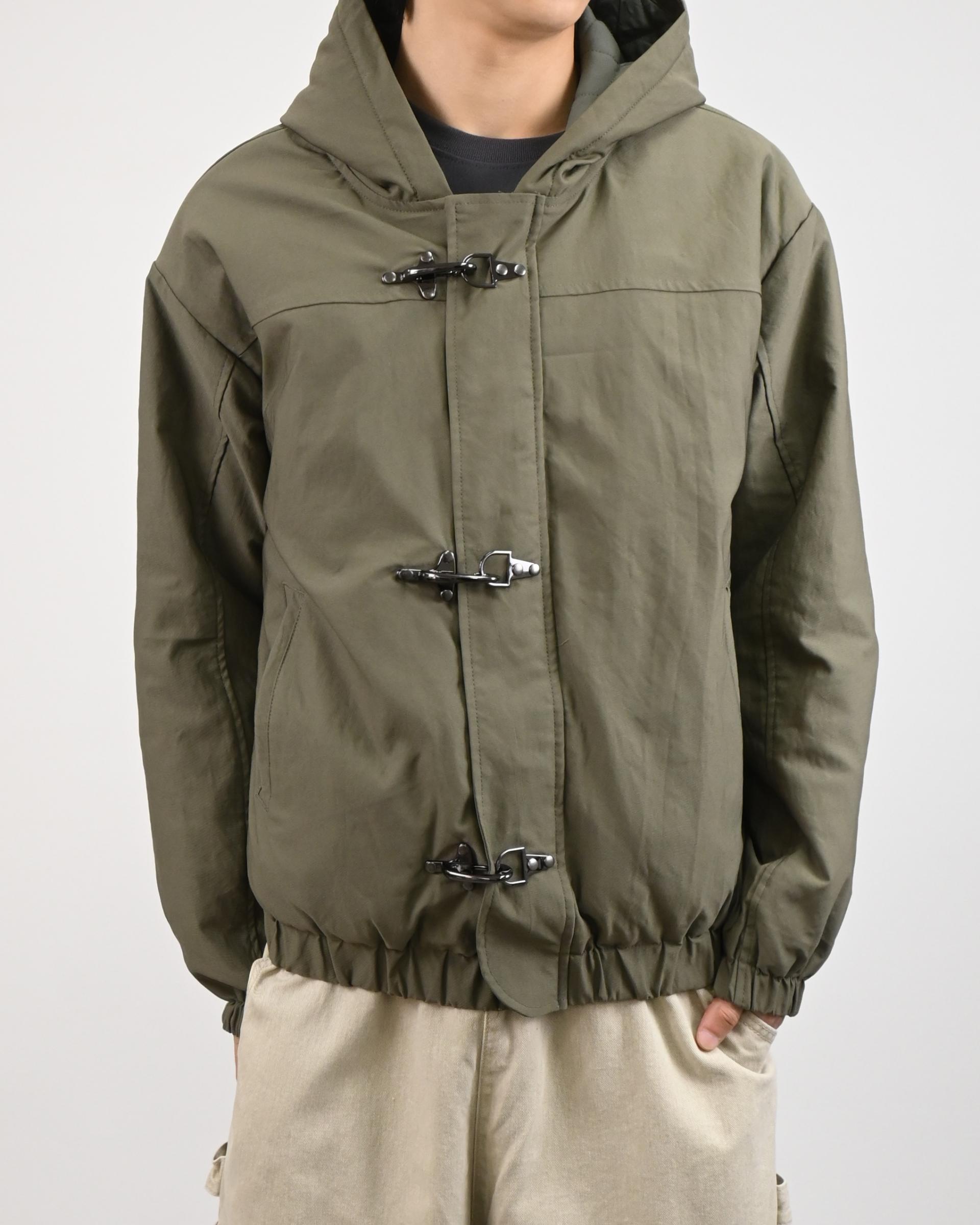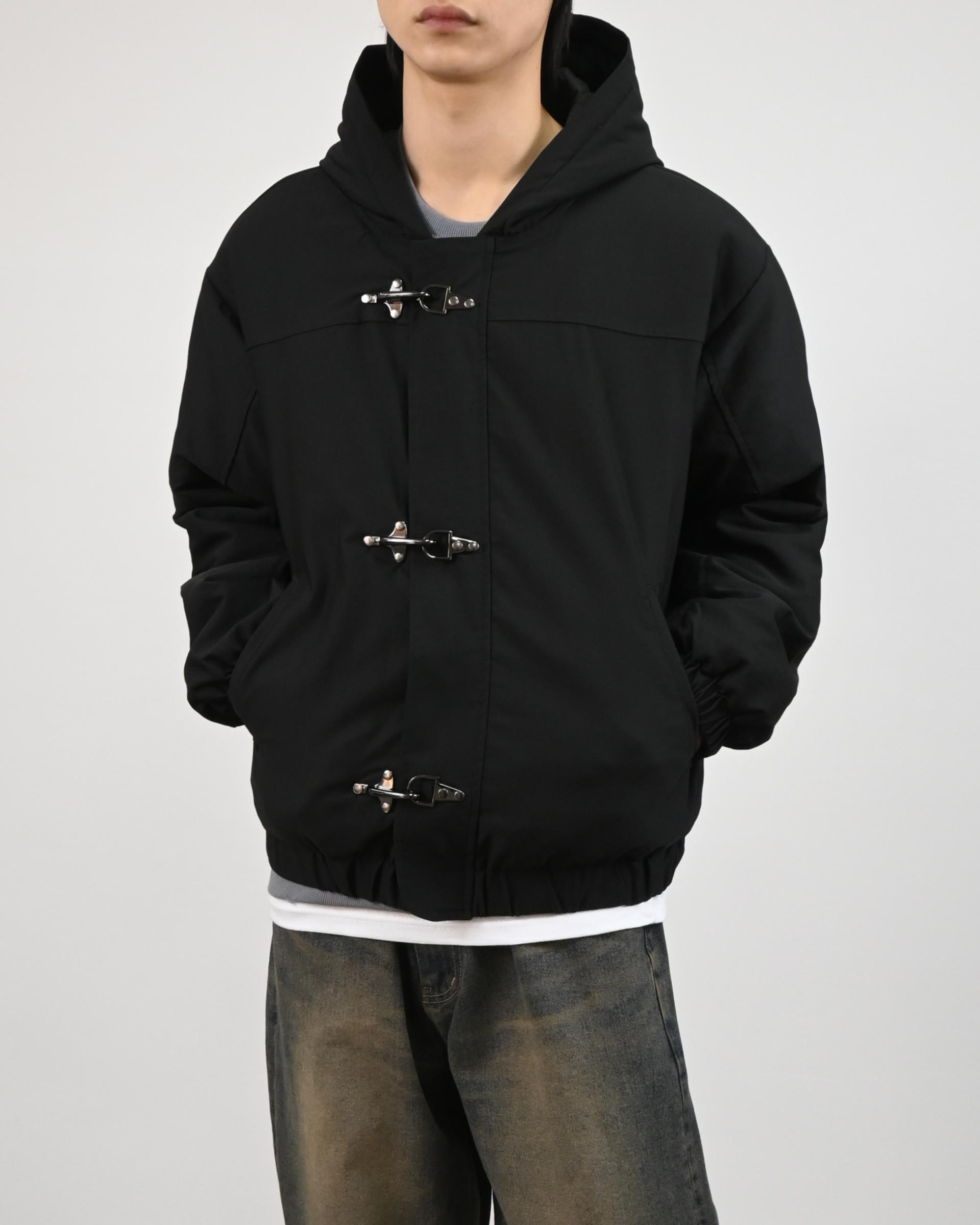 유니크한 후크가 돋보이는 점퍼입니다.