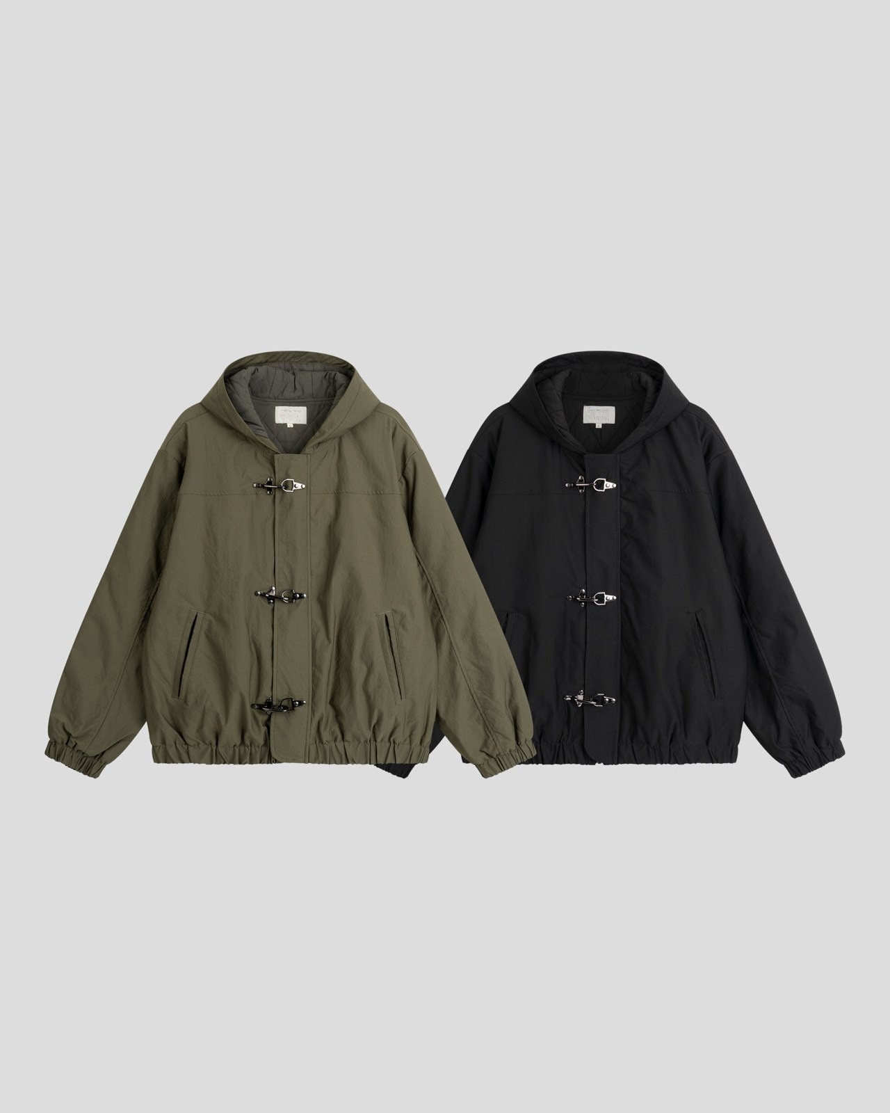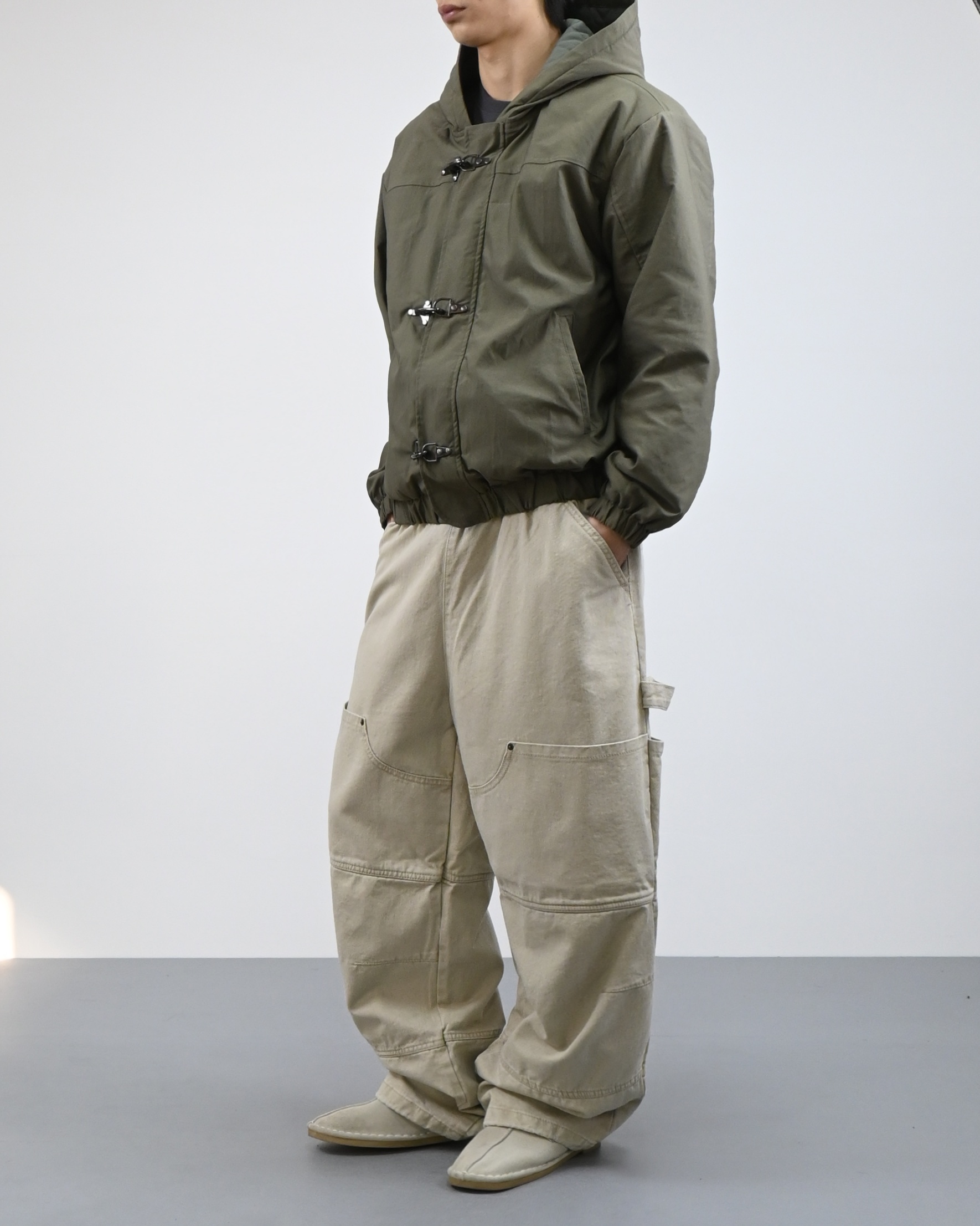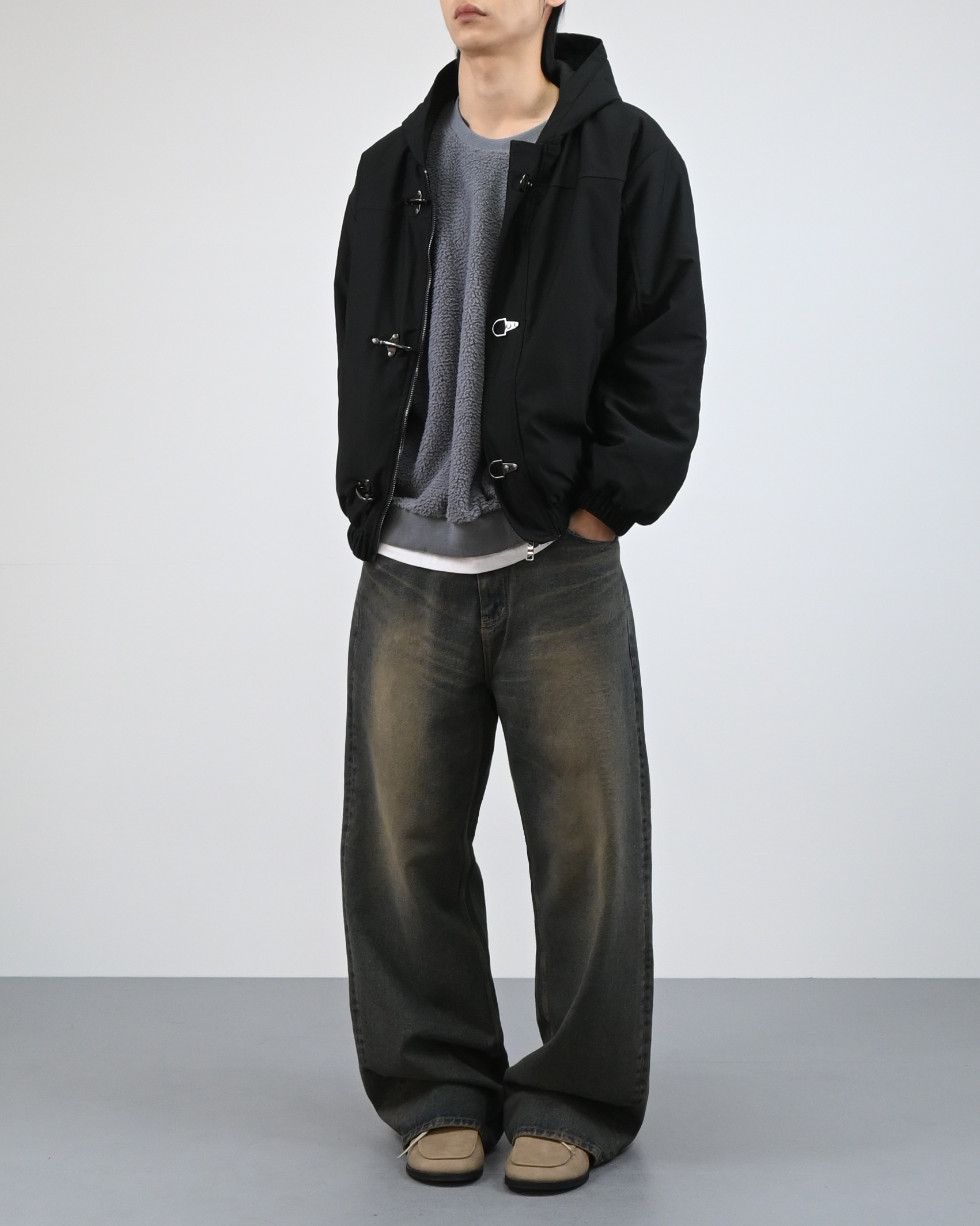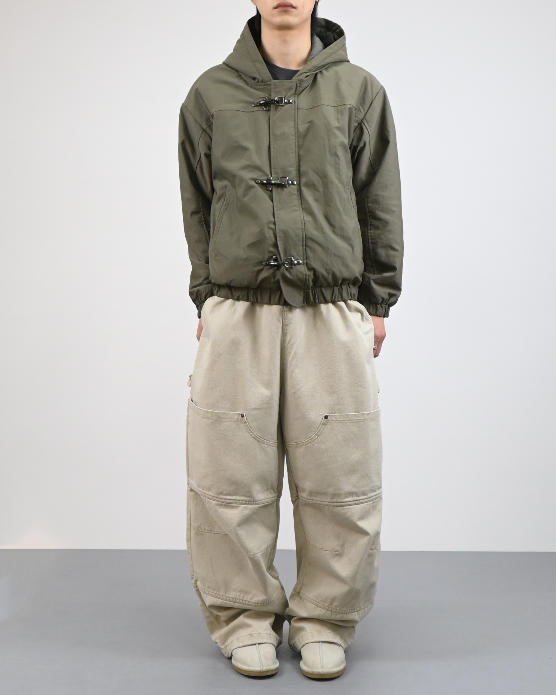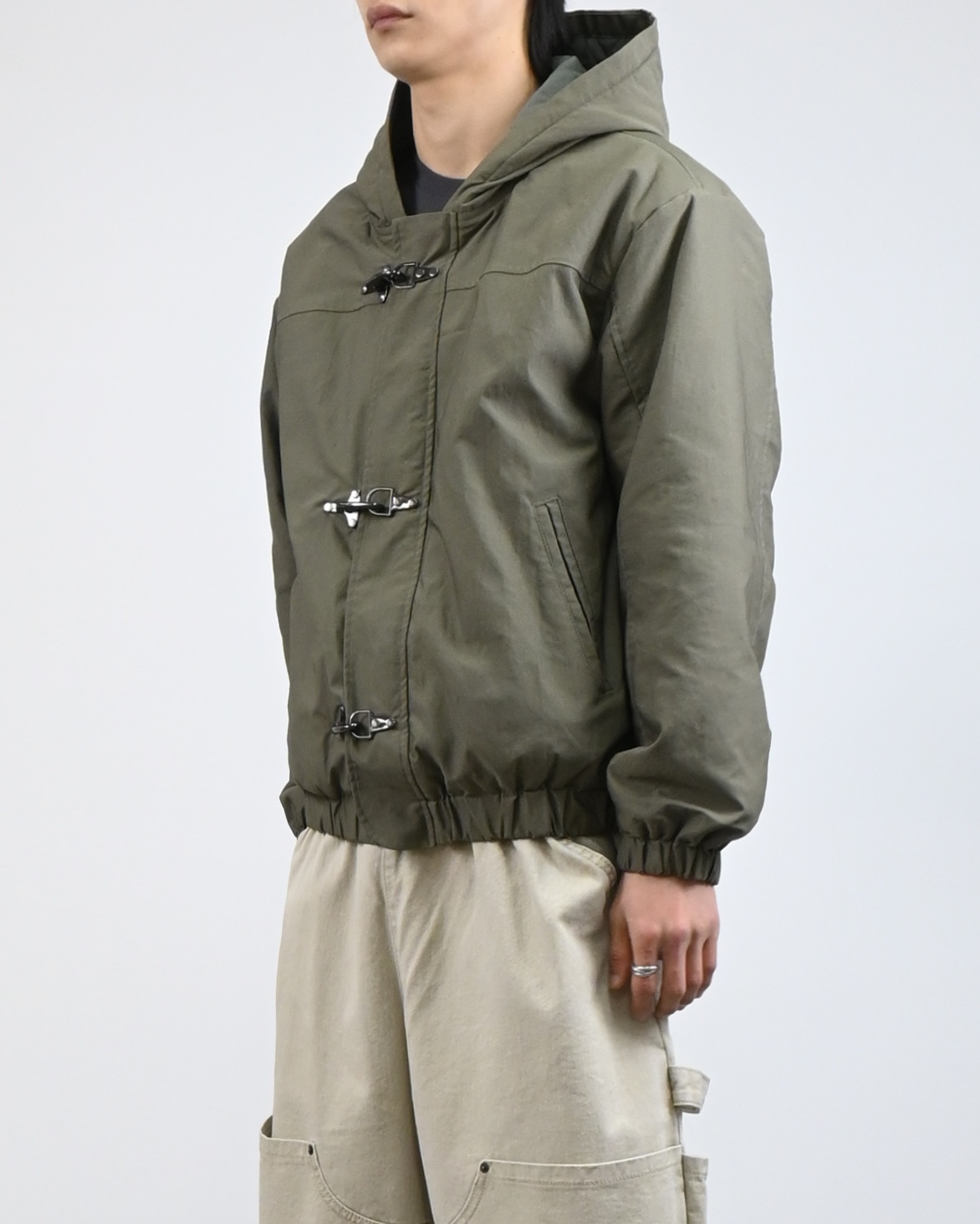 유니크한 후크가 돋보이는 점퍼입니다.