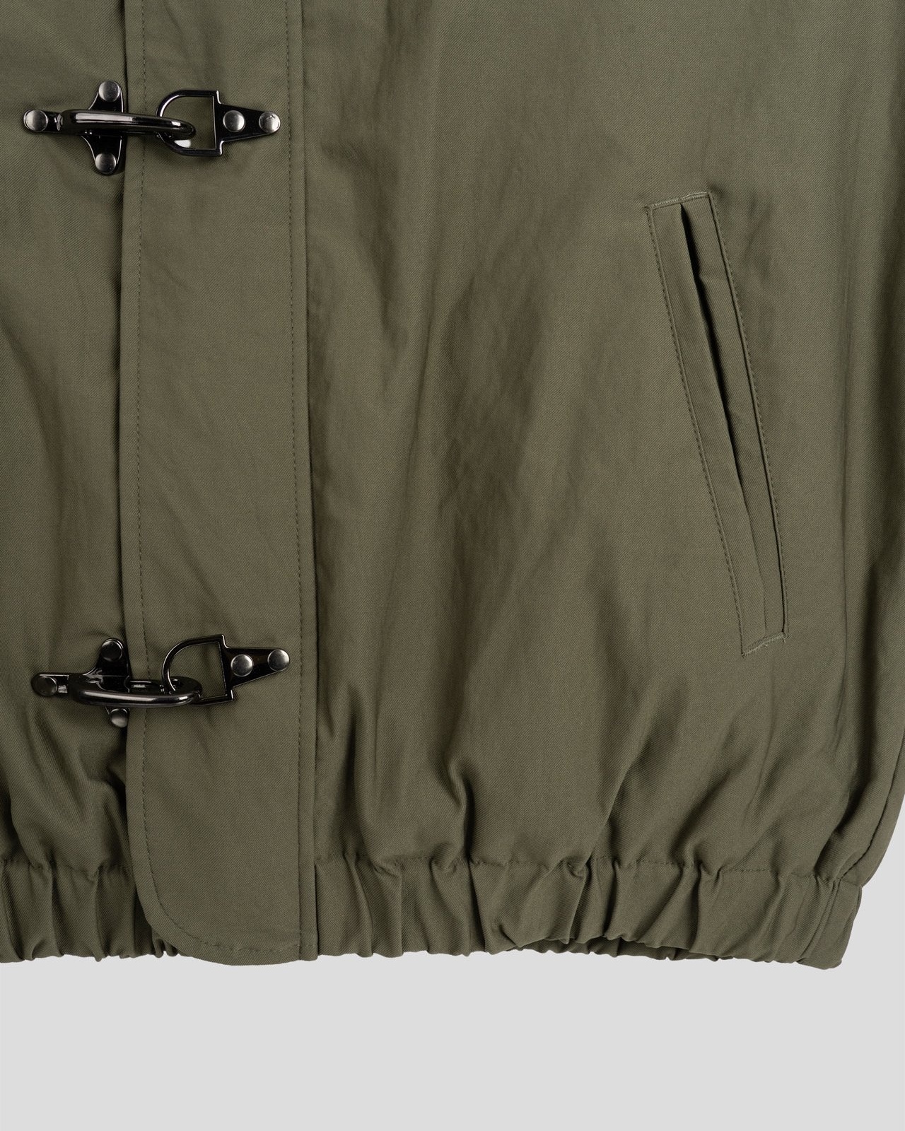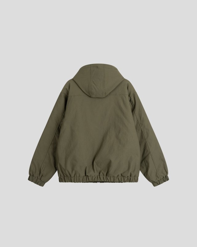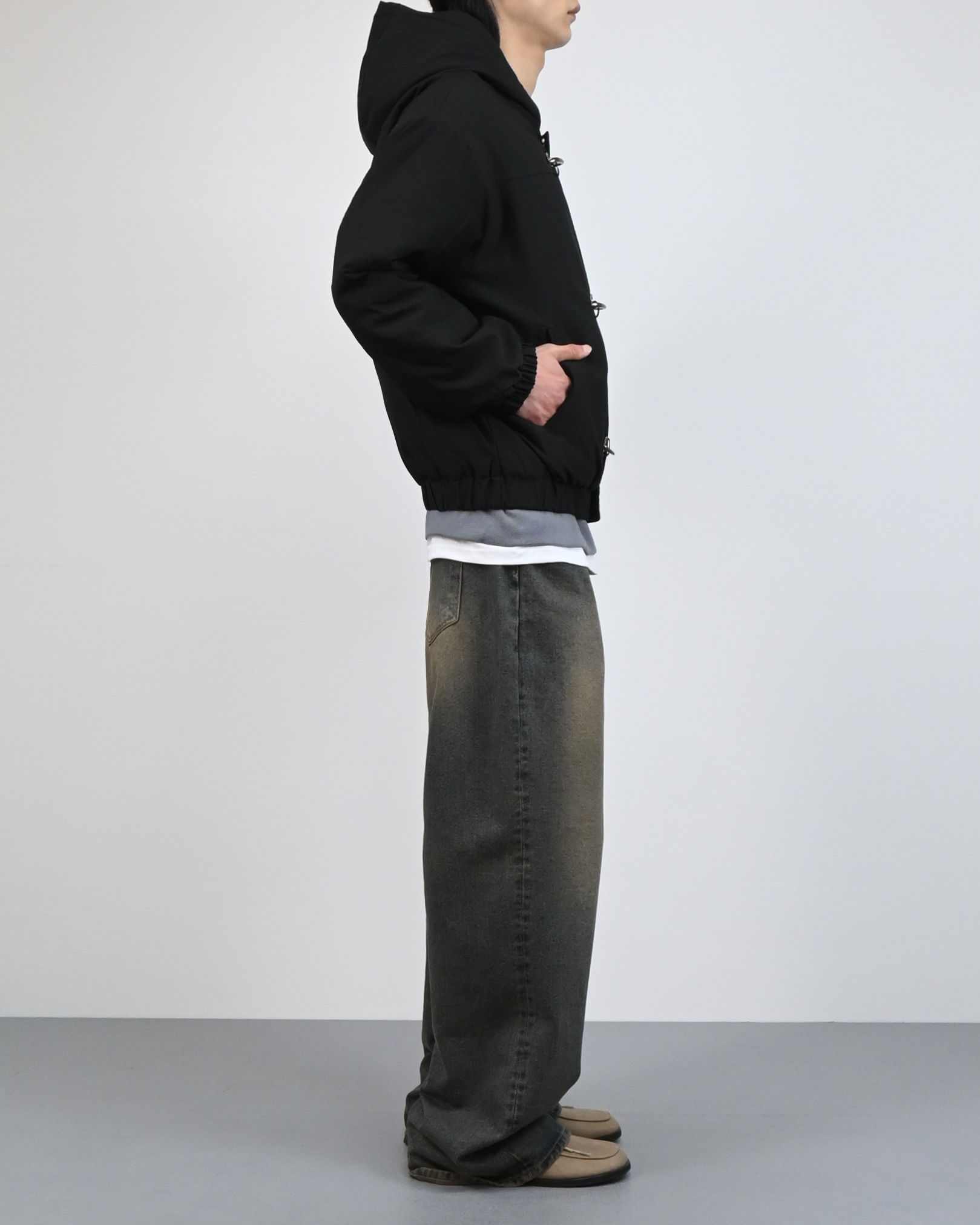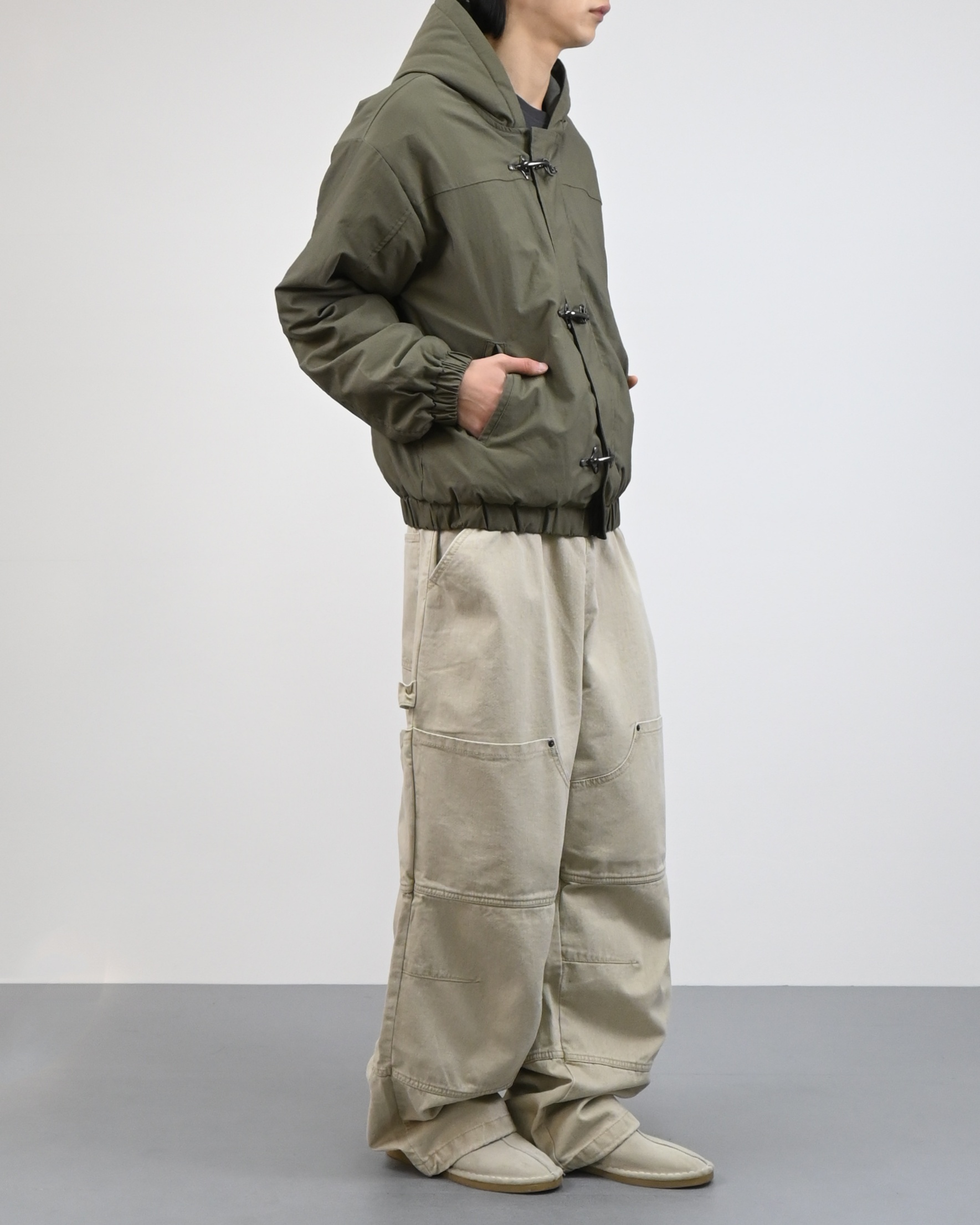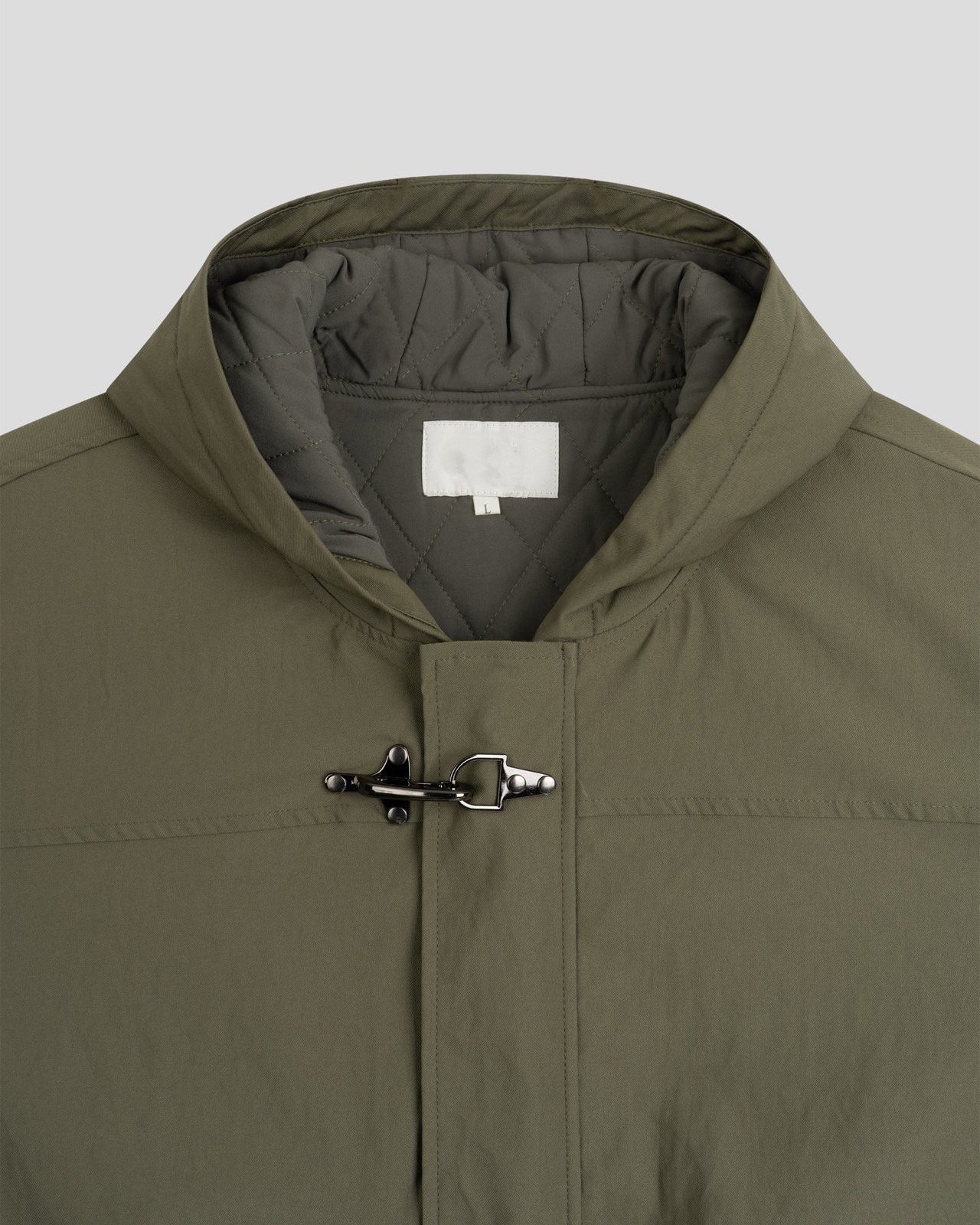 유니크한 후크가 돋보이는 점퍼입니다.