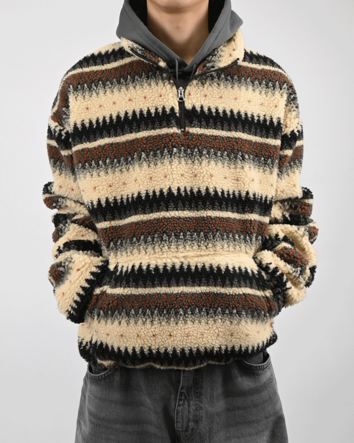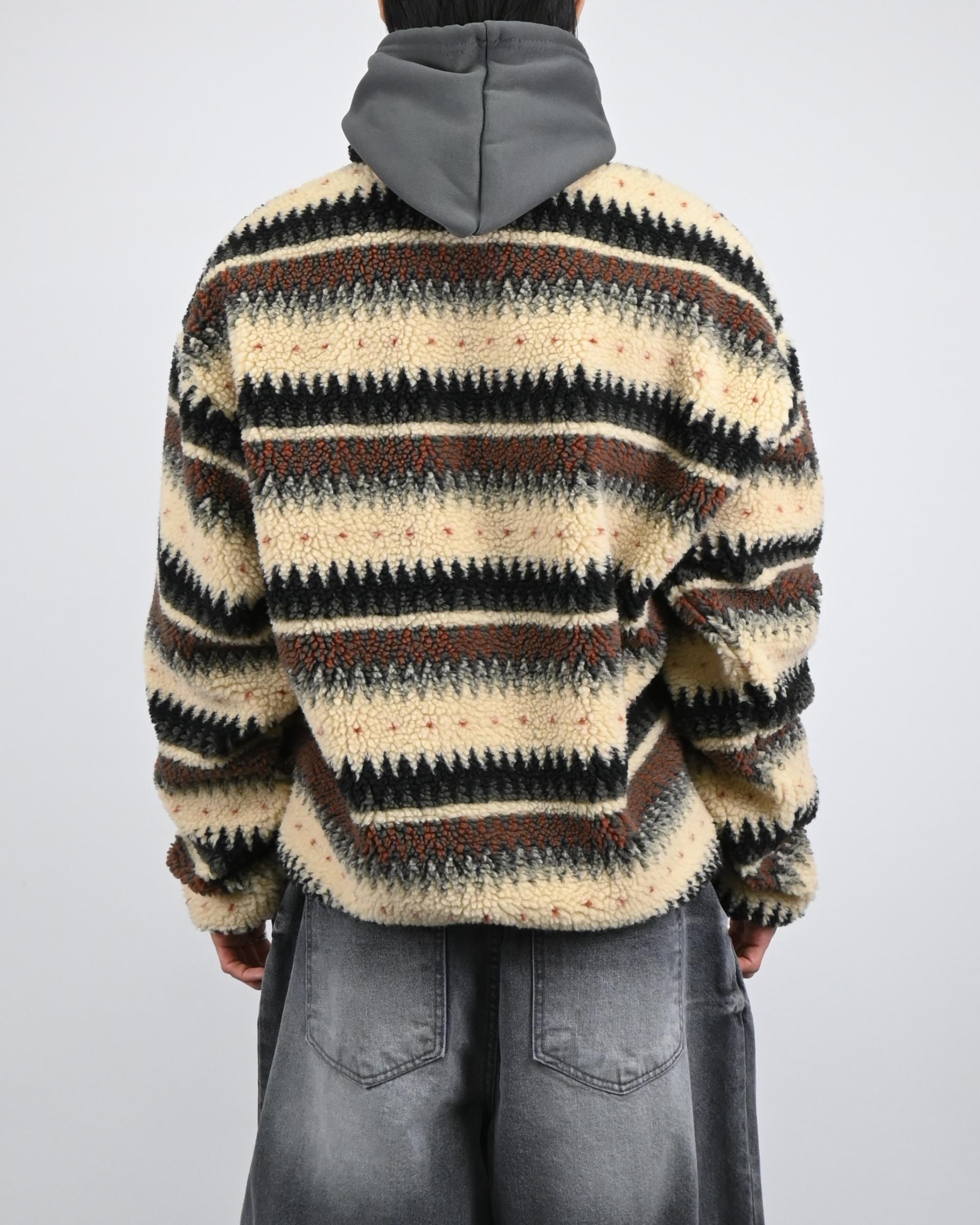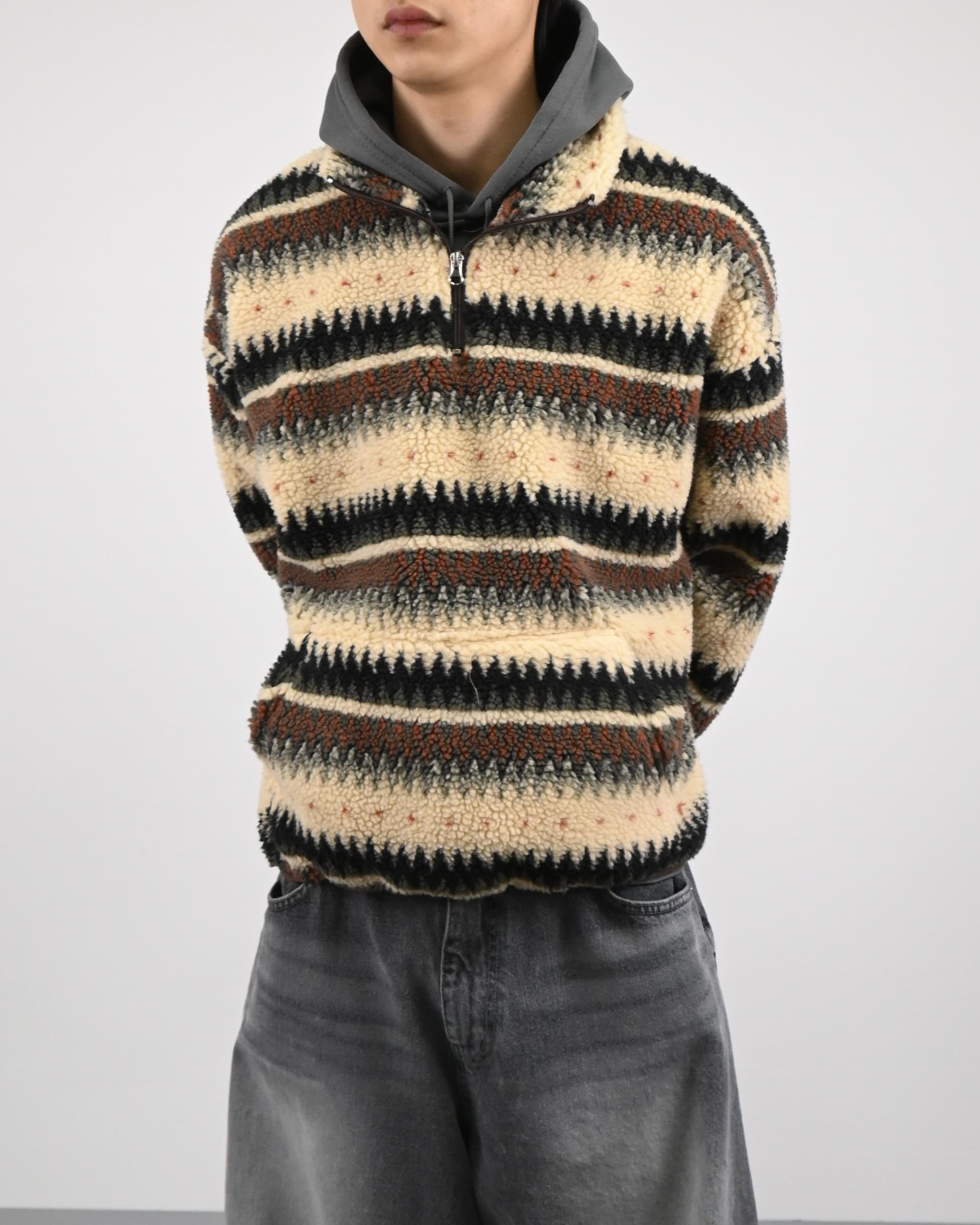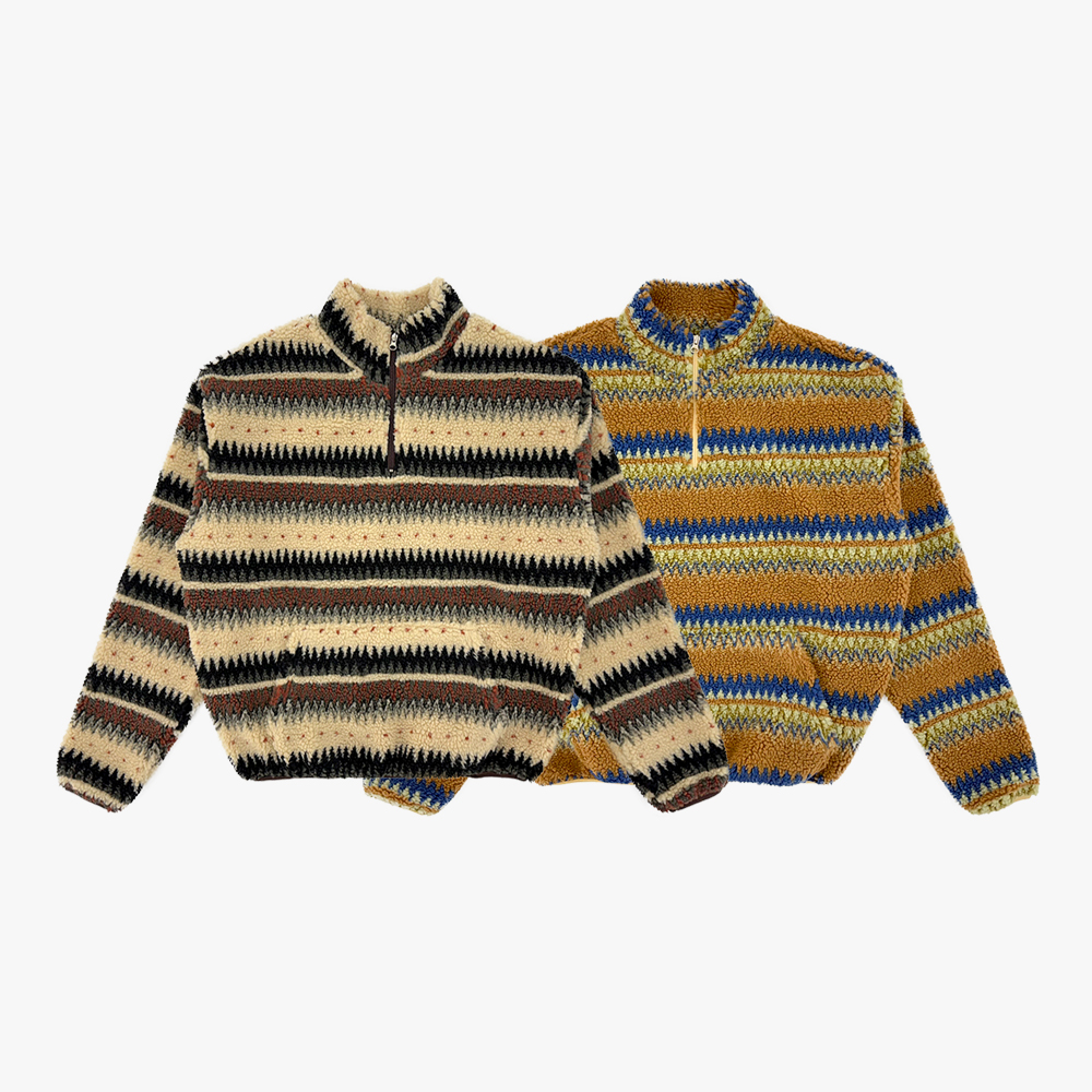 스트라이프 패턴을 더한 하프 집업 디자인으로