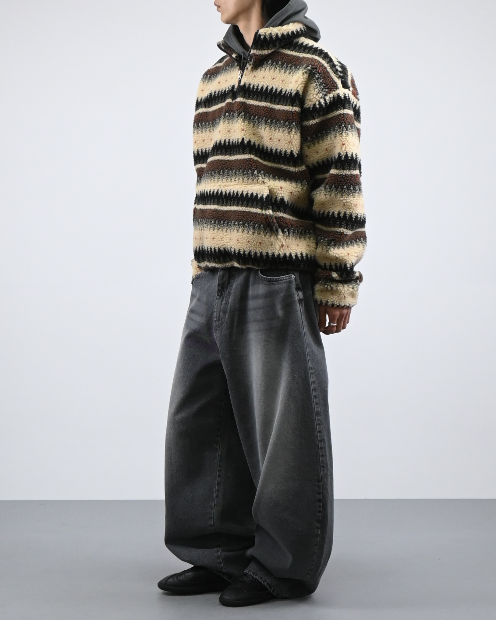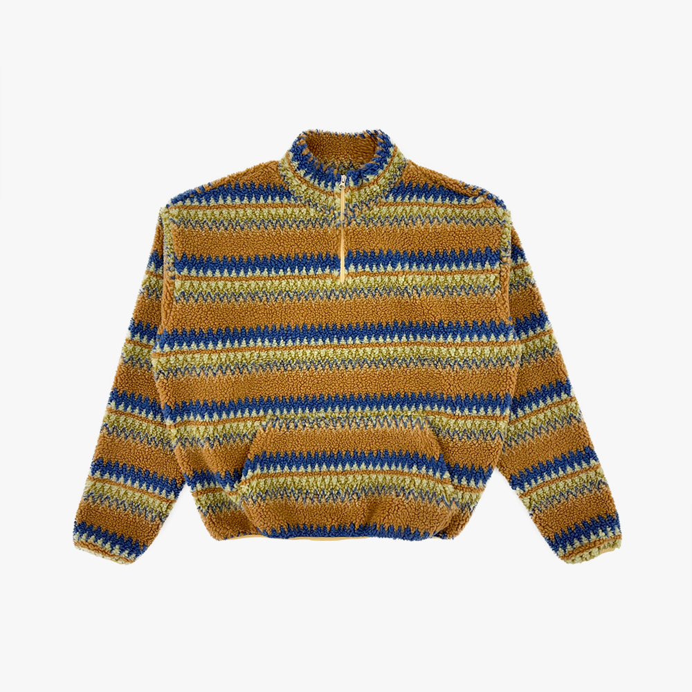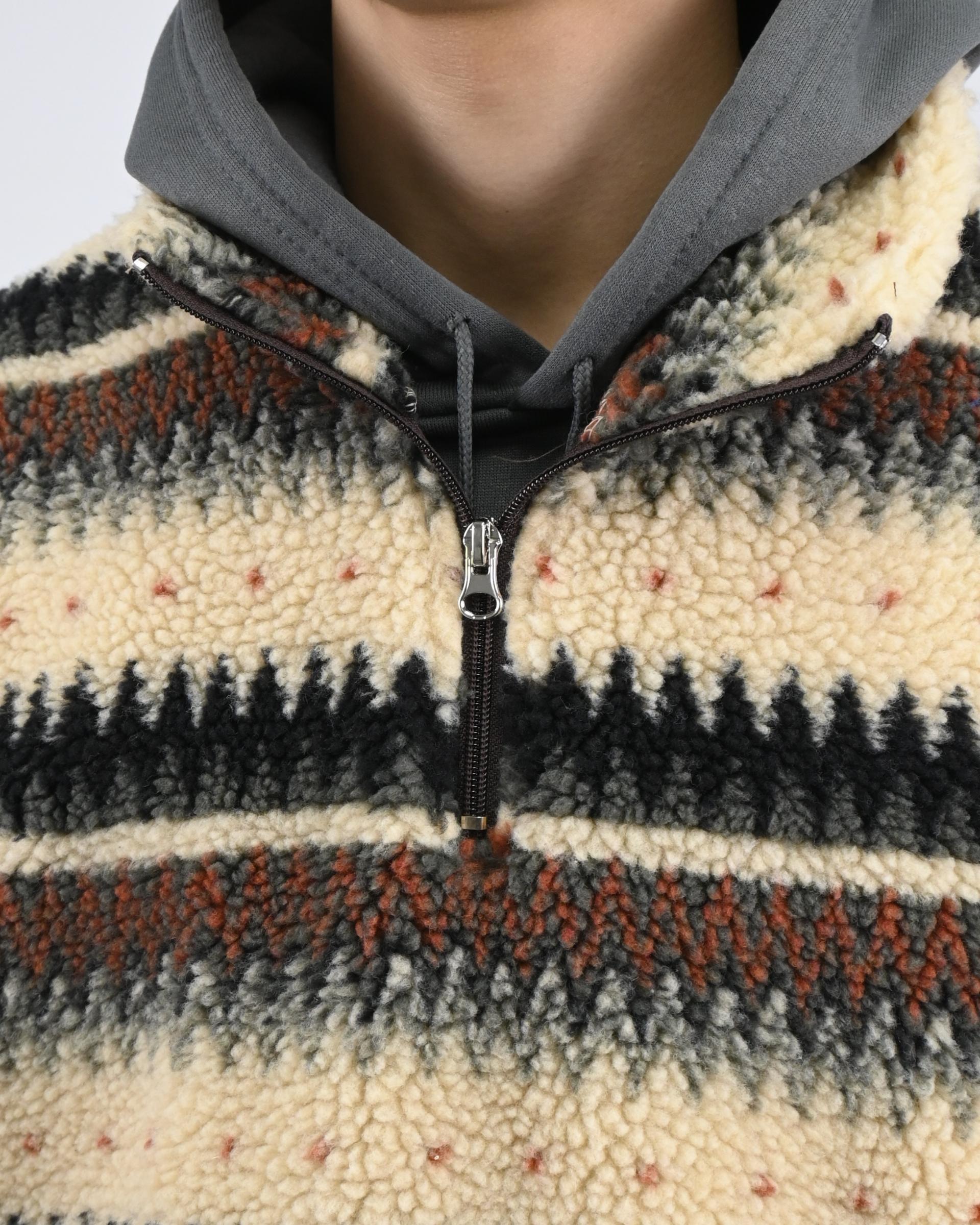 스트라이프 패턴을 더한 하프 집업 디자인으로