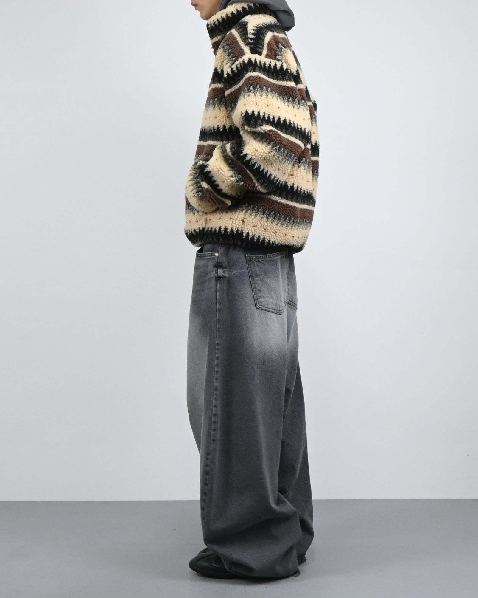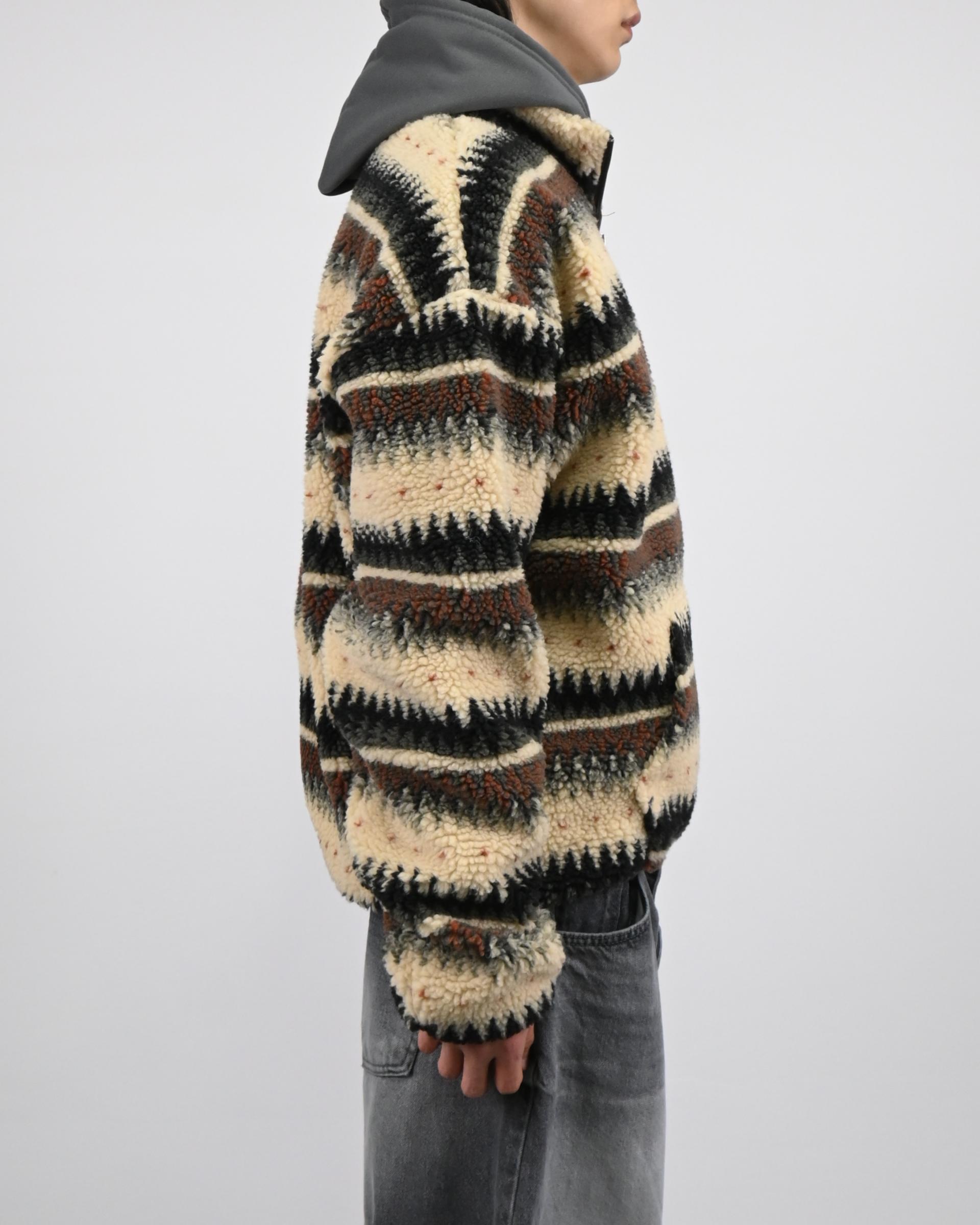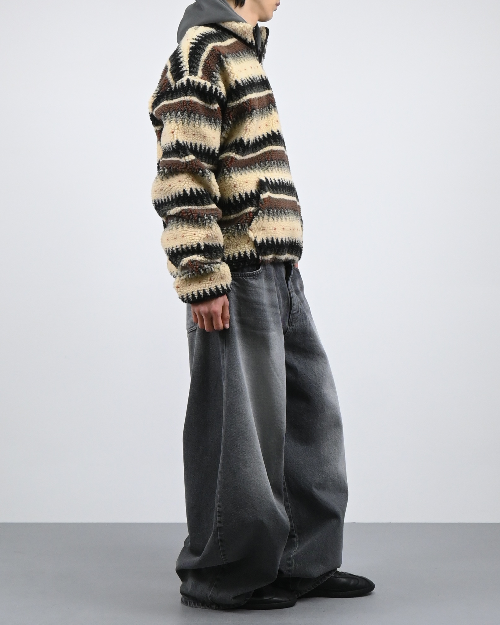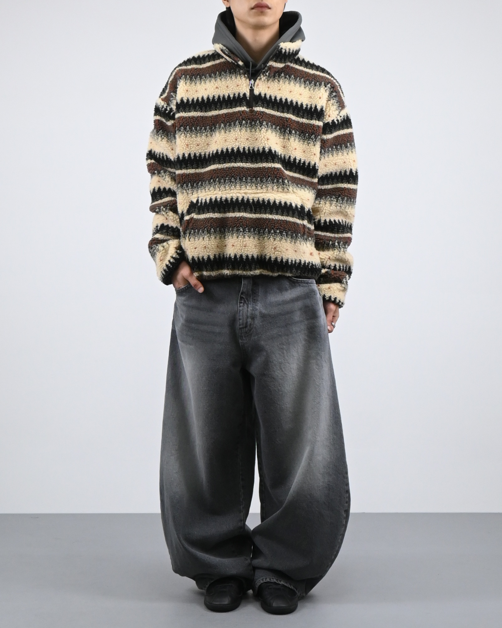 스트라이프 패턴을 더한 하프 집업 디자인으로