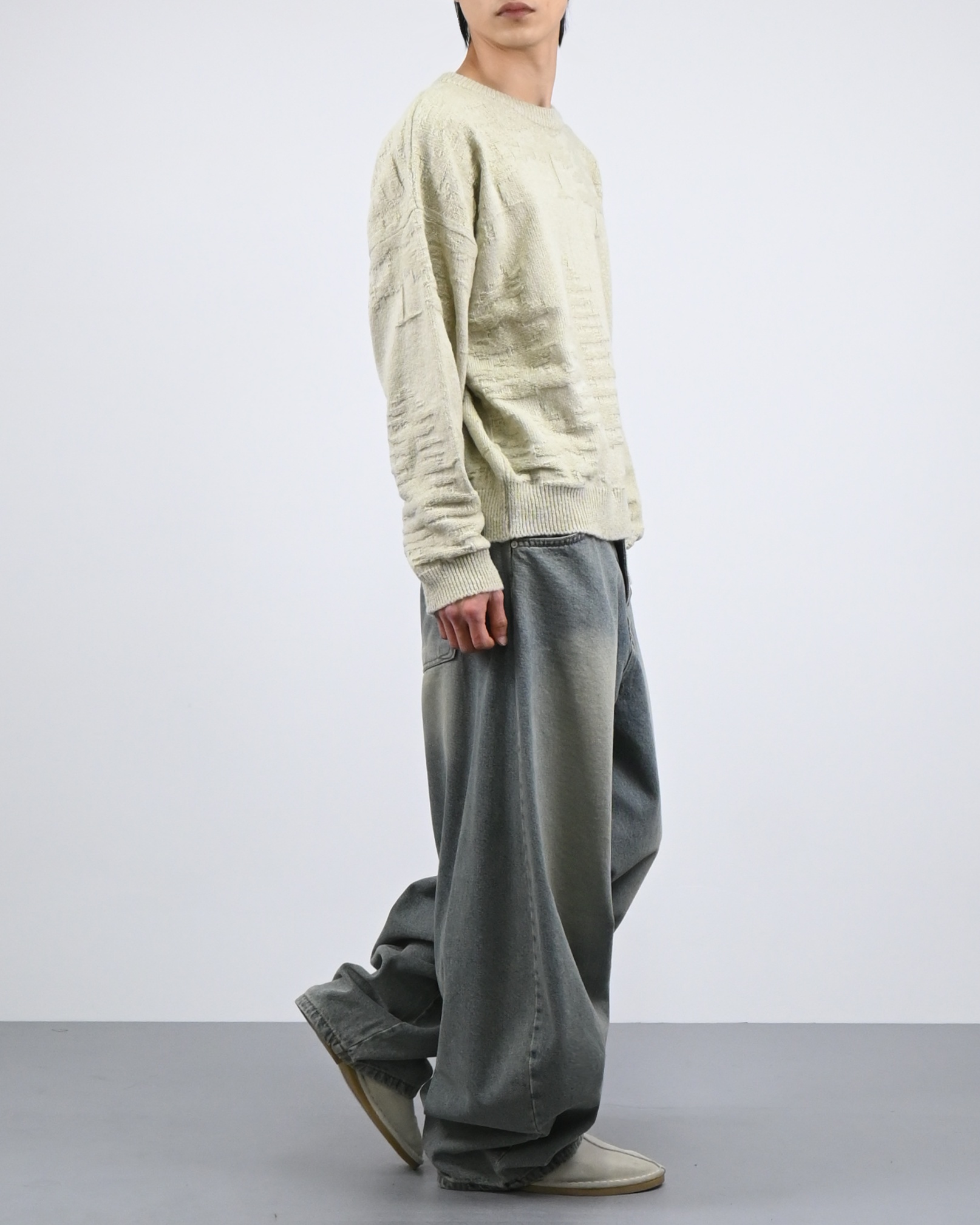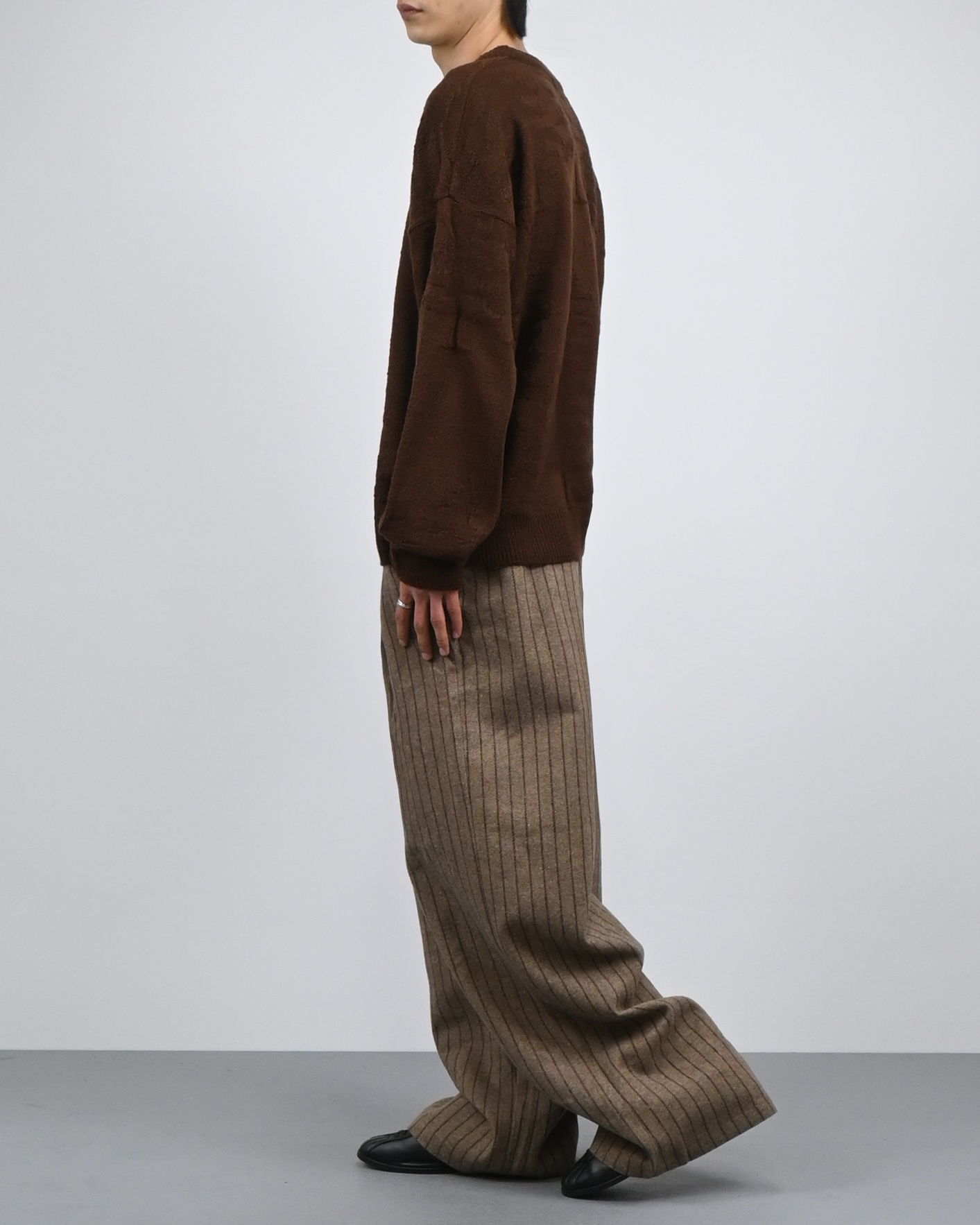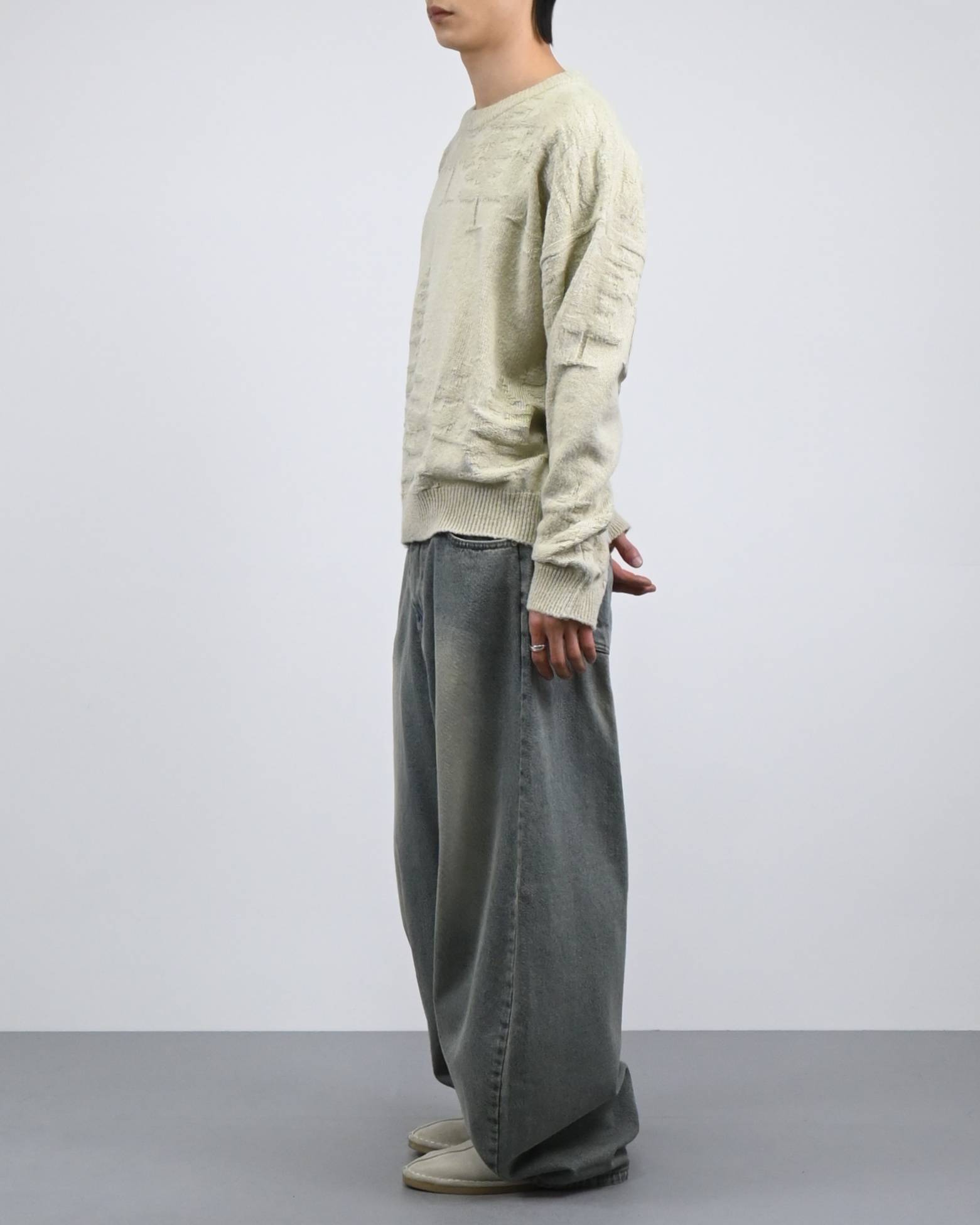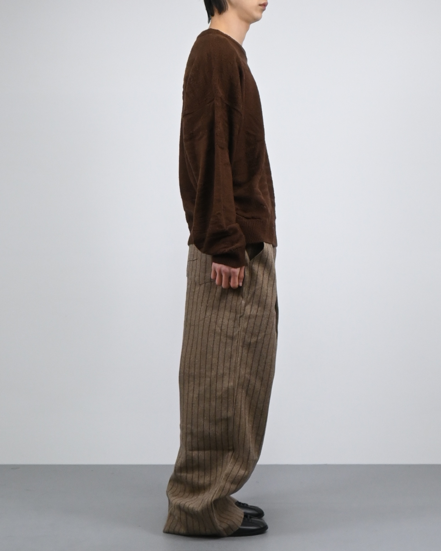 낮은 어깨선과 루즈한 핏감으로 여유로운 실루엣