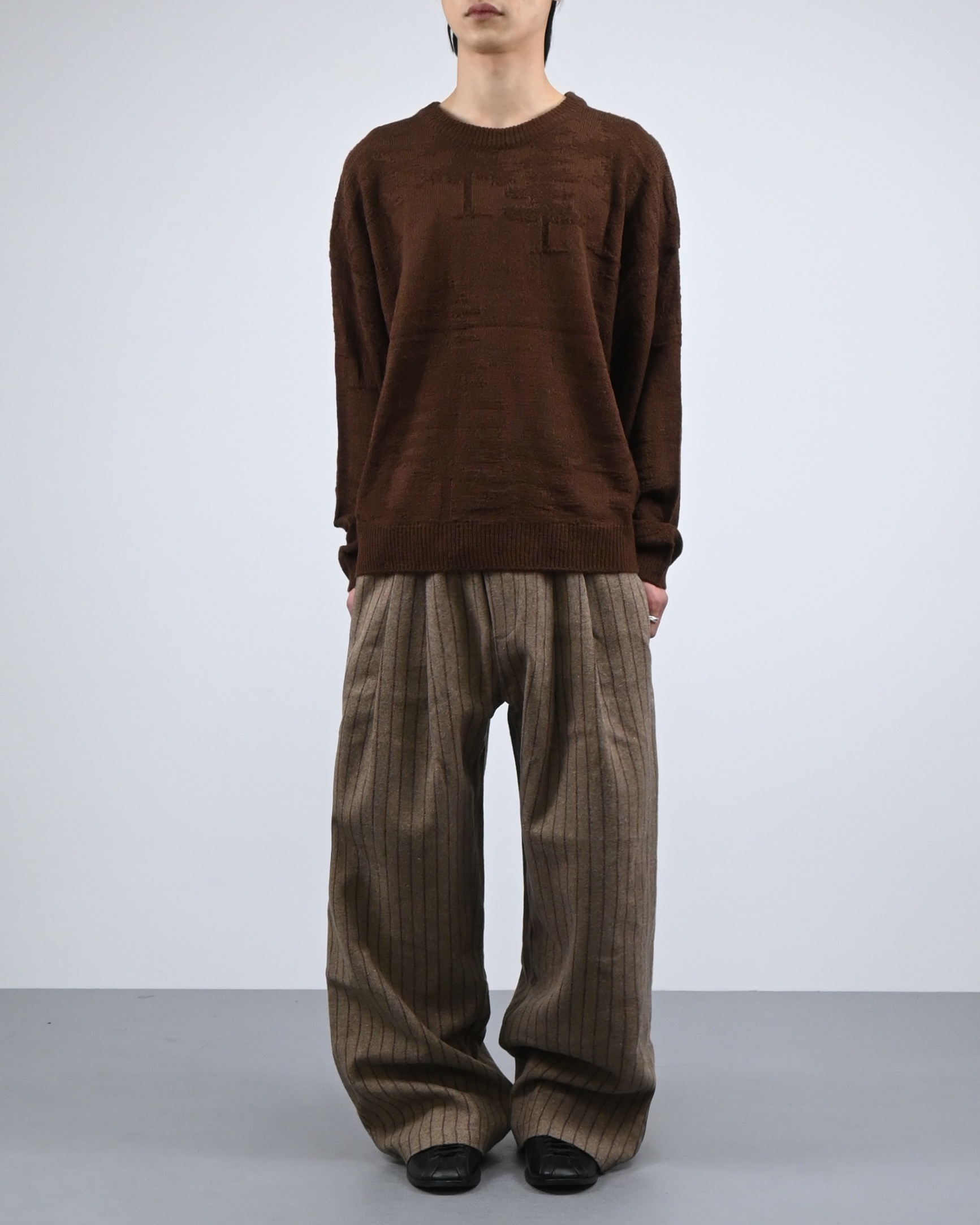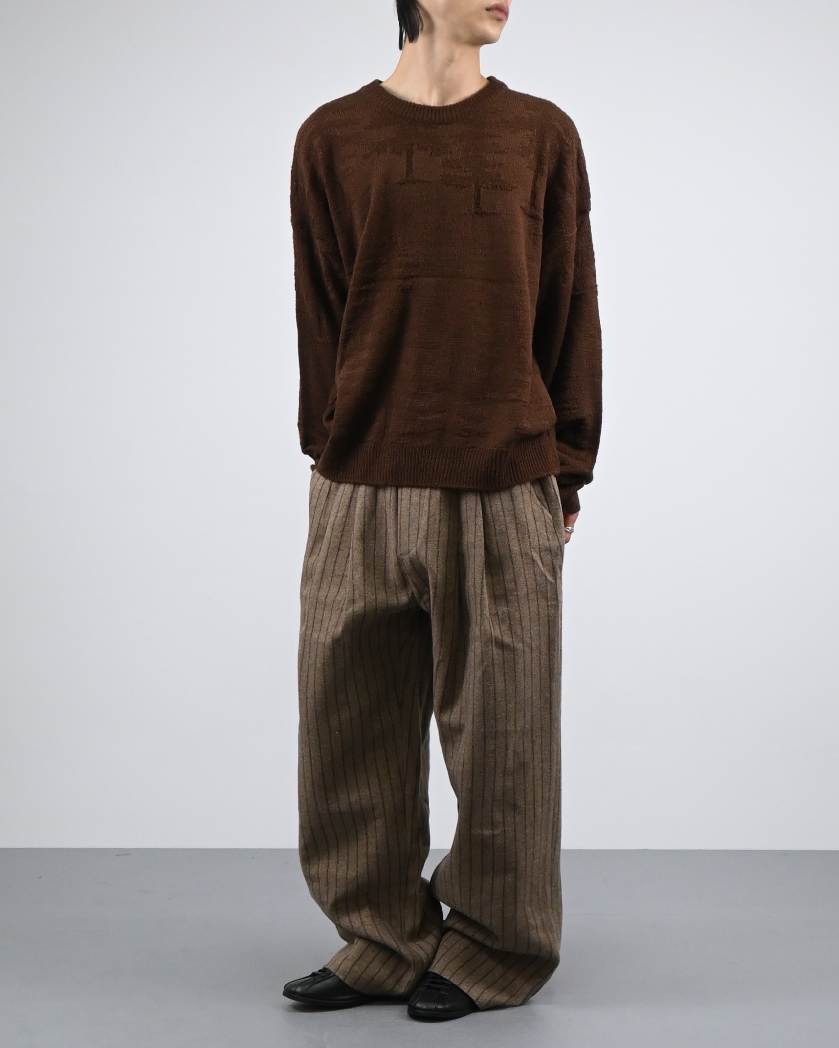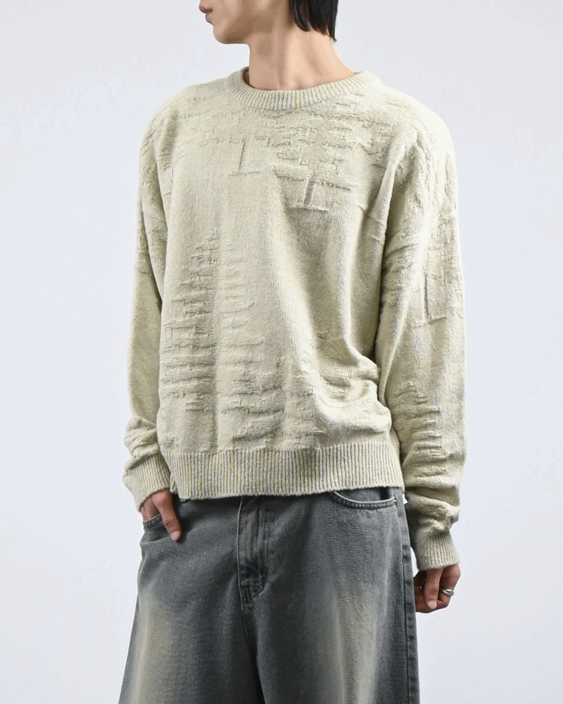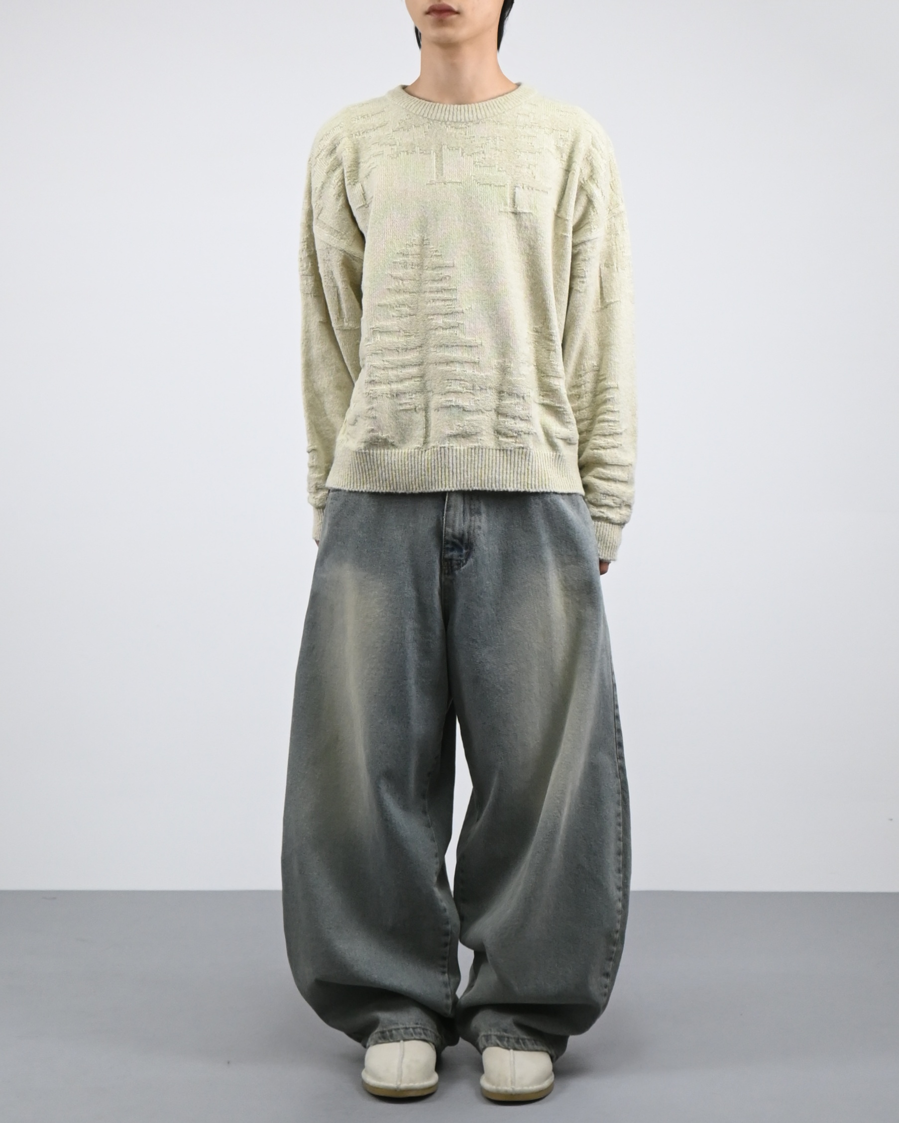 낮은 어깨선과 루즈한 핏감으로 여유로운 실루엣