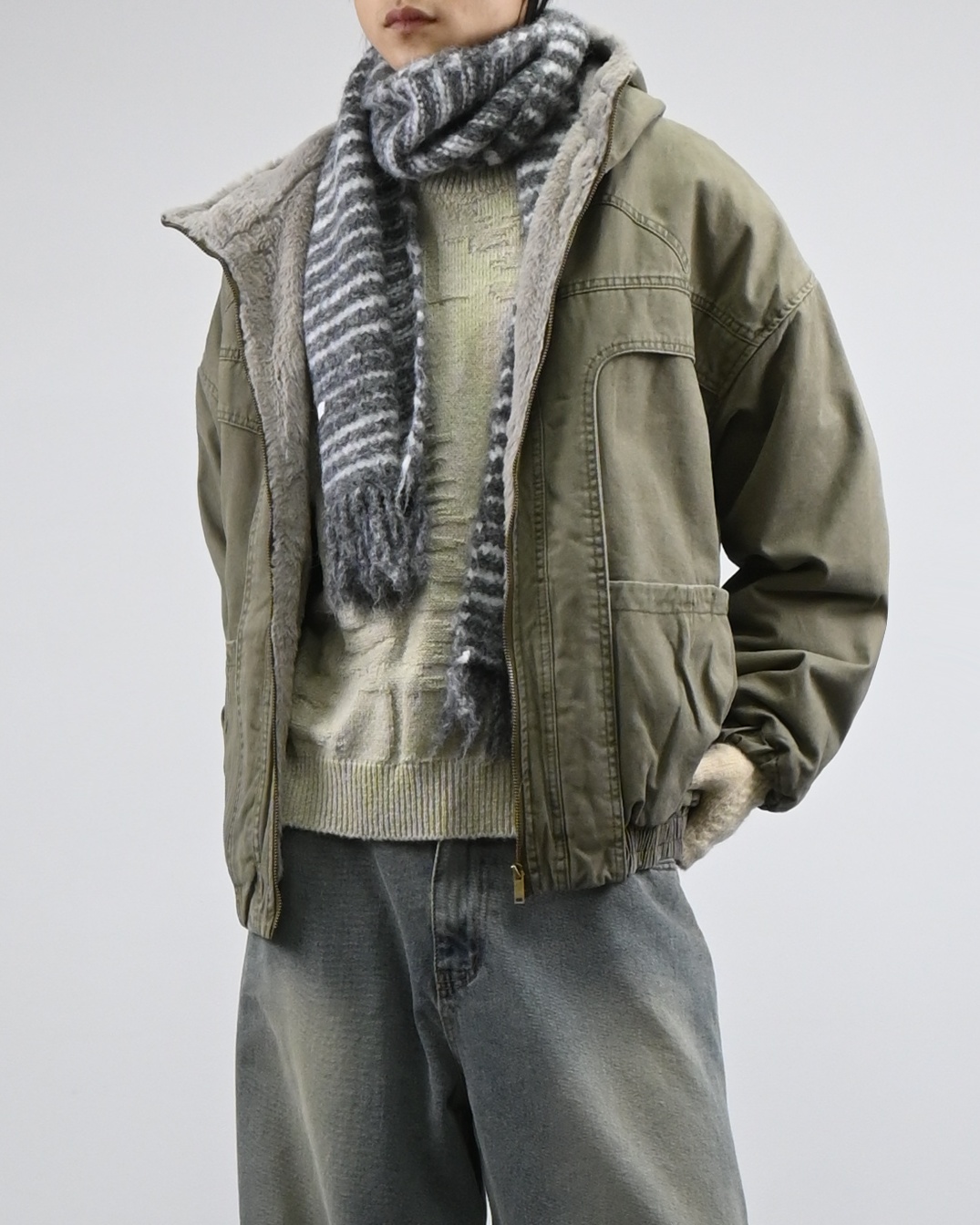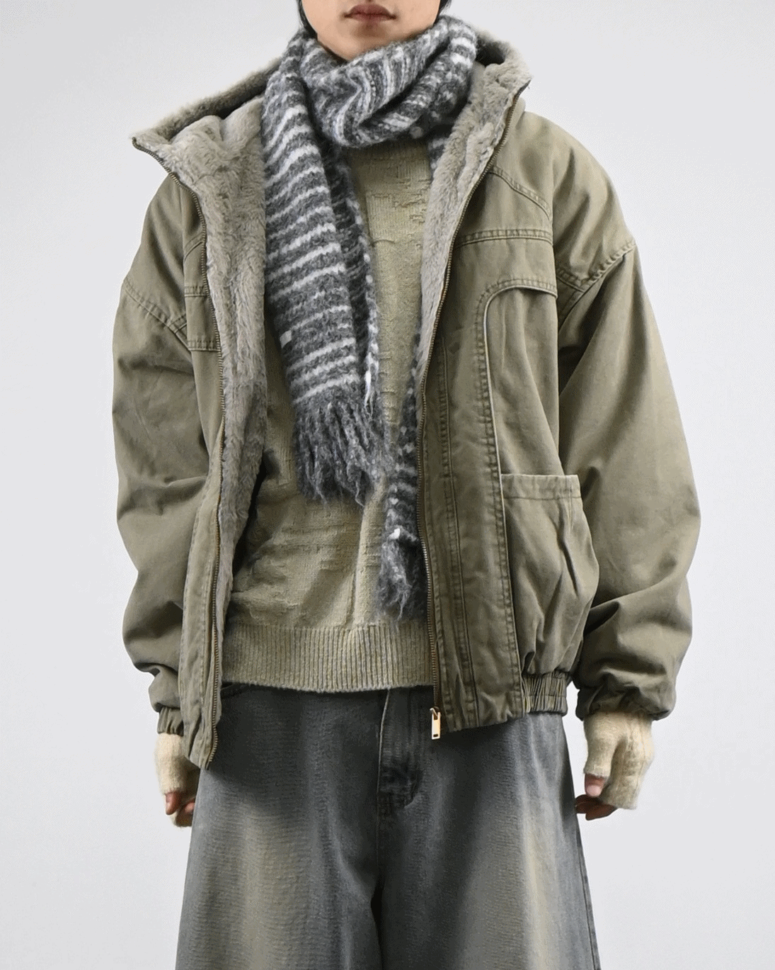 보온성과 무드를 동시에 잡은 퍼 워크 점퍼