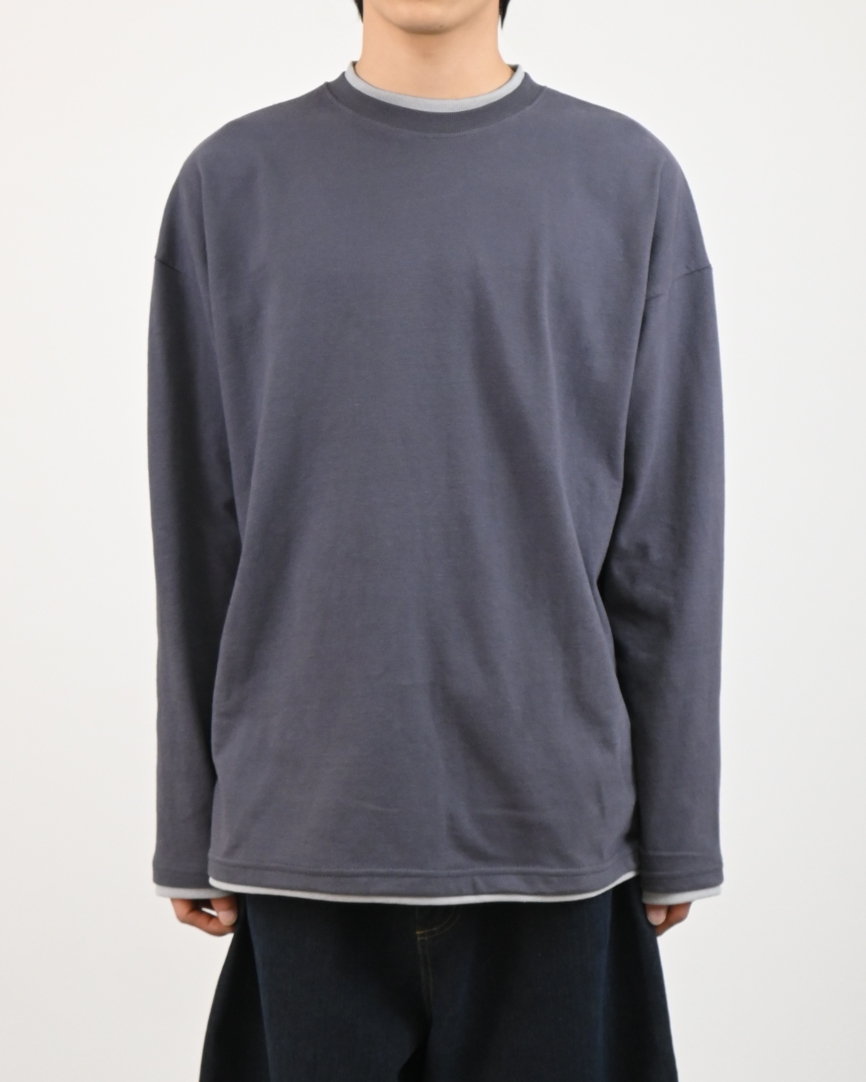 넥과 밑단 레이어드 디테일로