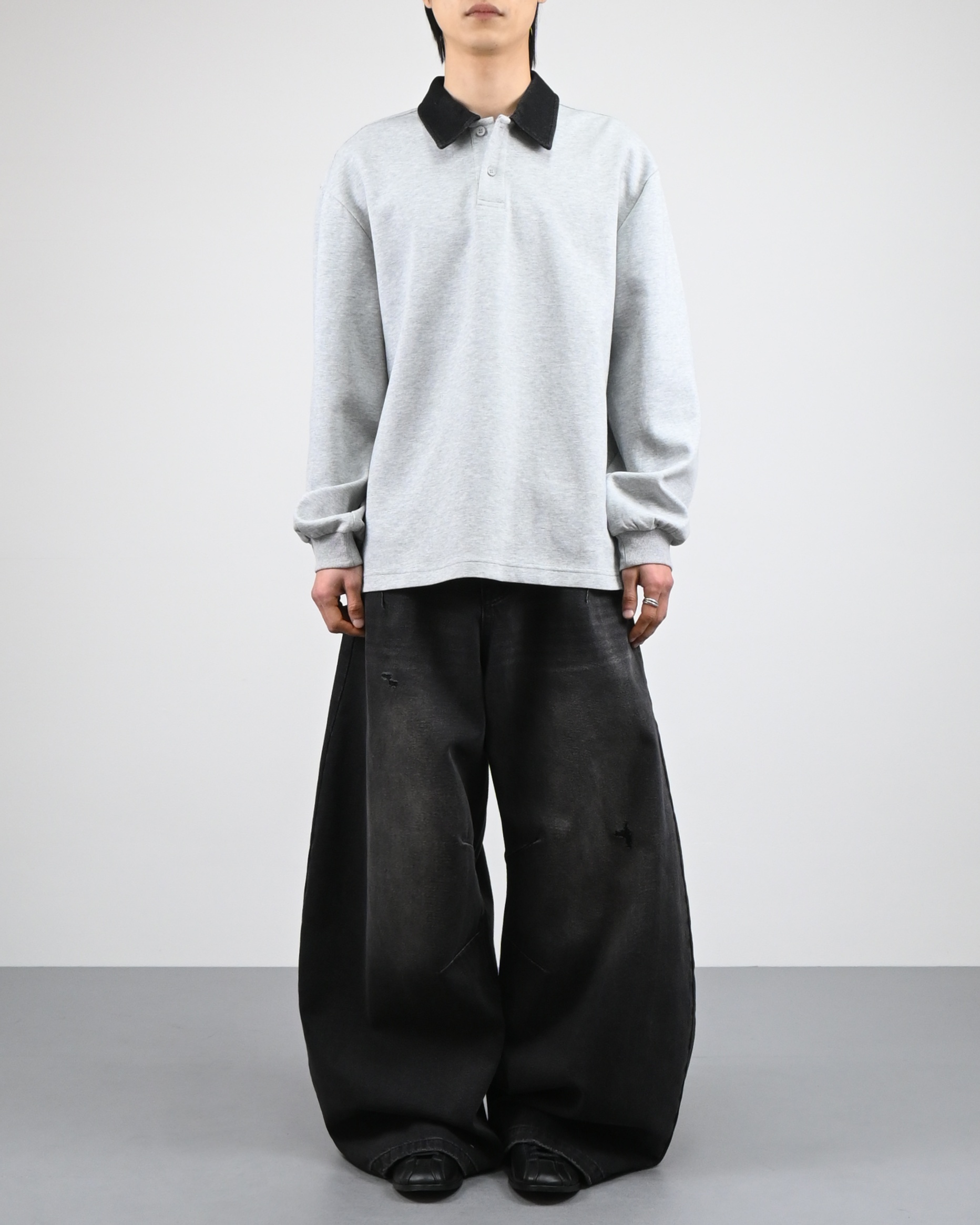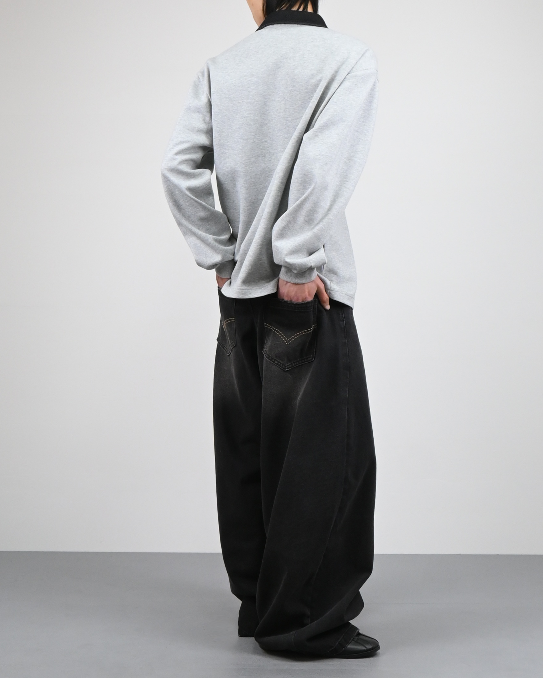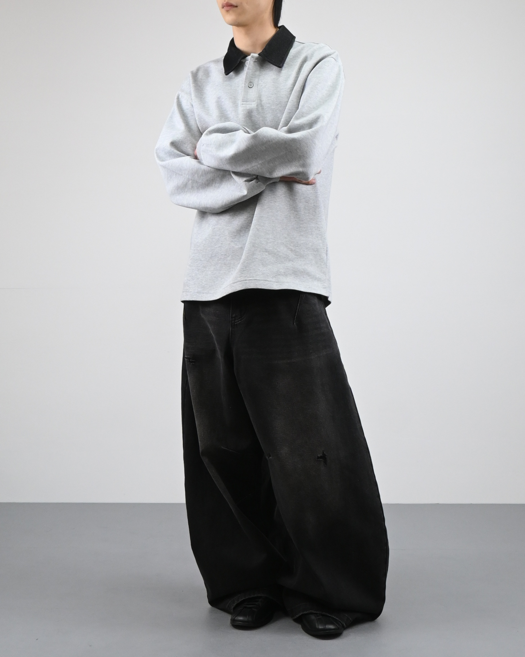 밑으로 흐르며 주름지는 핏이 멋스러운 제품입니다.