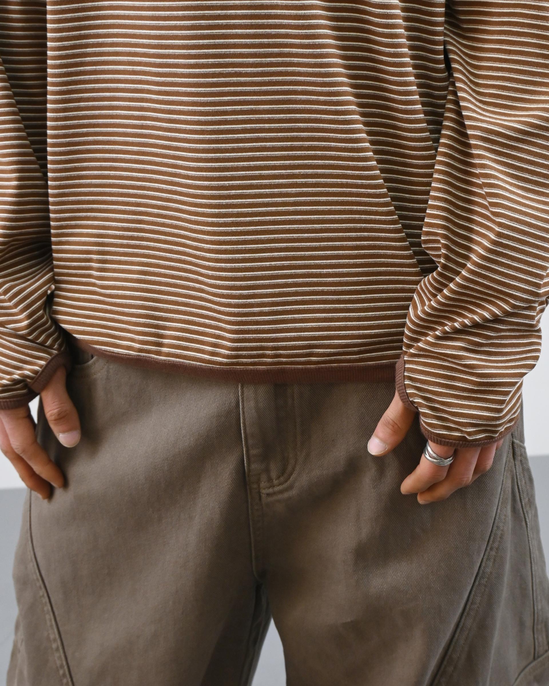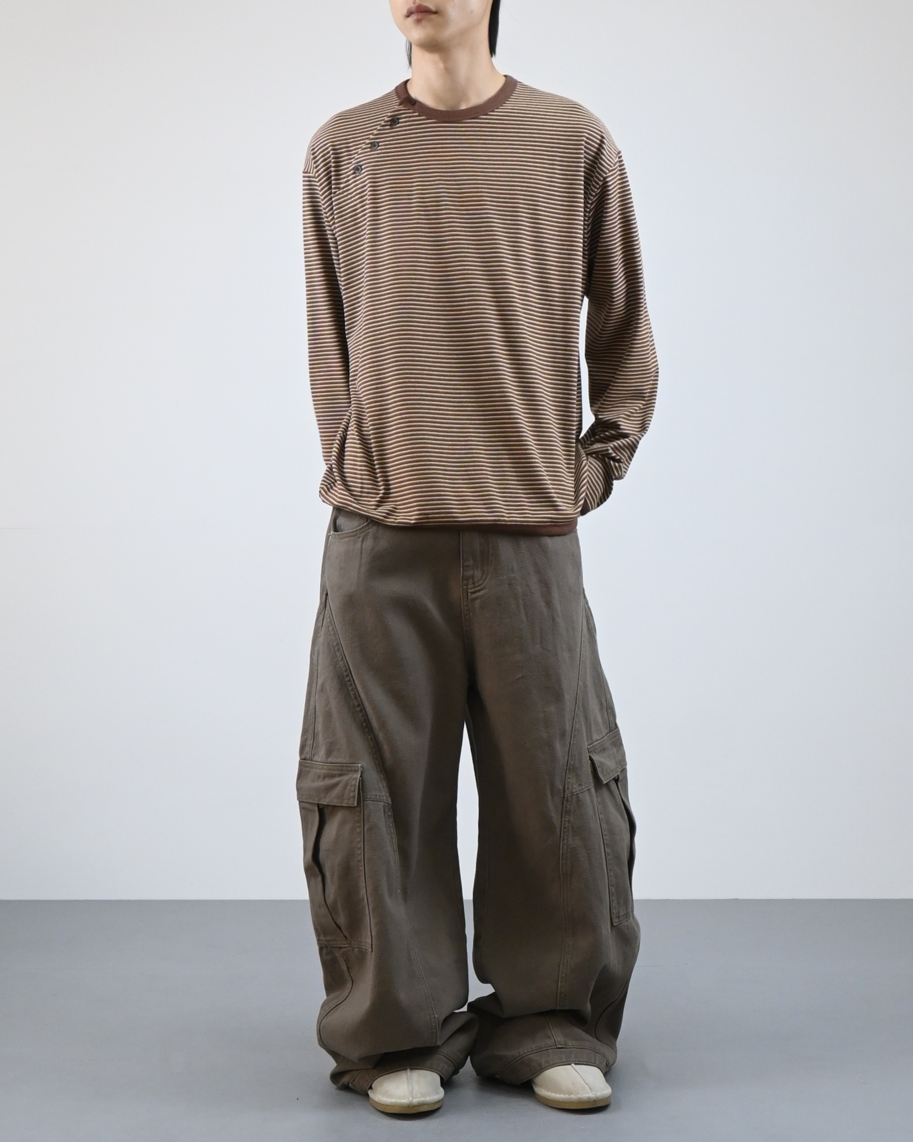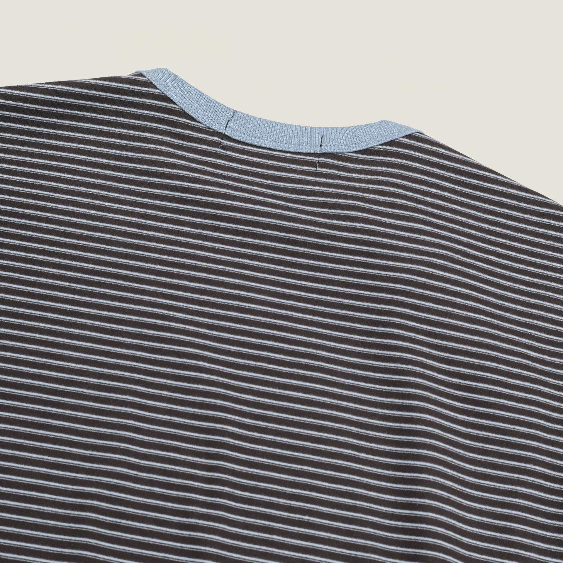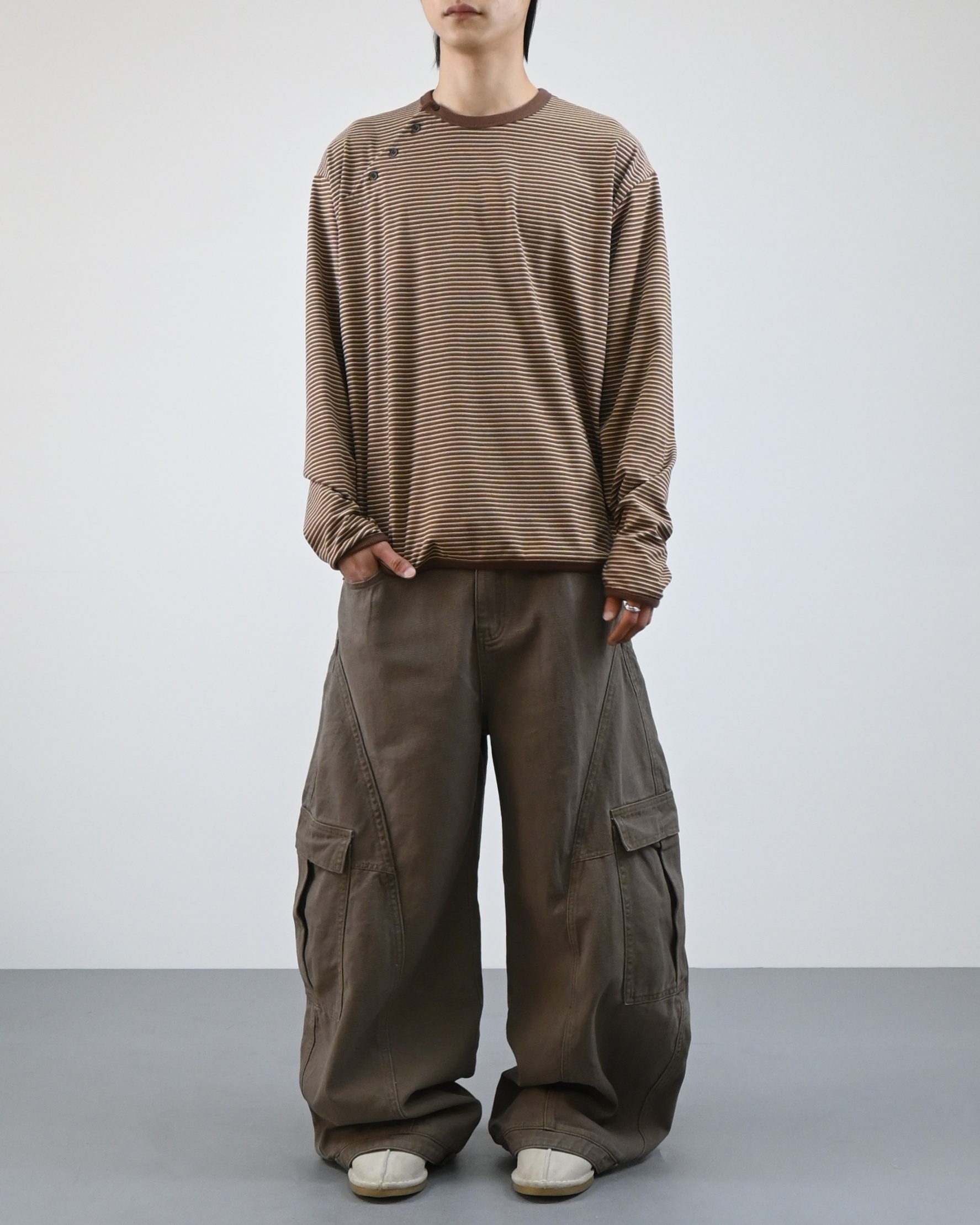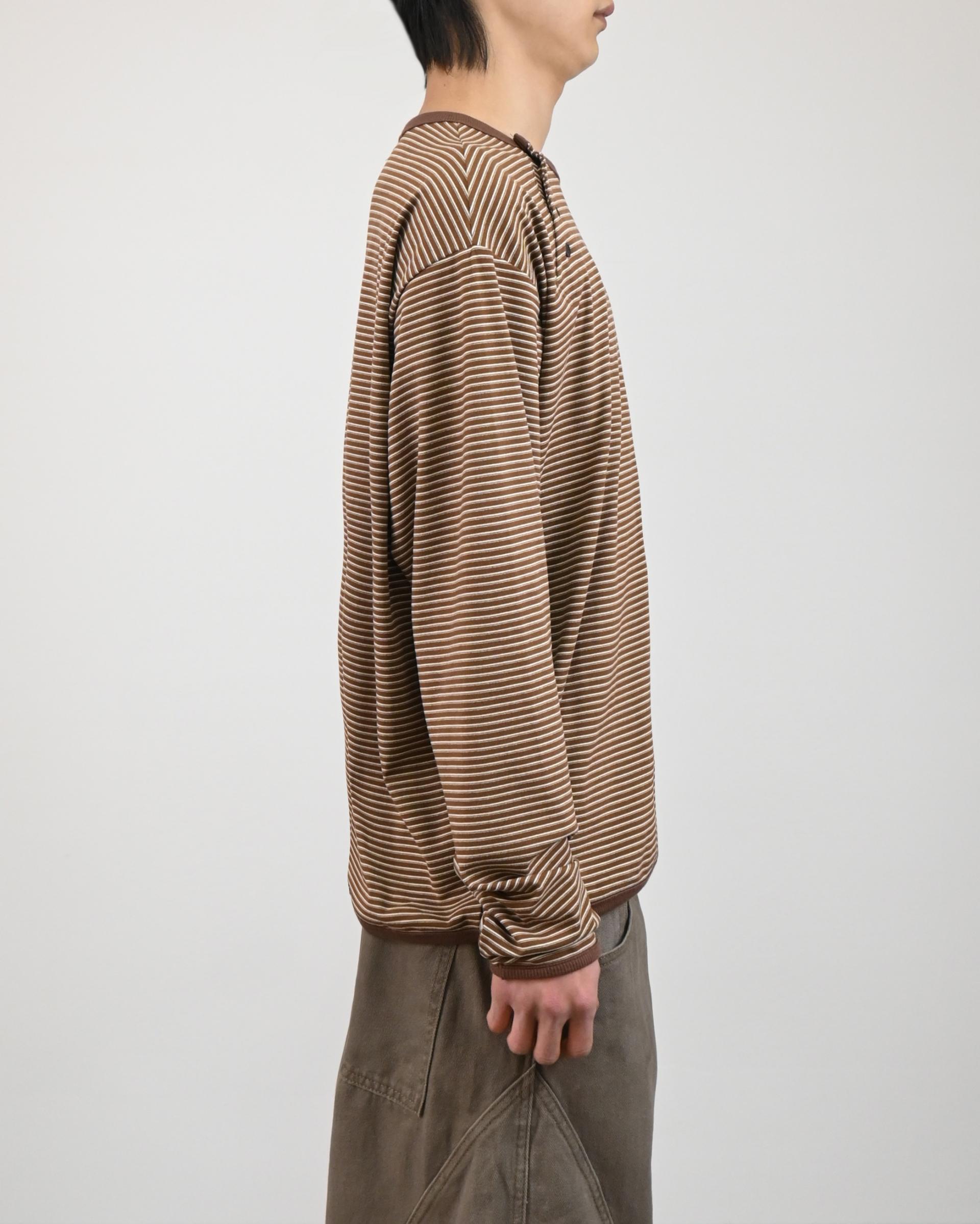 스트라이프 패턴에 스냅 디테일로 포인트를