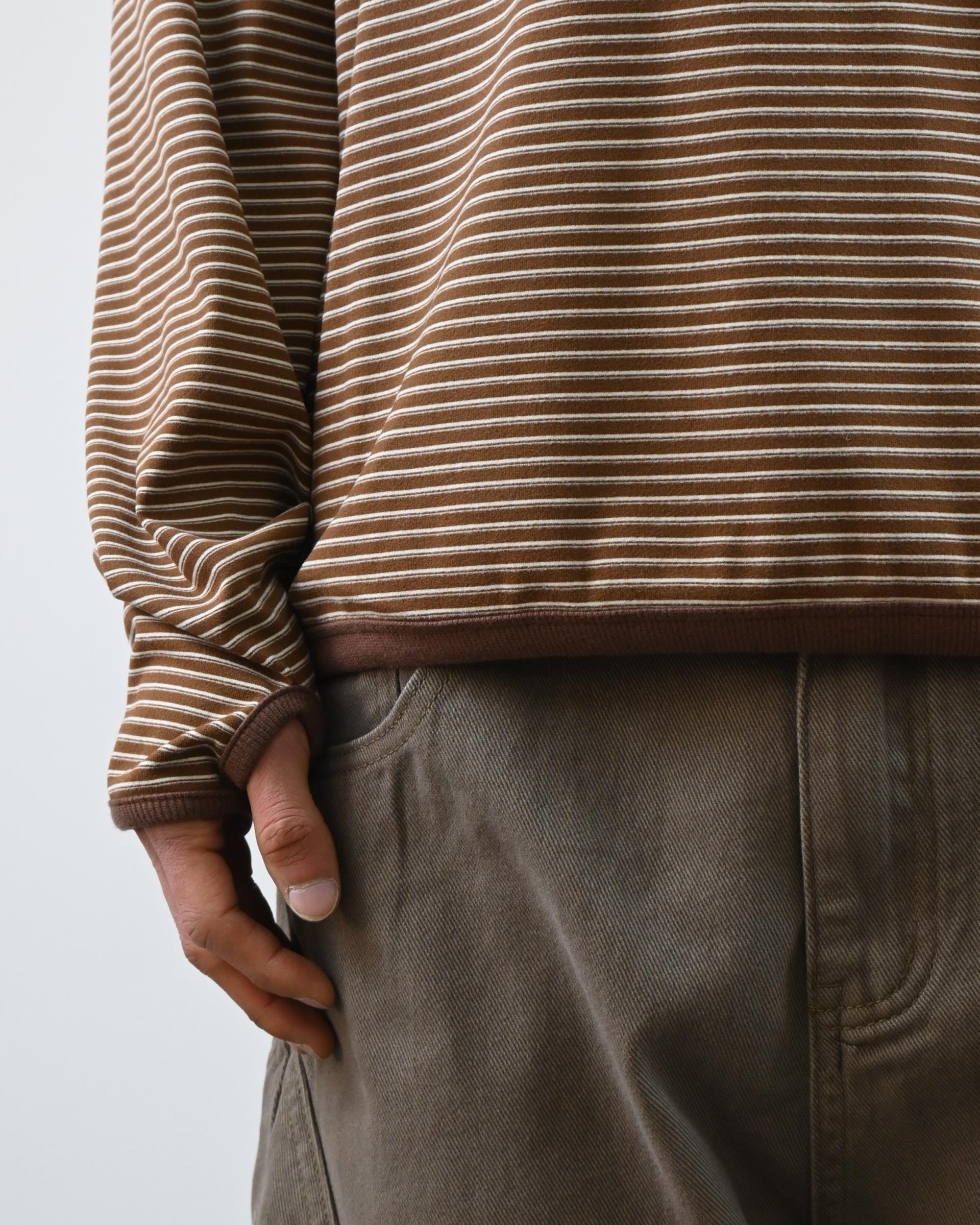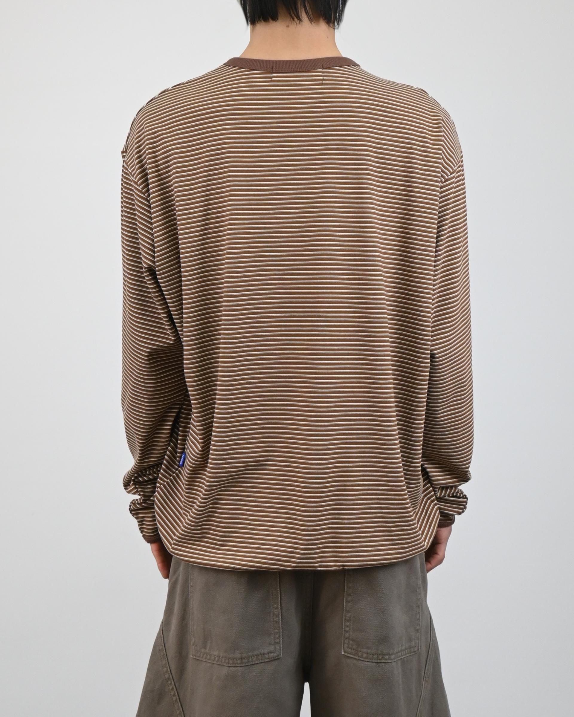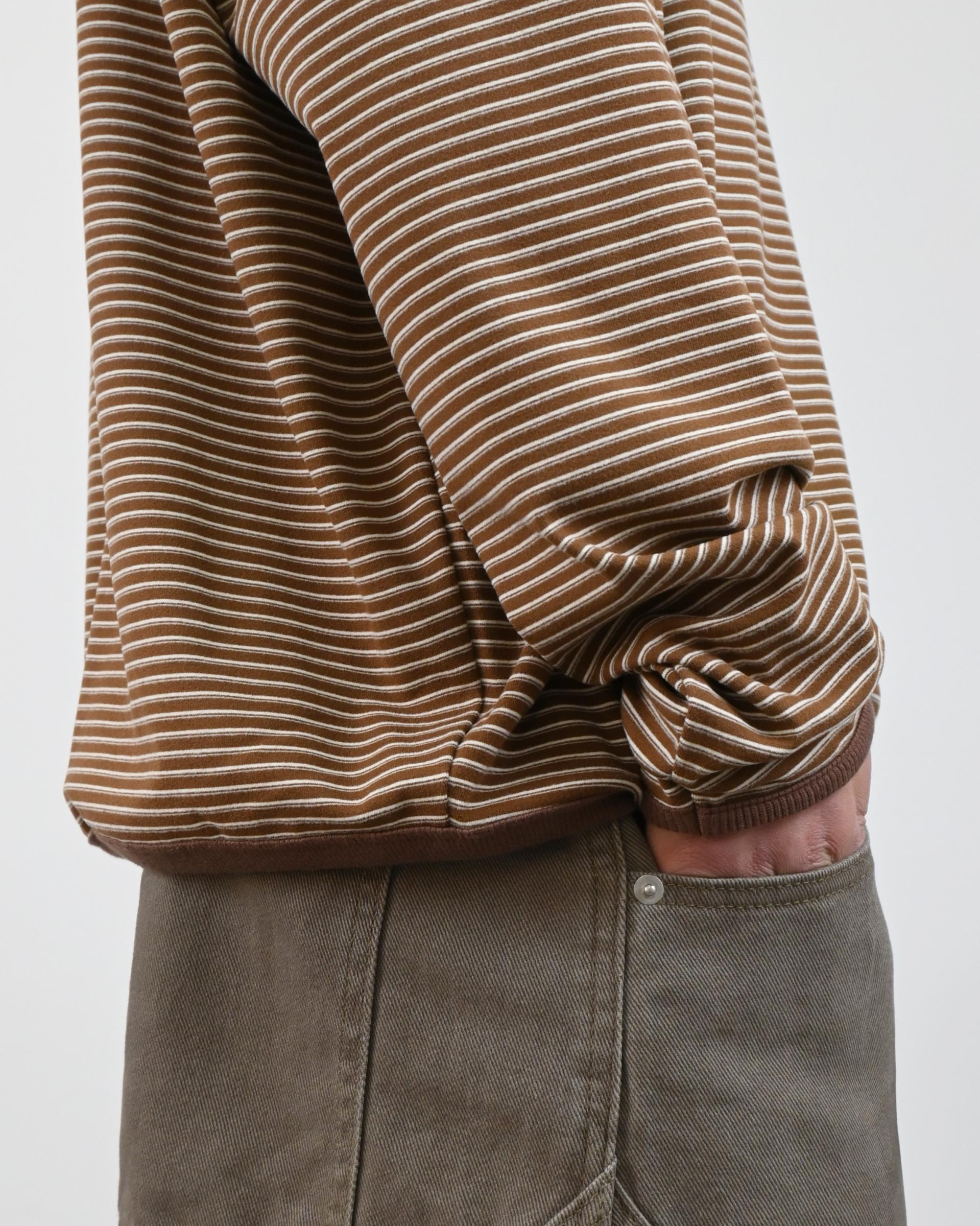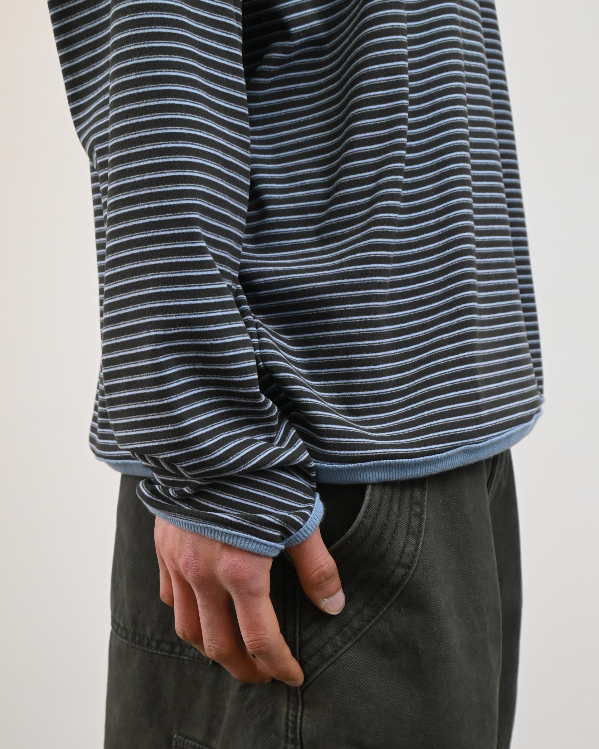 스트라이프 패턴에 스냅 디테일로 포인트를