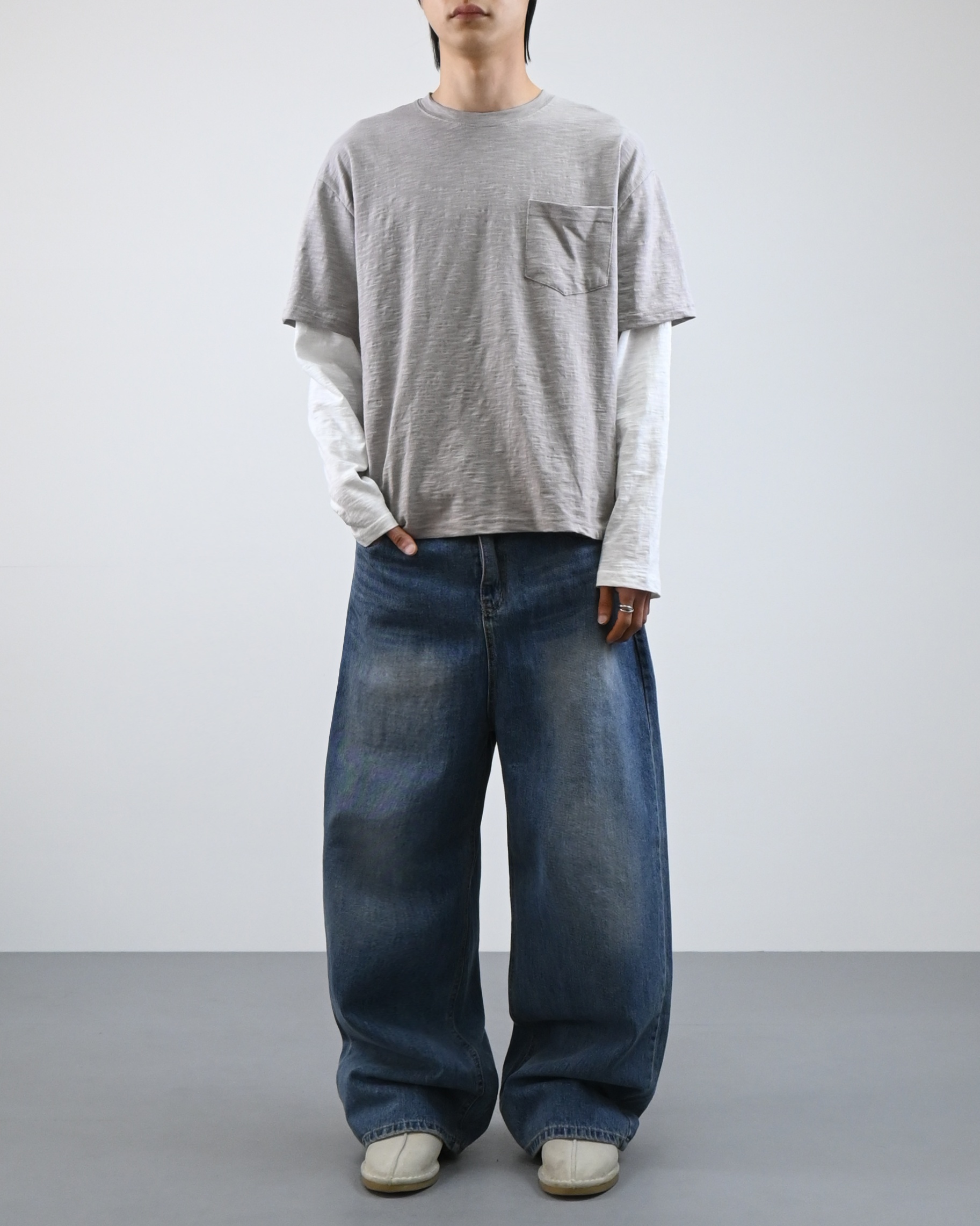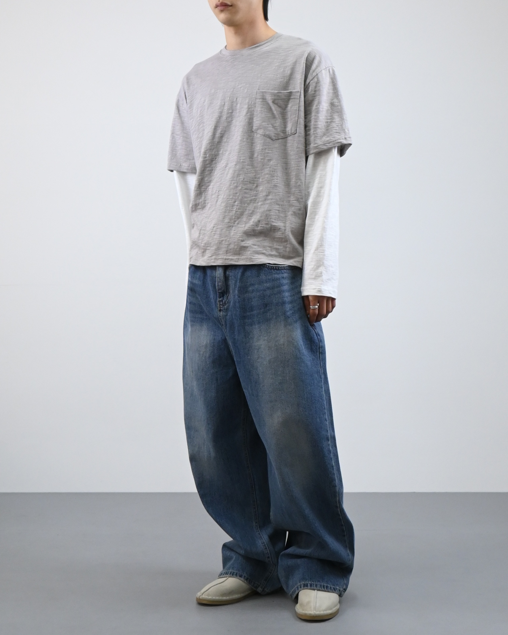 여유 있는 세미 오버핏 실루엣에