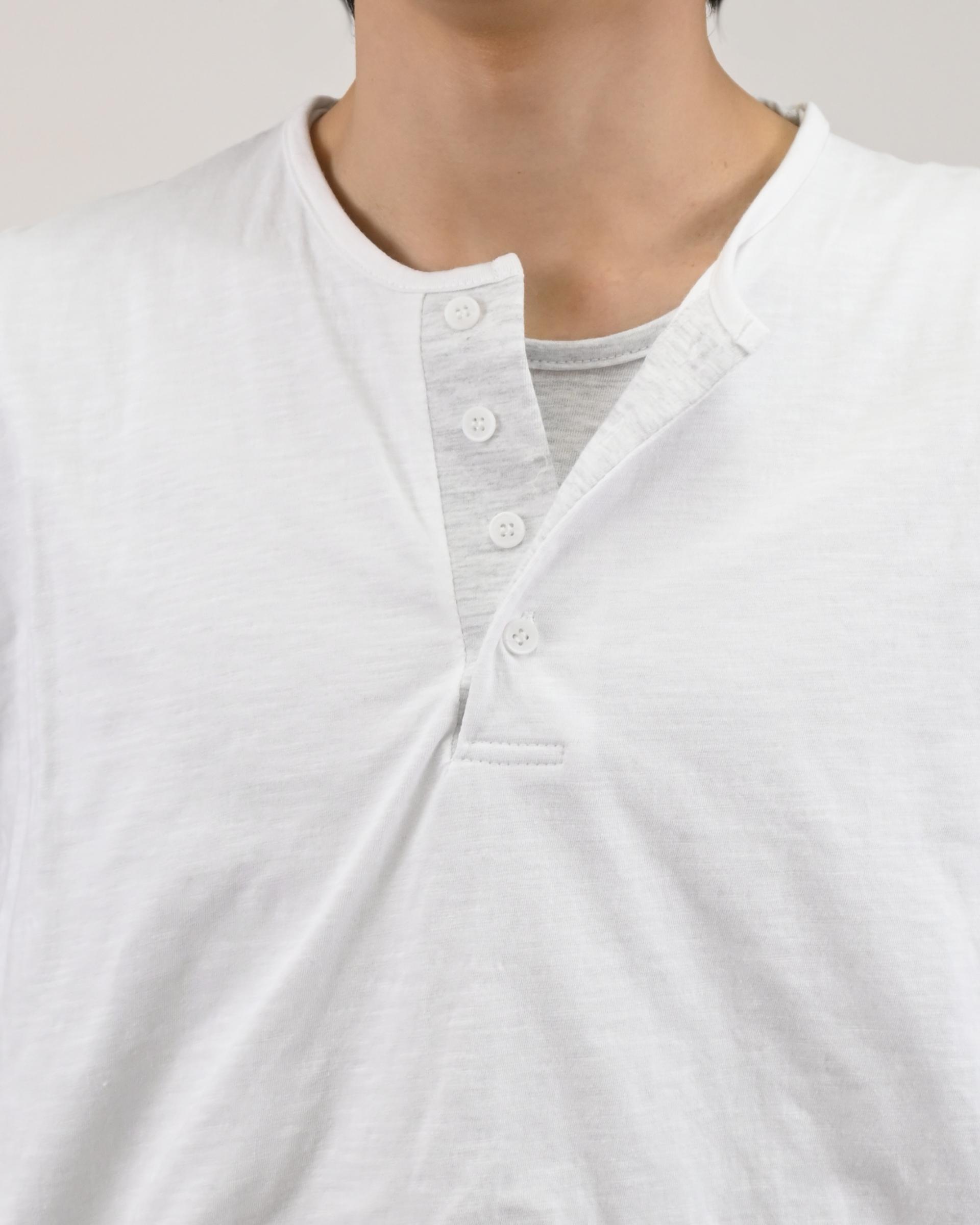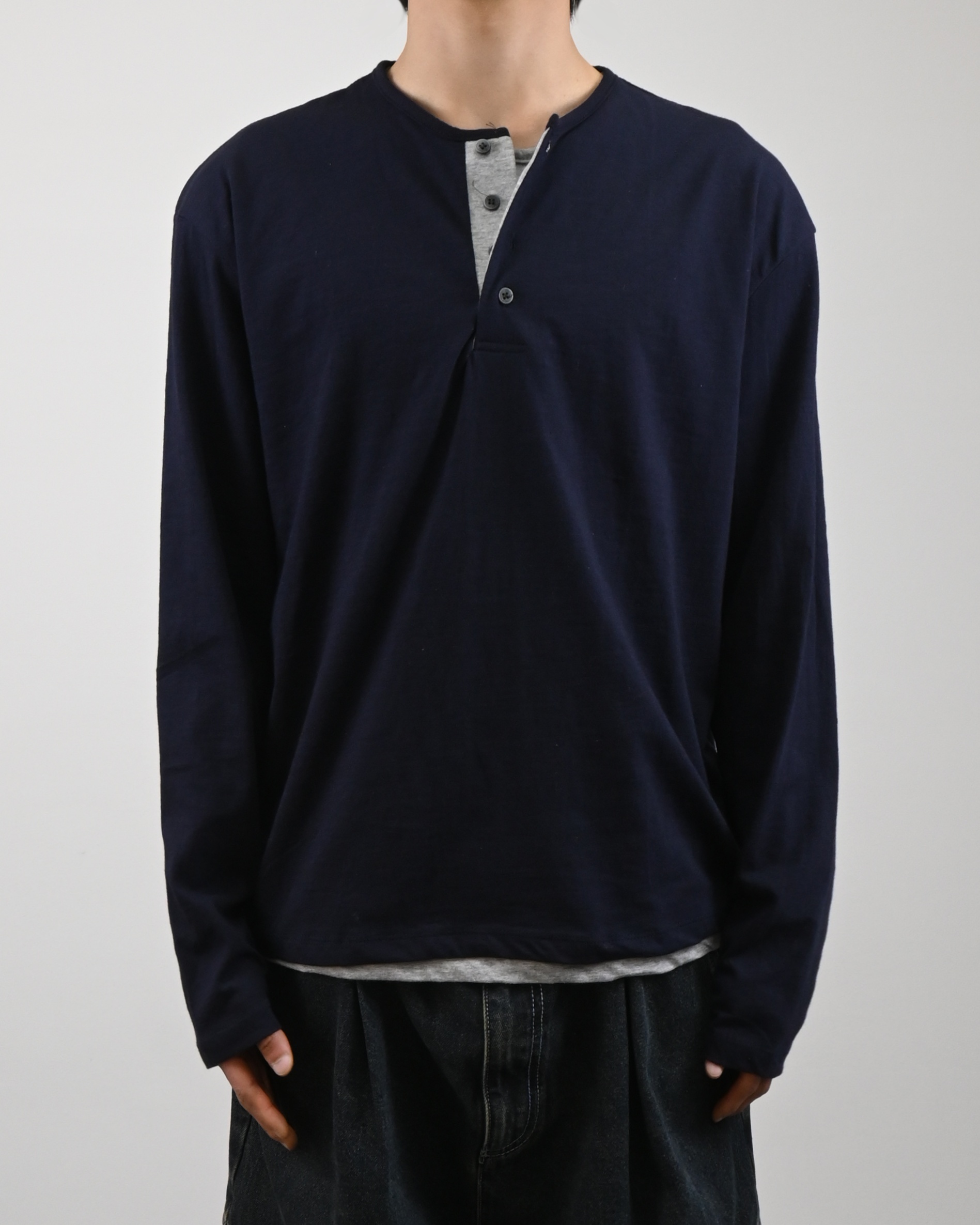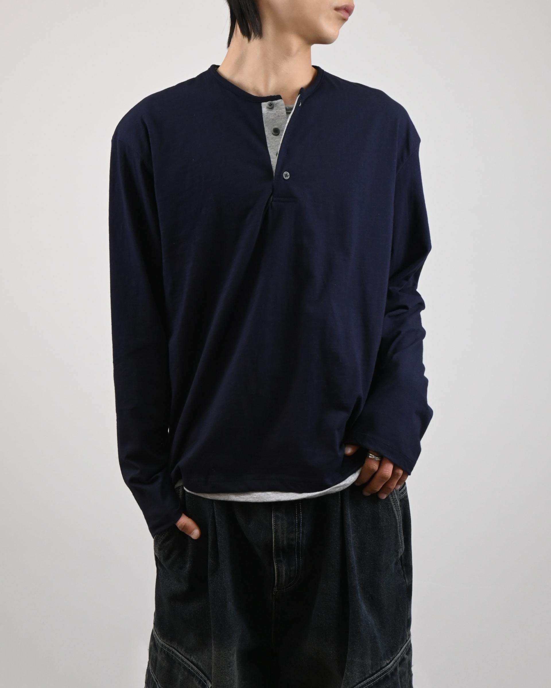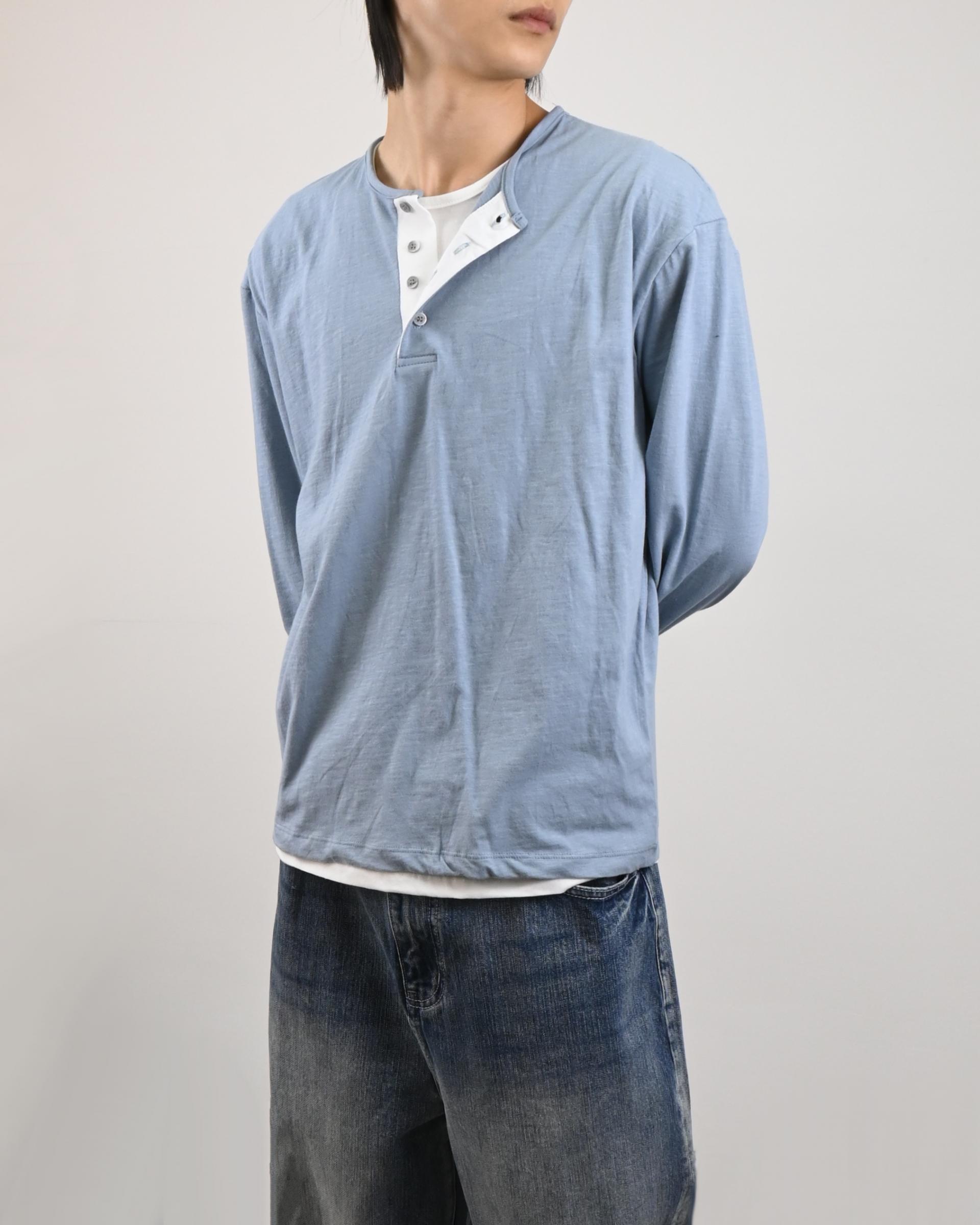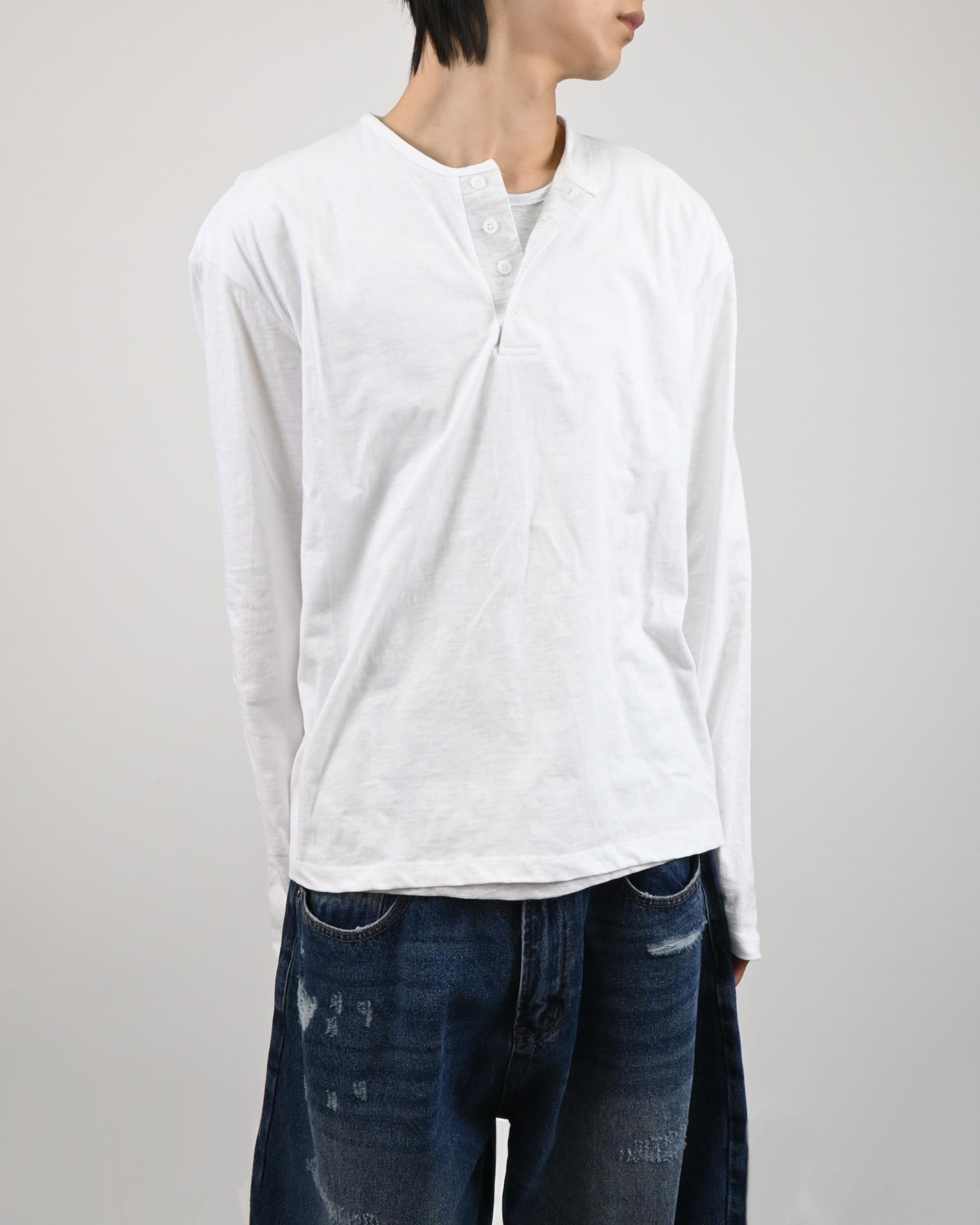 헨리넥 디테일에 이너가 레이어드된 듯한 디자인으로