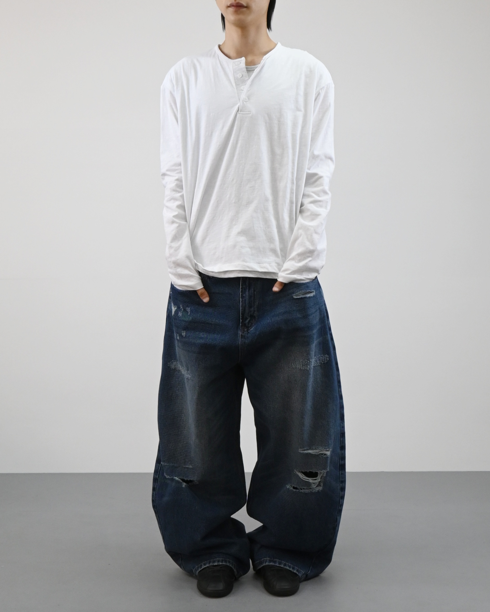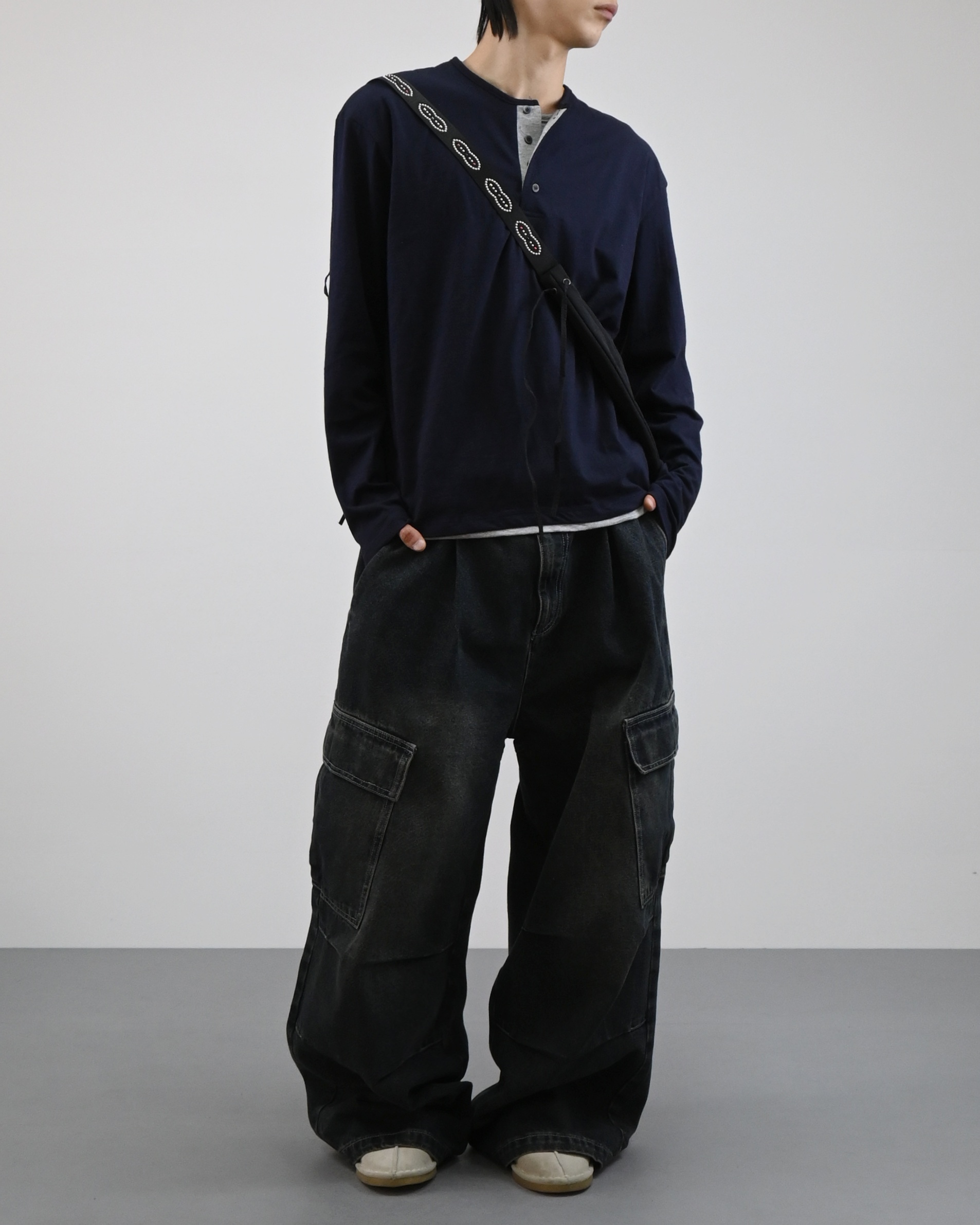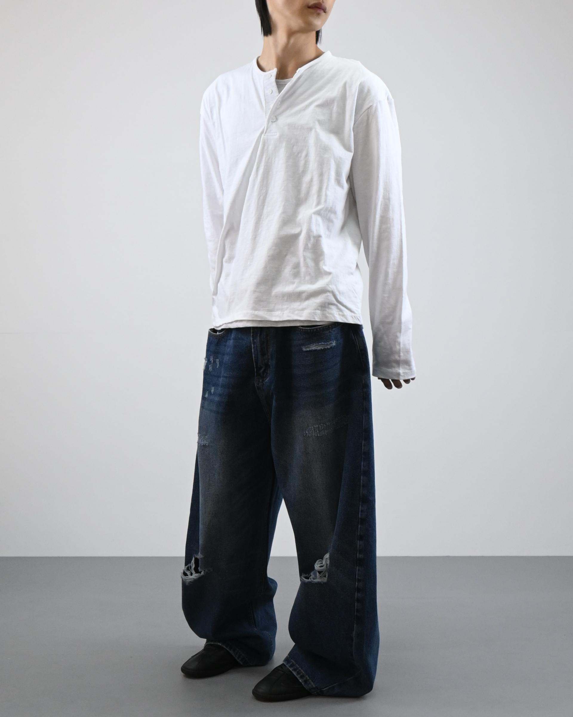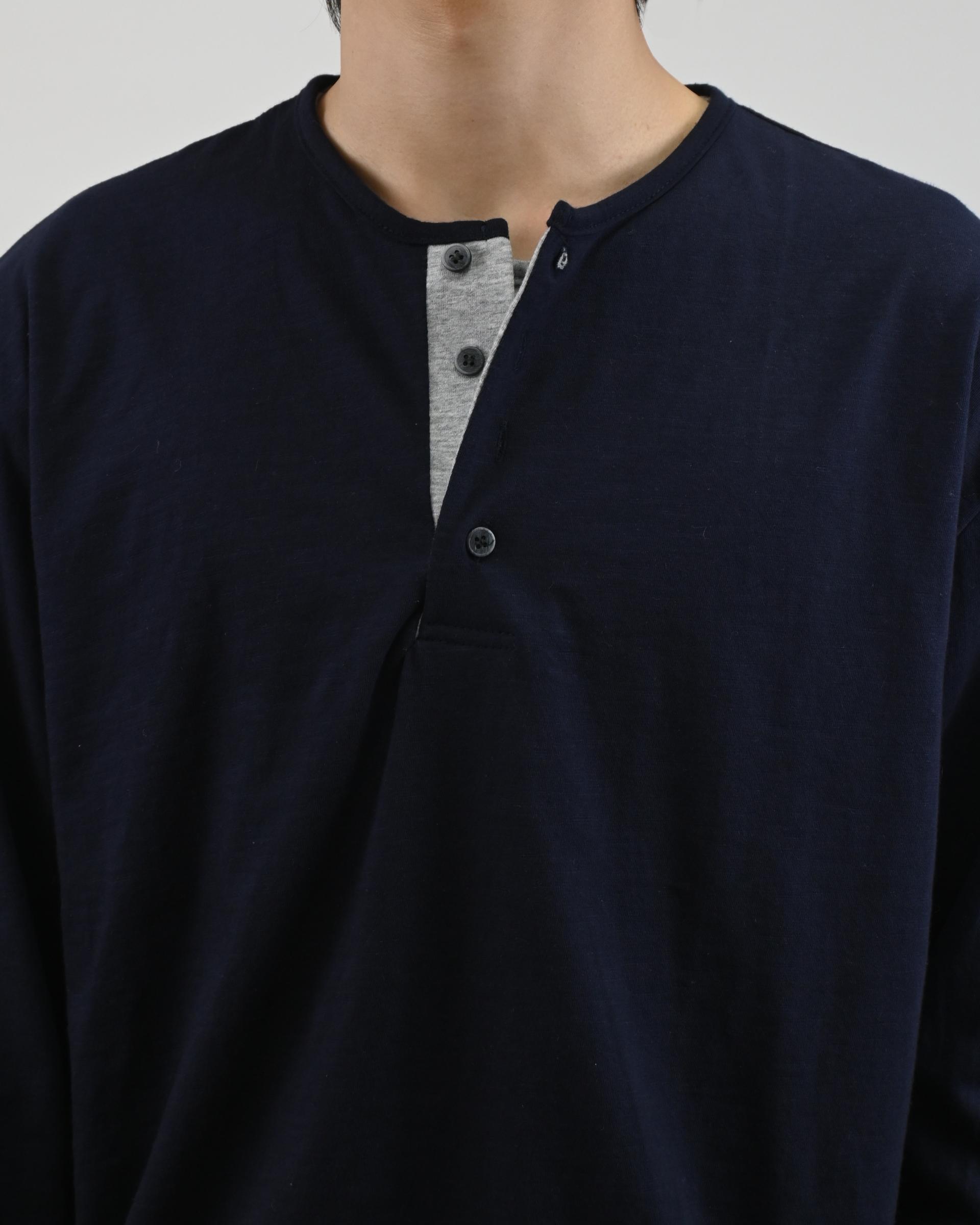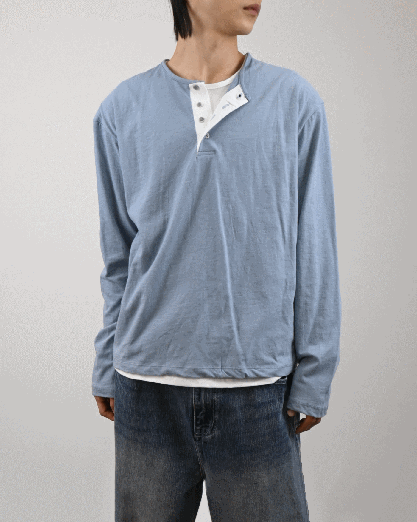 헨리넥 디테일에 이너가 레이어드된 듯한 디자인으로