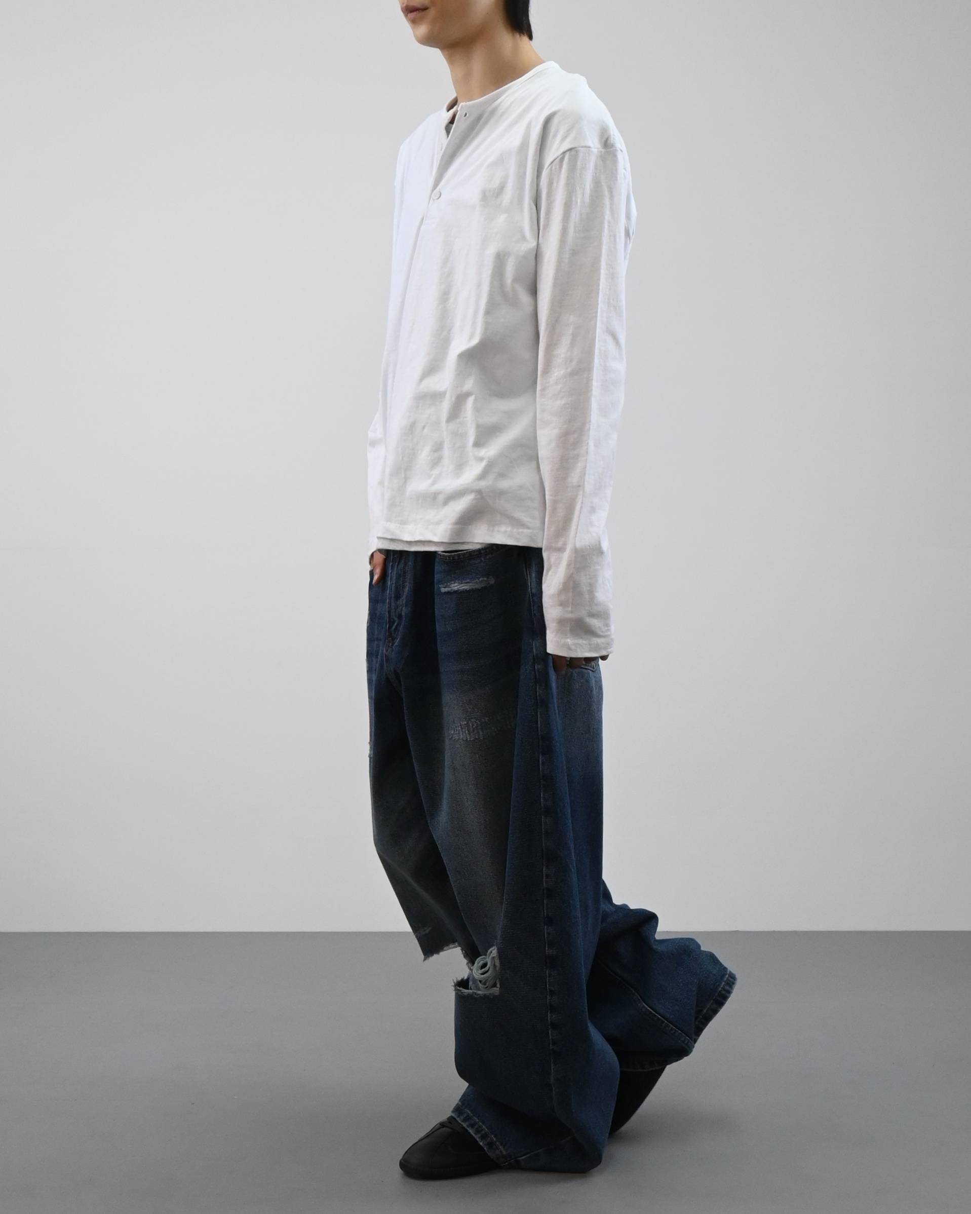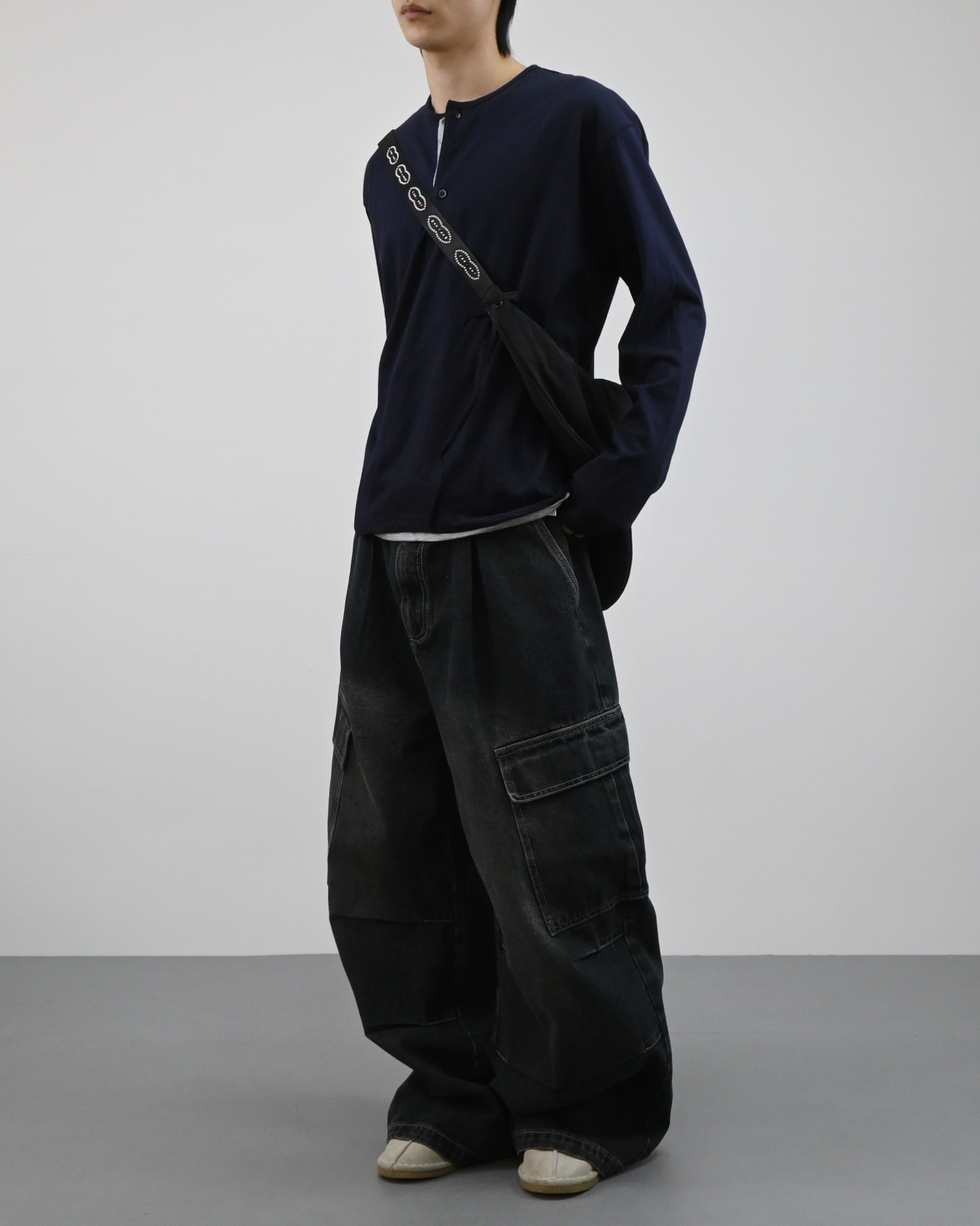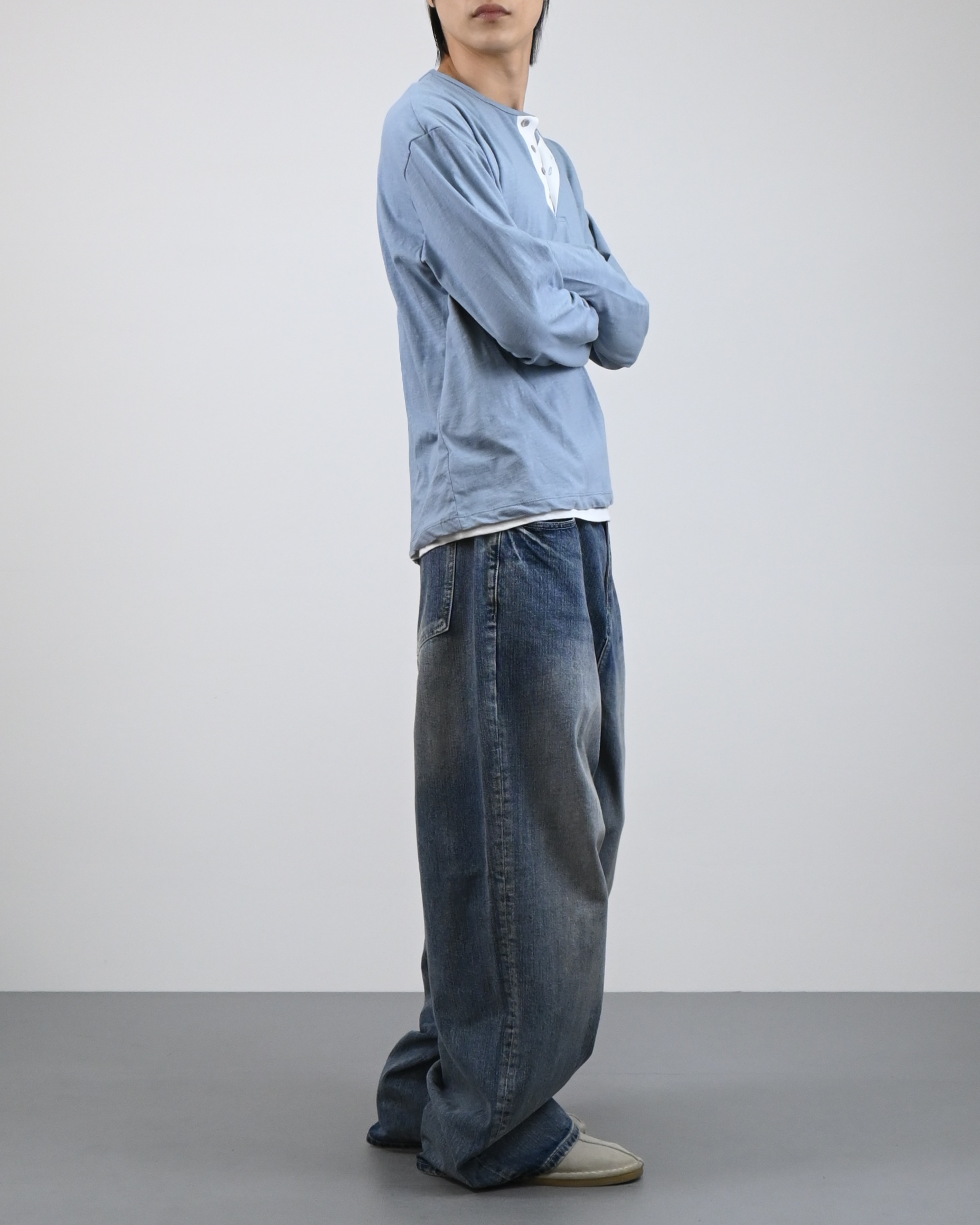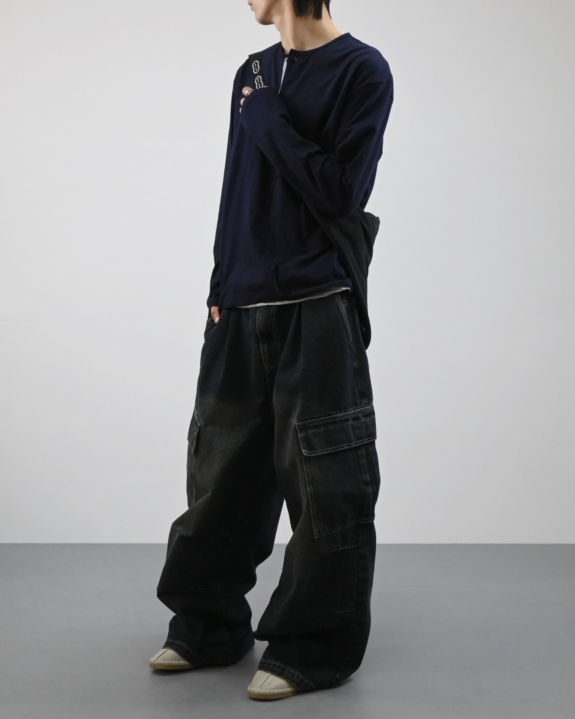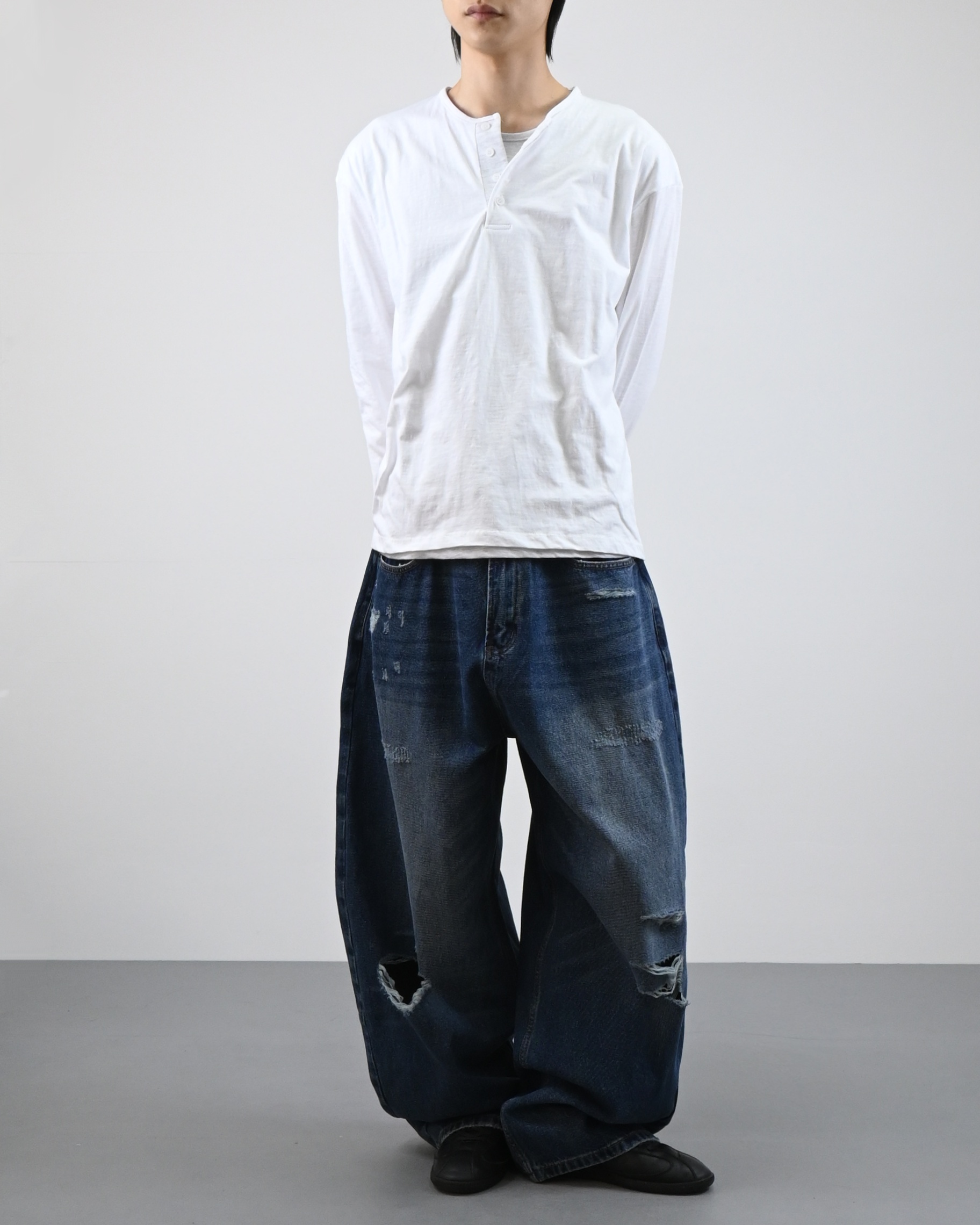 헨리넥 디테일에 이너가 레이어드된 듯한 디자인으로