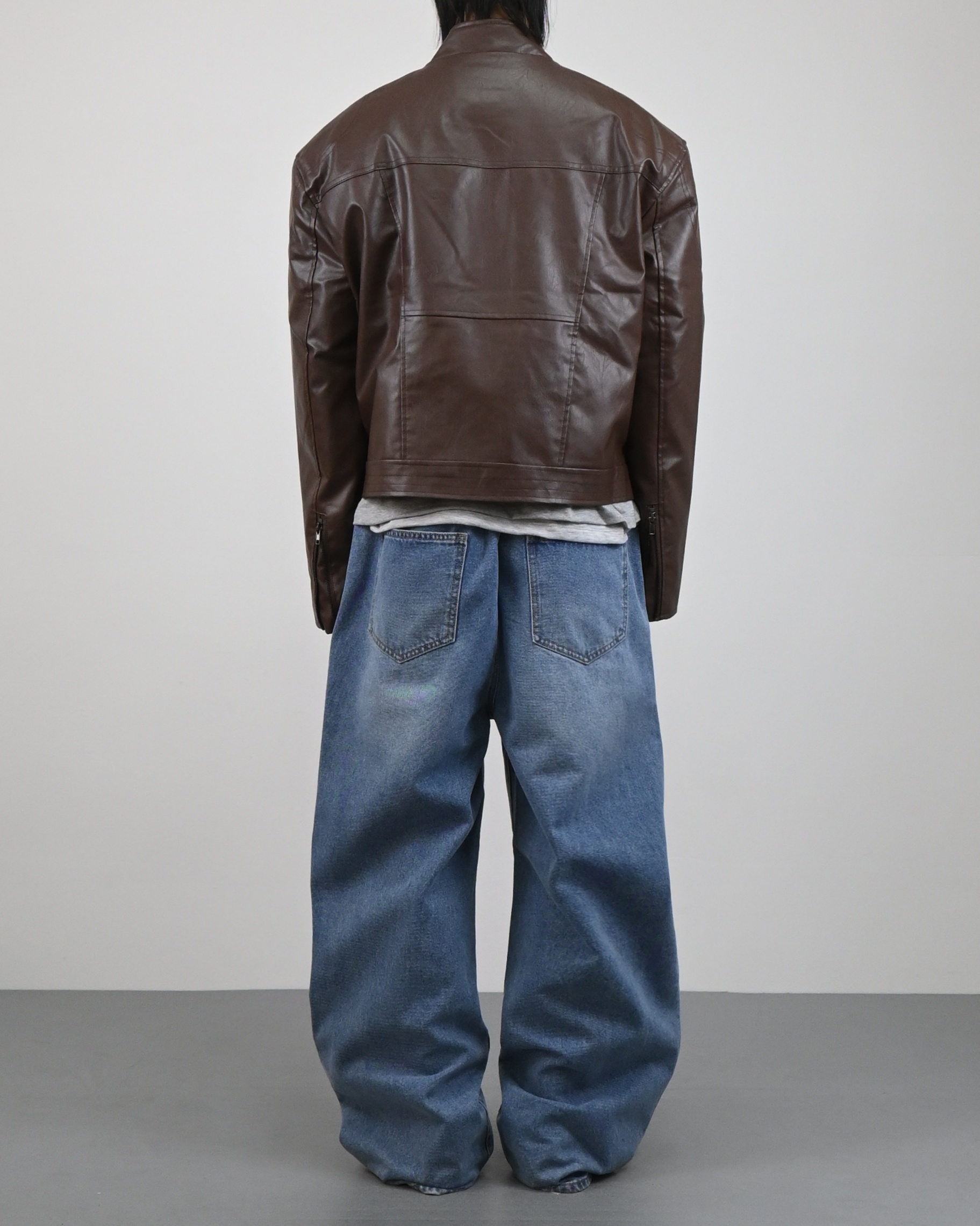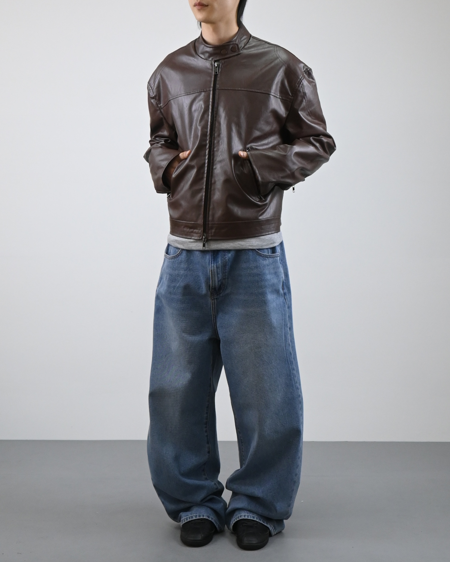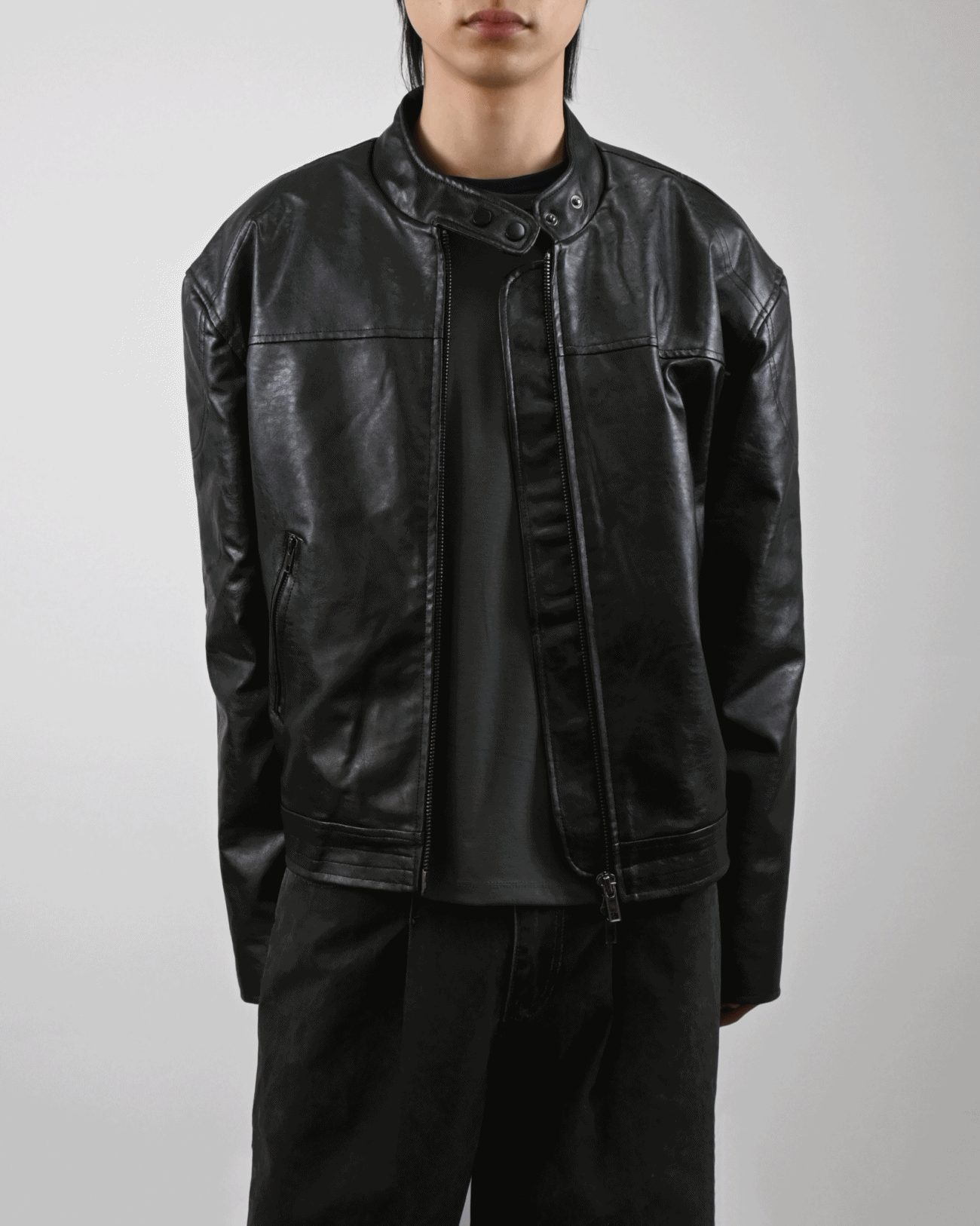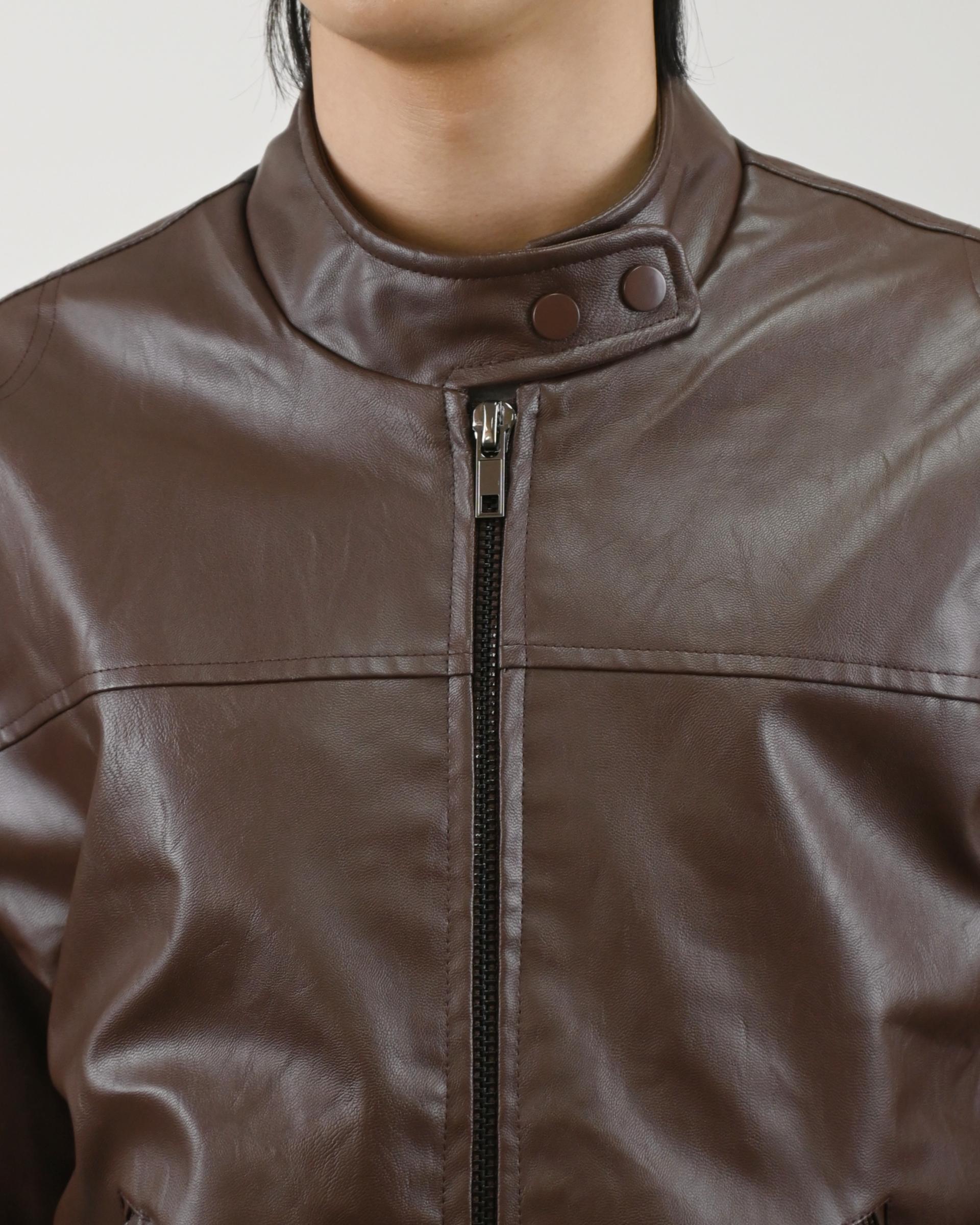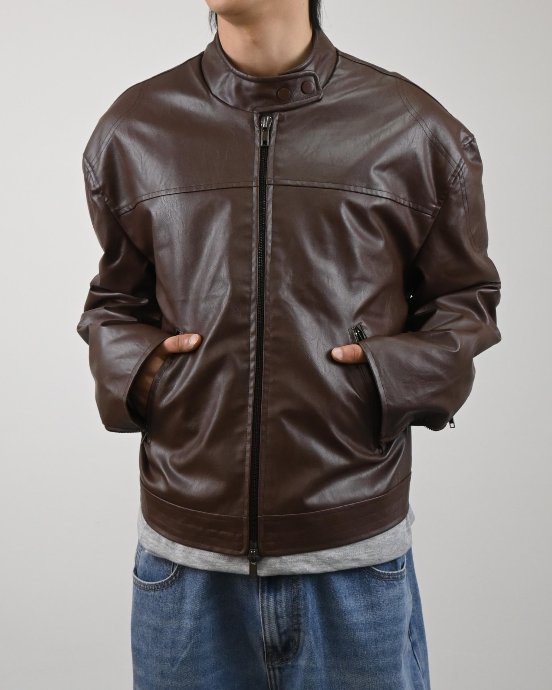 레더 텍스처가 특징인 레더 자켓입니다.
