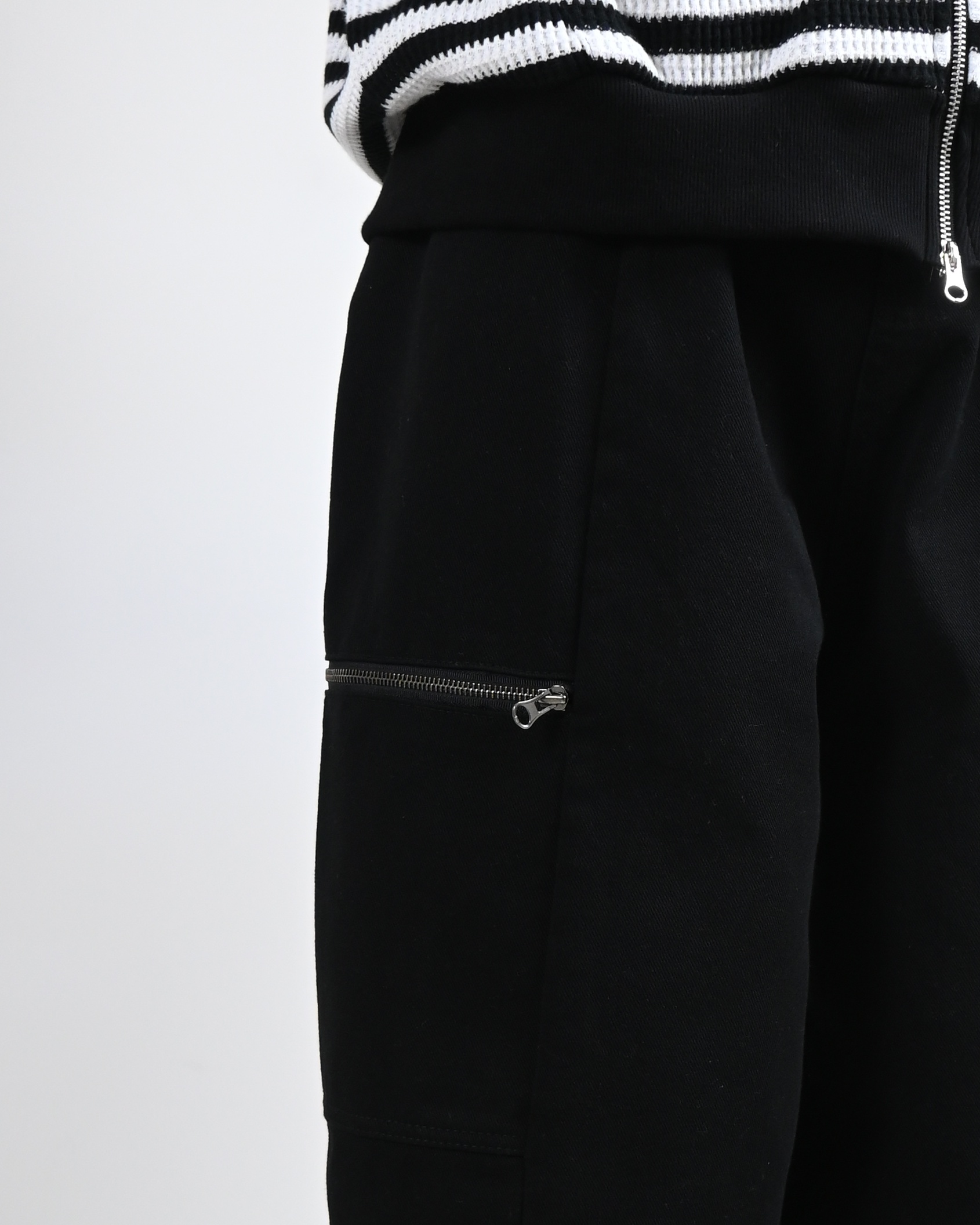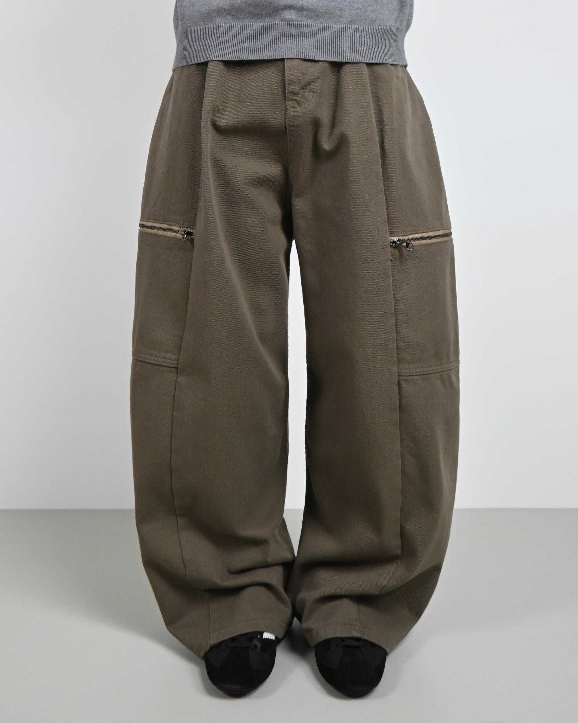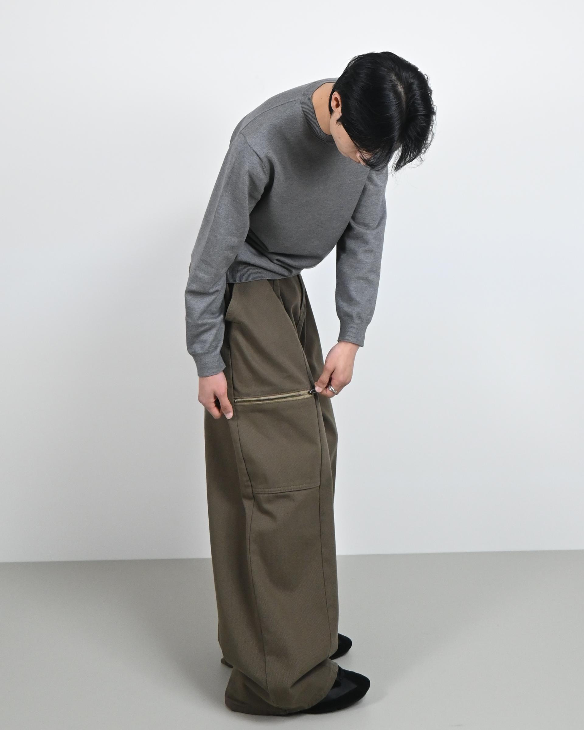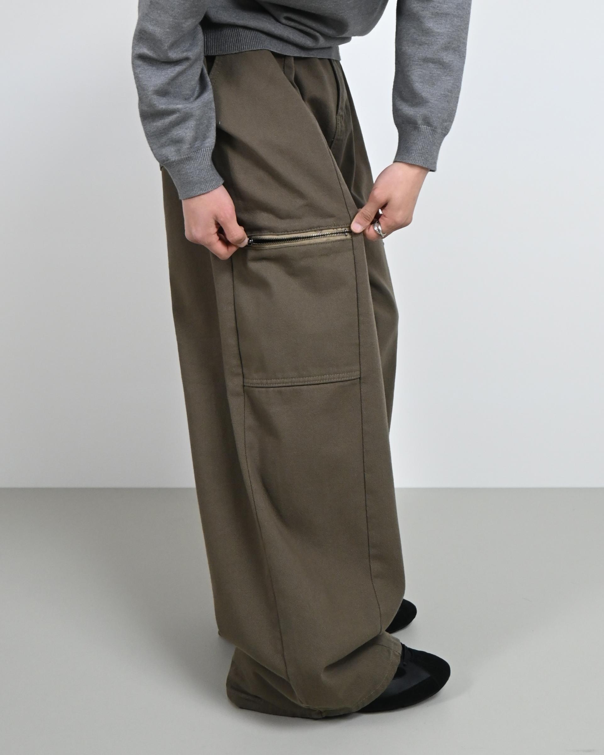 측면에 지퍼 포켓이 포인트인 코튼 팬츠입니다.