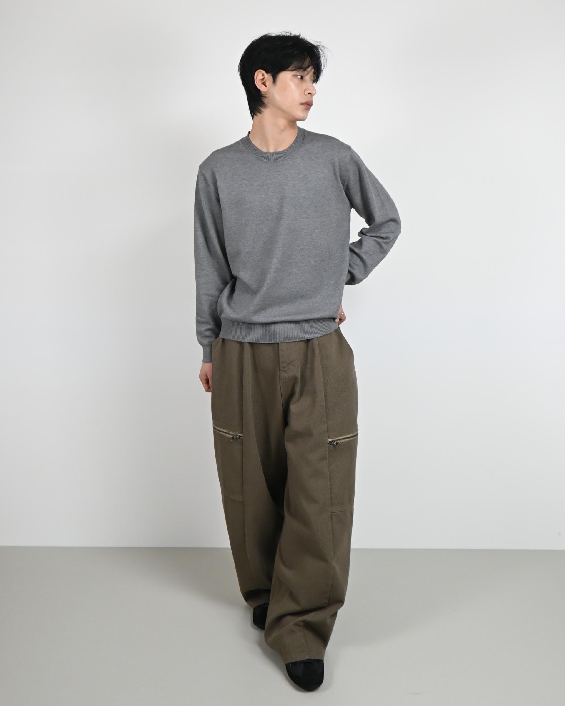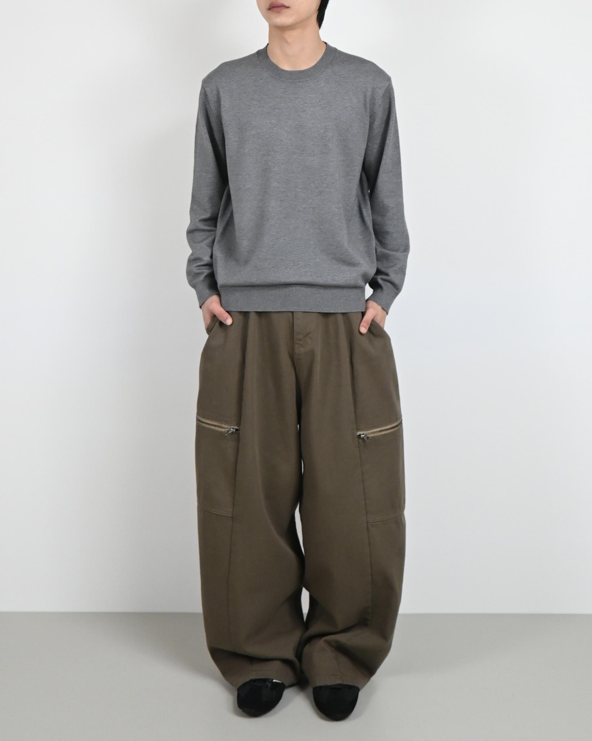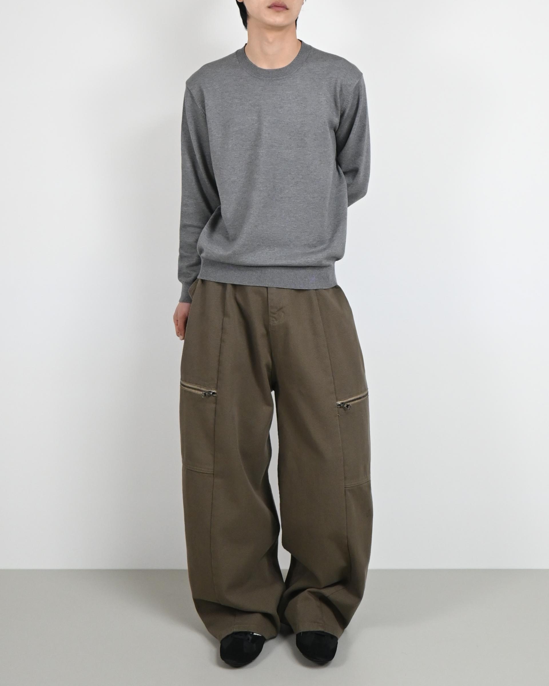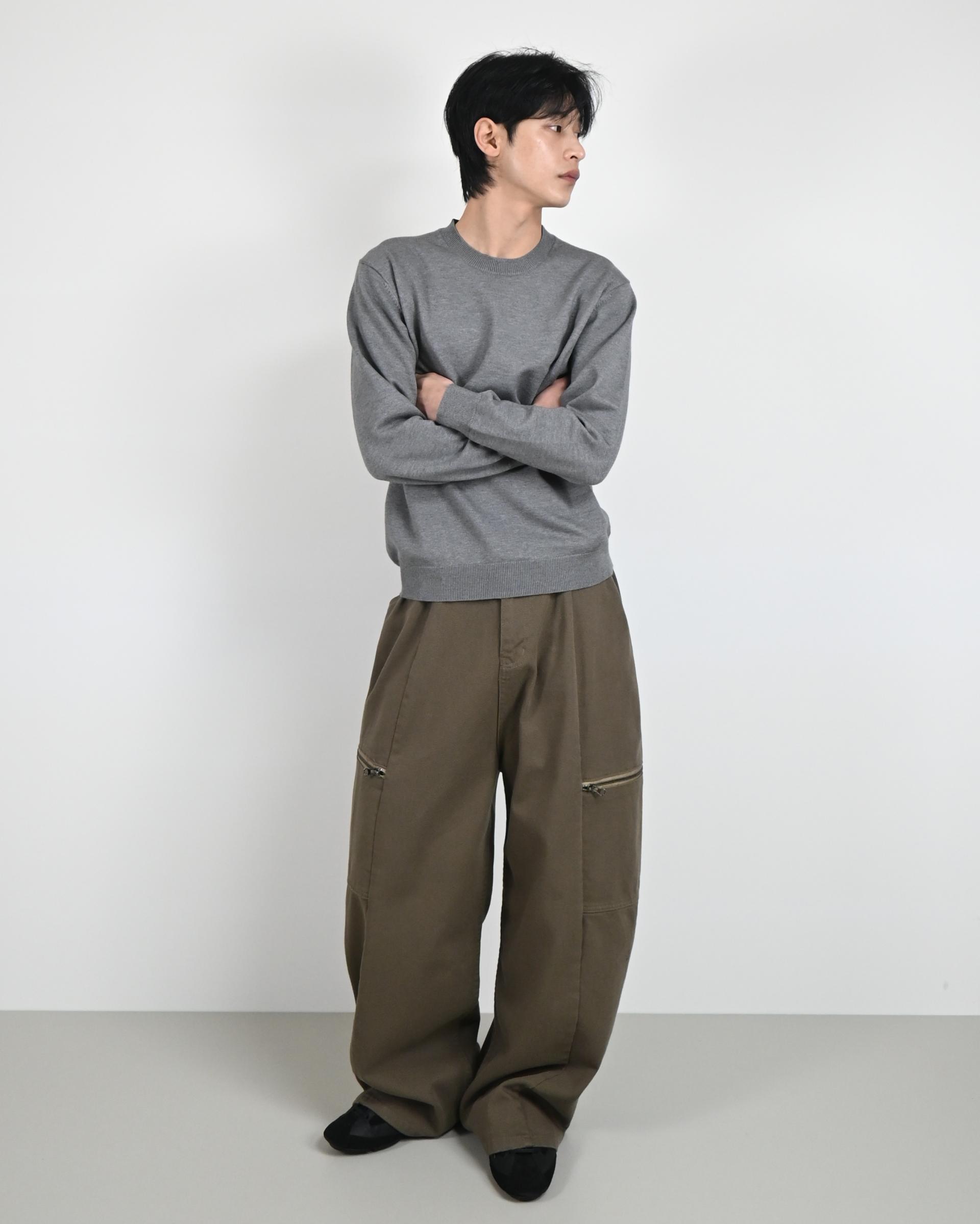 측면에 지퍼 포켓이 포인트인 코튼 팬츠입니다.