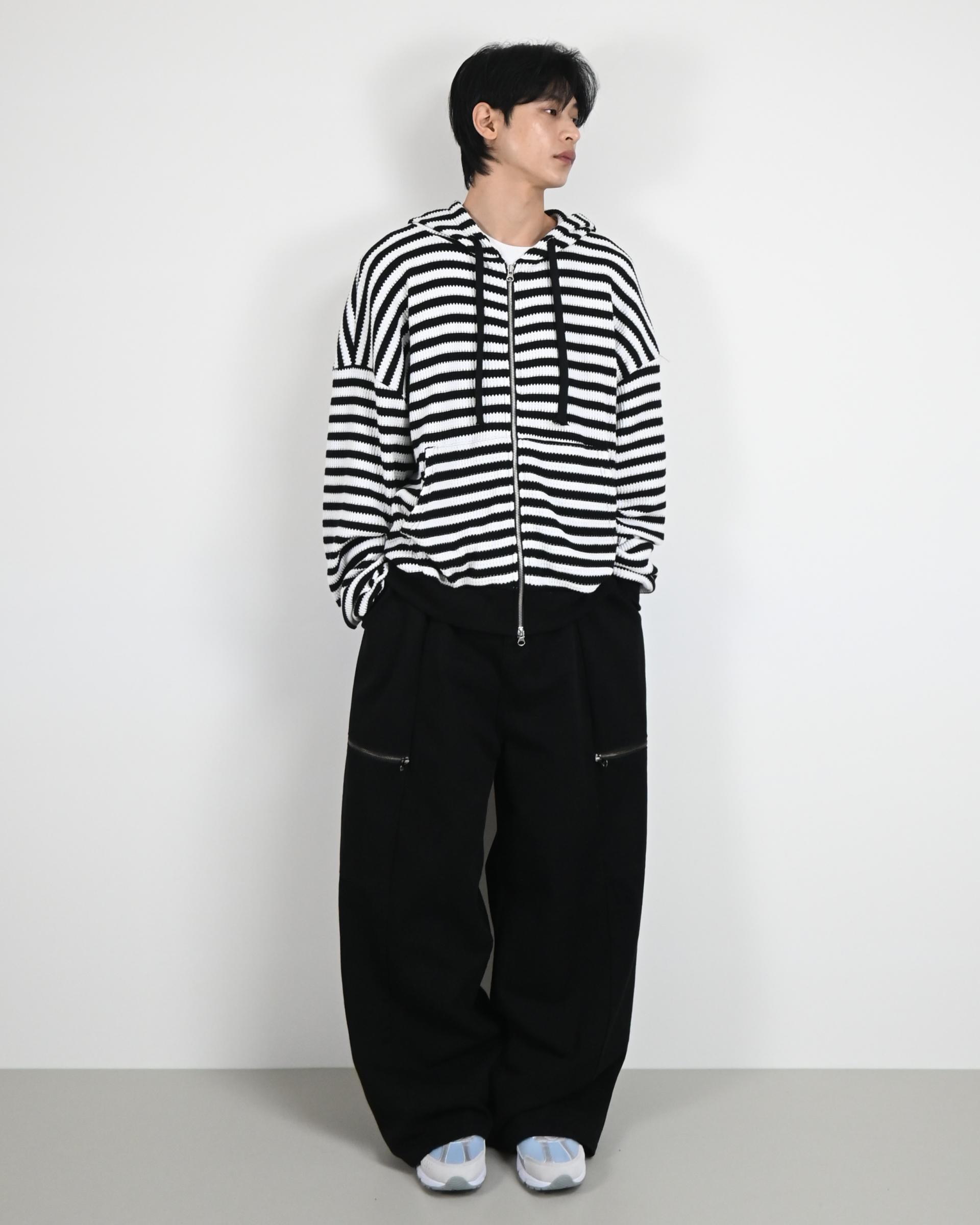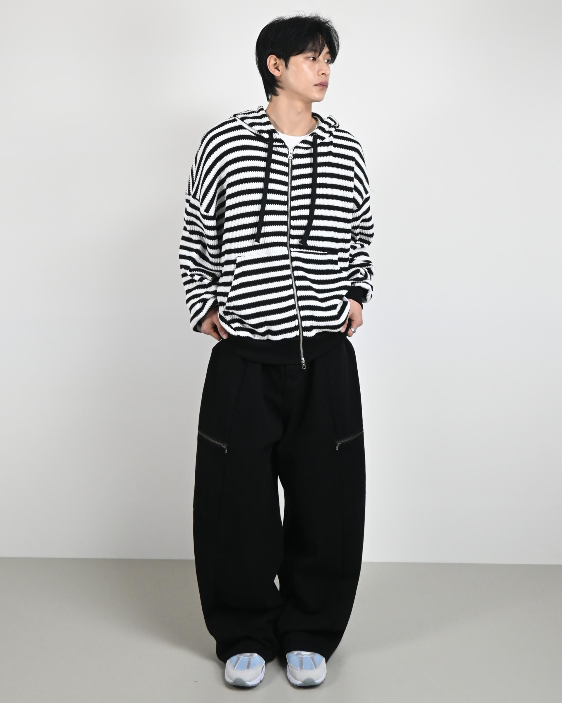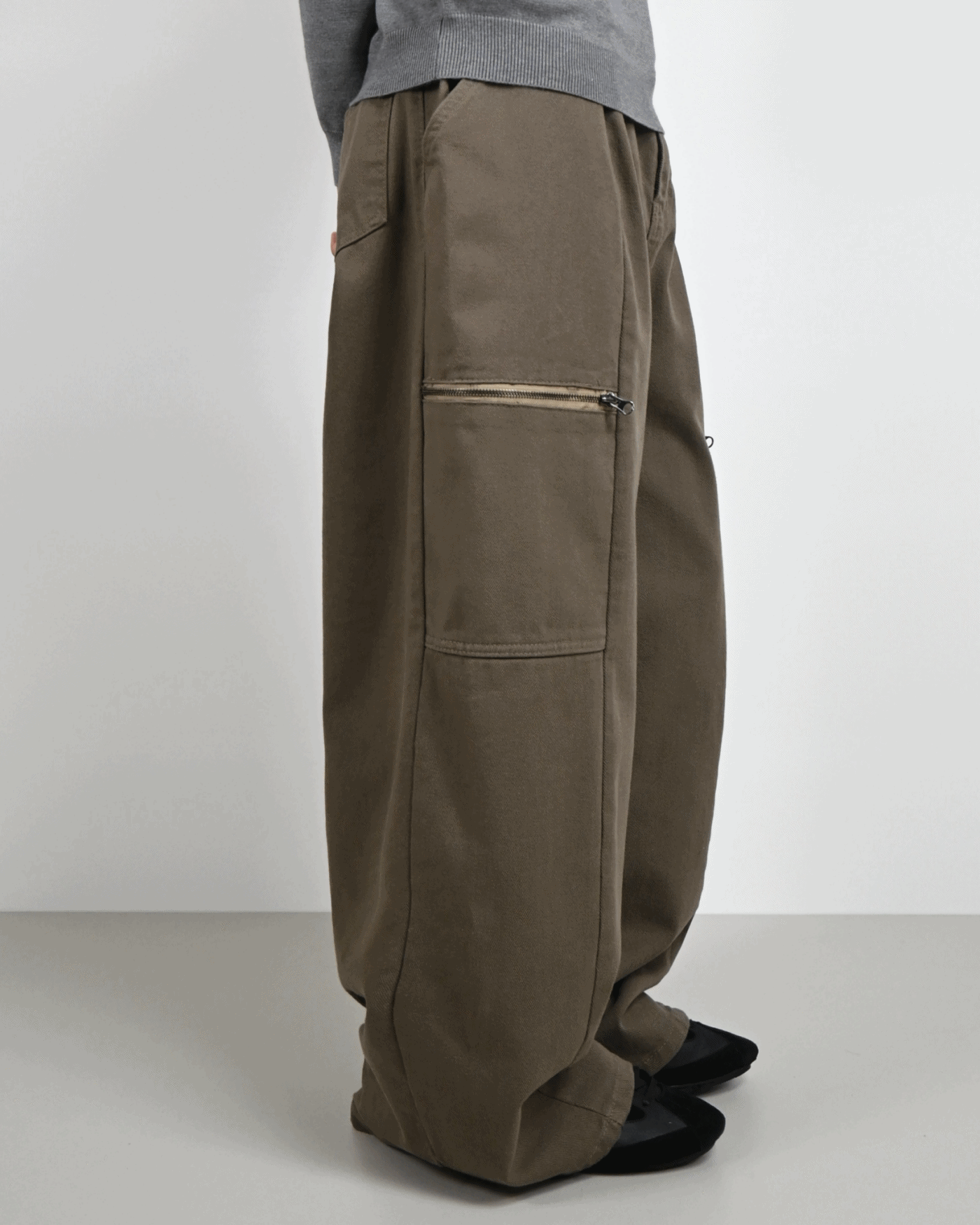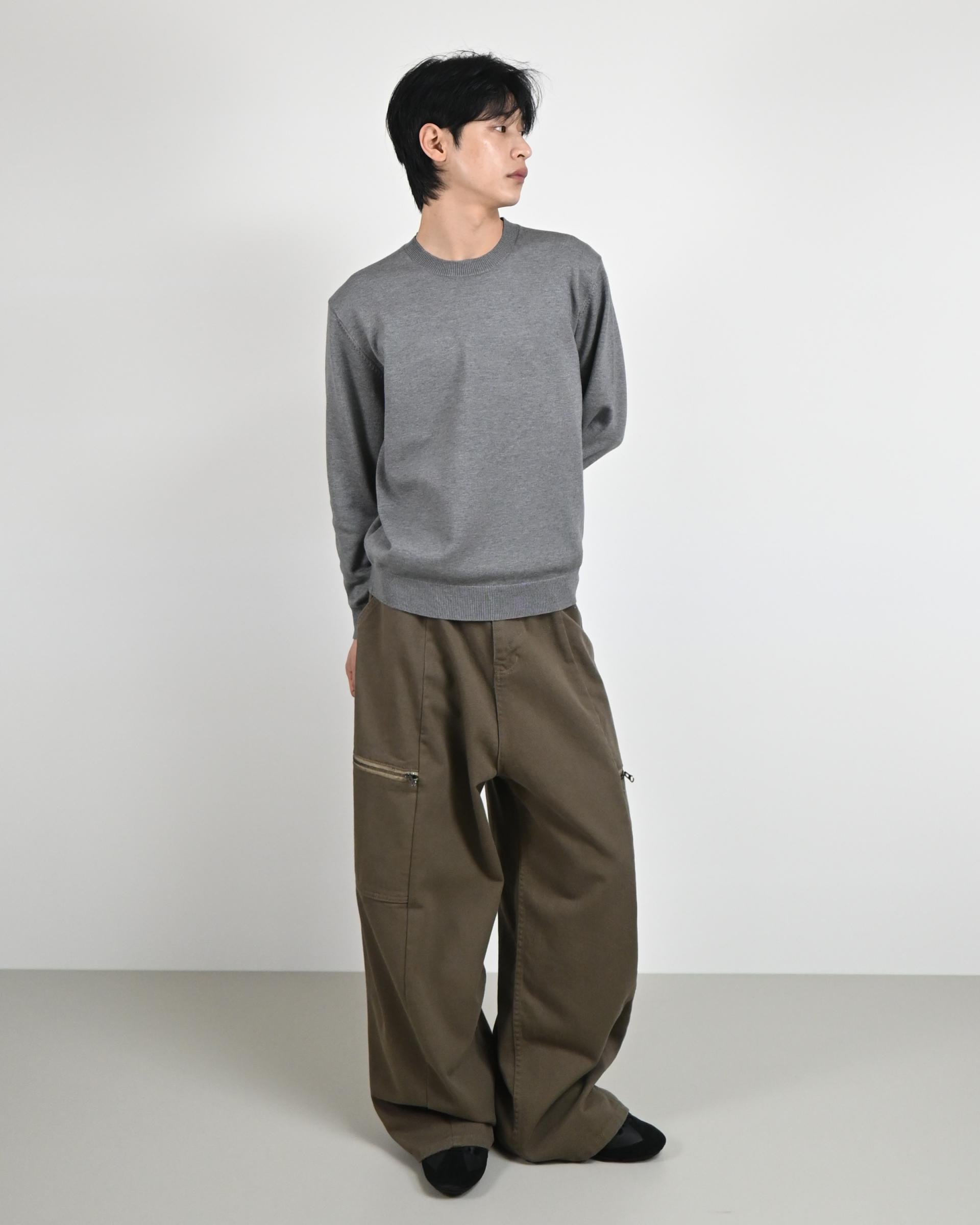 측면에 지퍼 포켓이 포인트인 코튼 팬츠입니다.