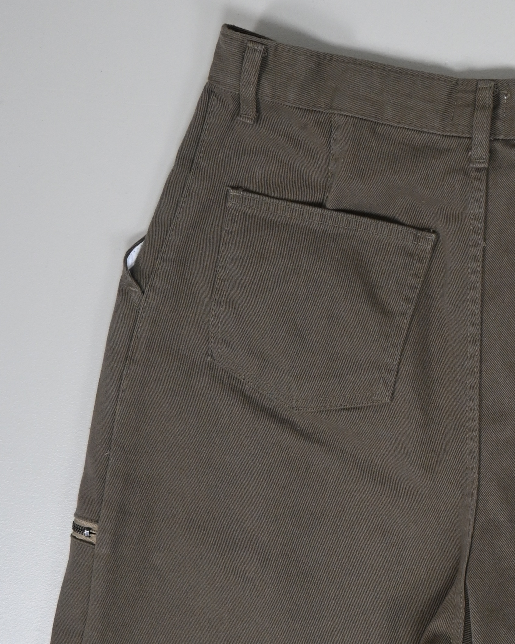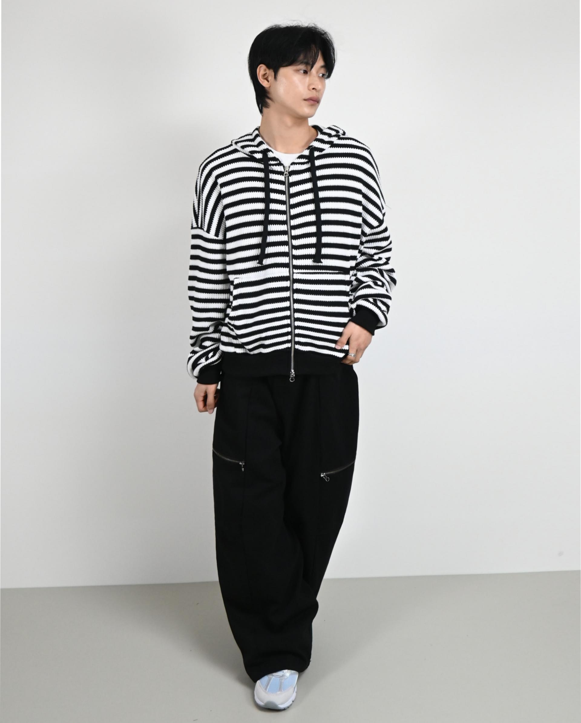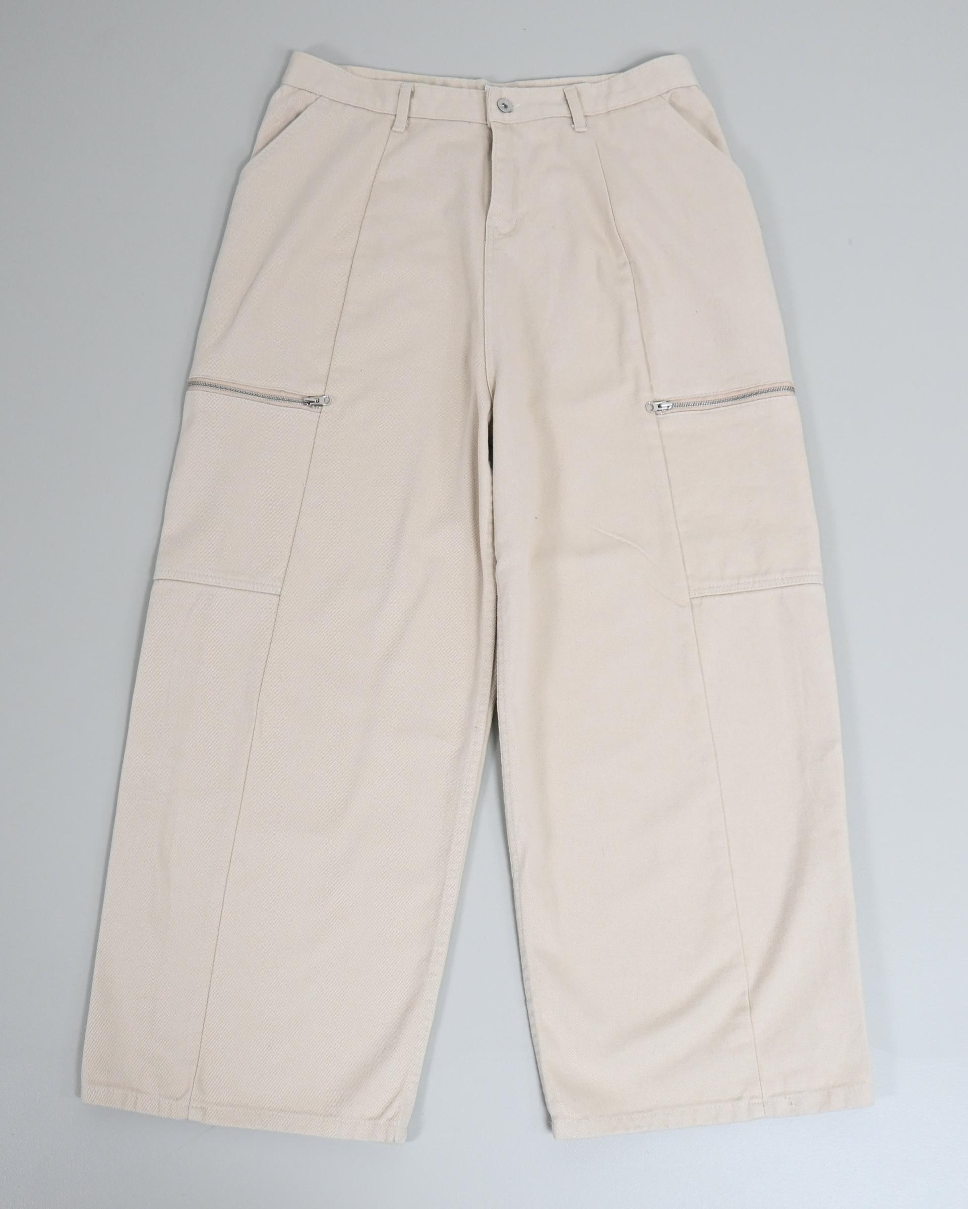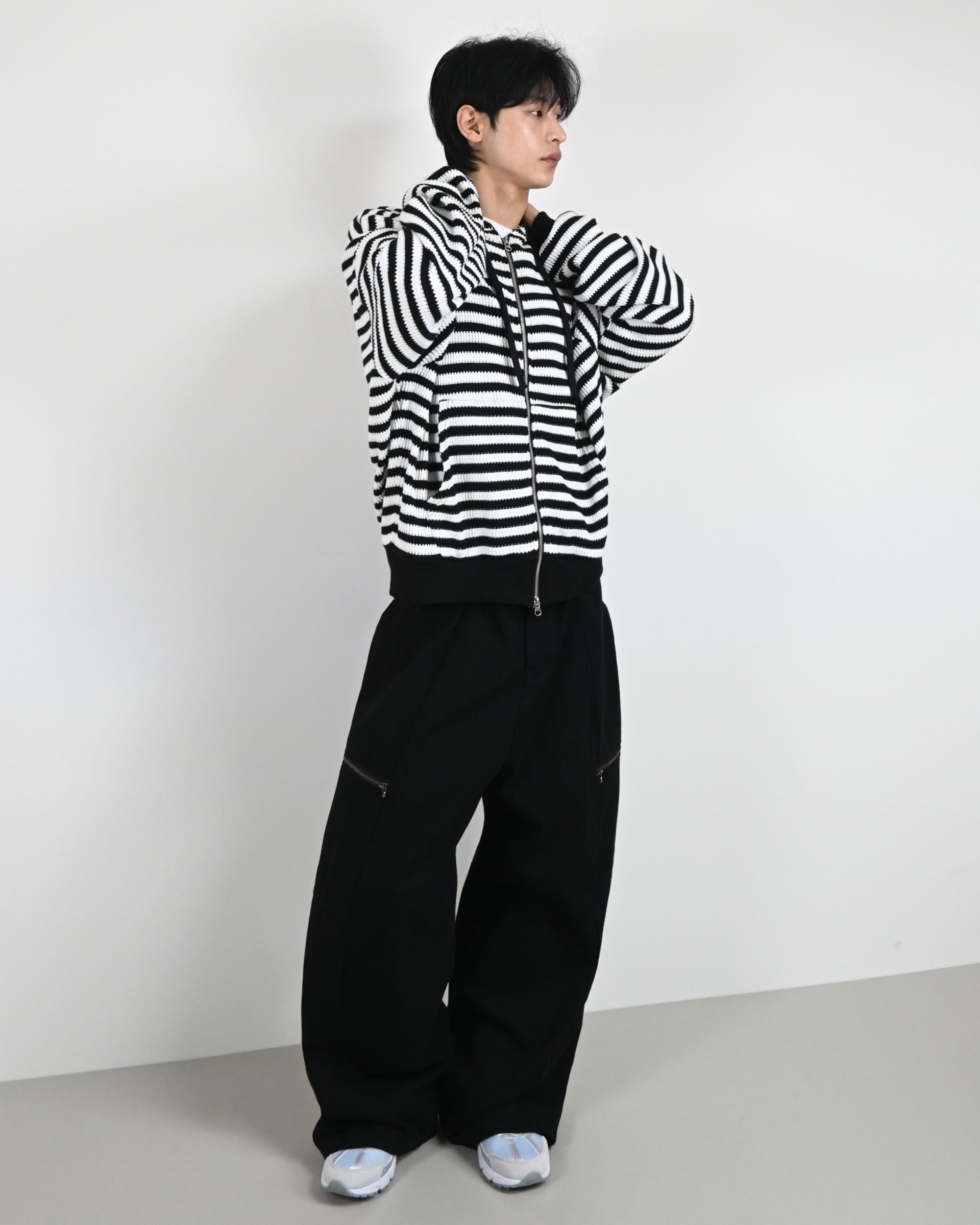 측면에 지퍼 포켓이 포인트인 코튼 팬츠입니다.