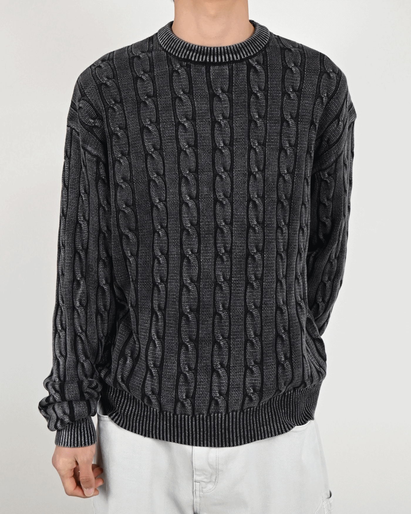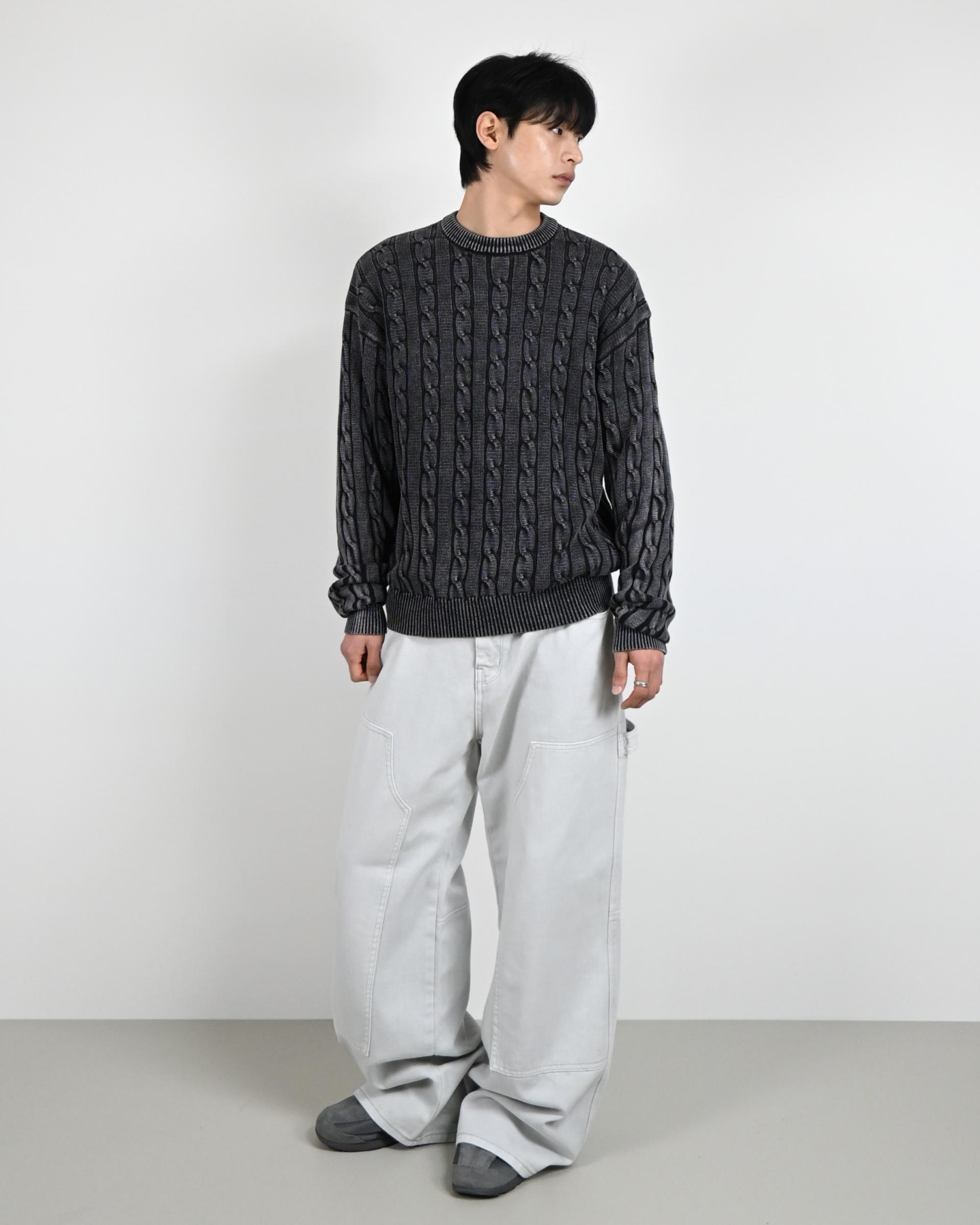 피그먼트 워싱 케이블 니트입니다.