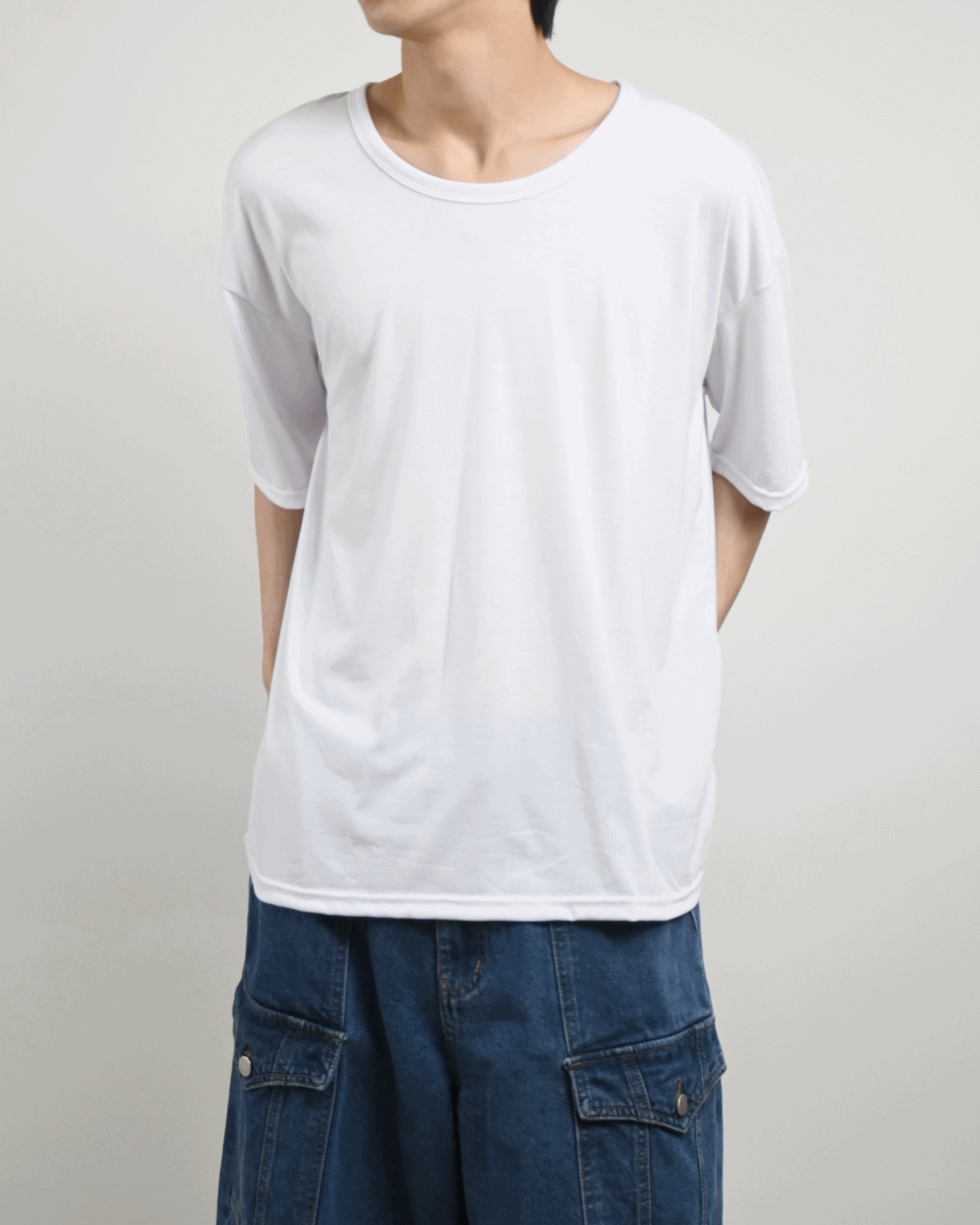U 넥 반팔 티셔츠입니다.