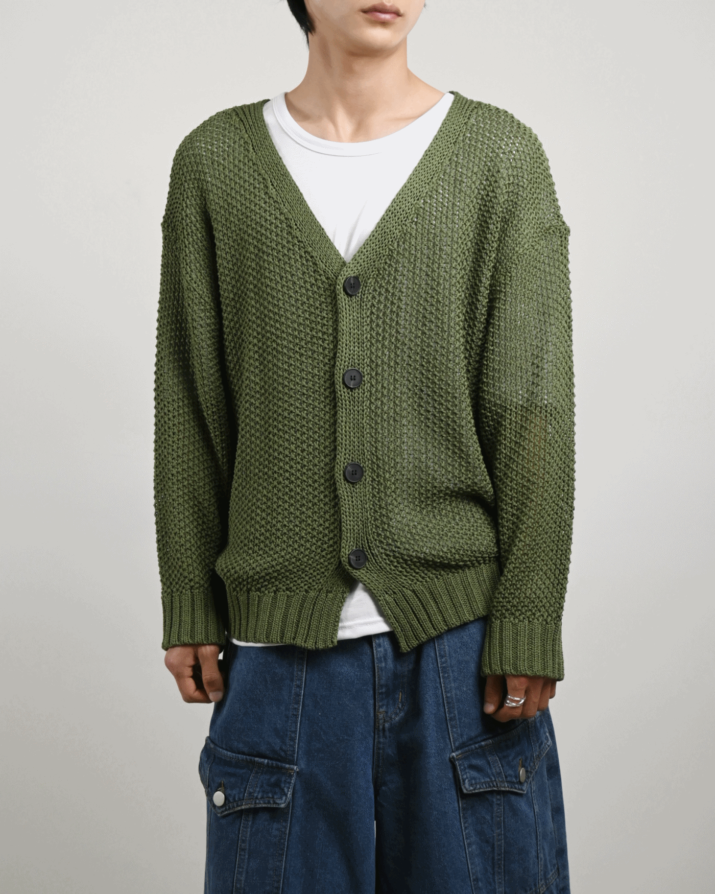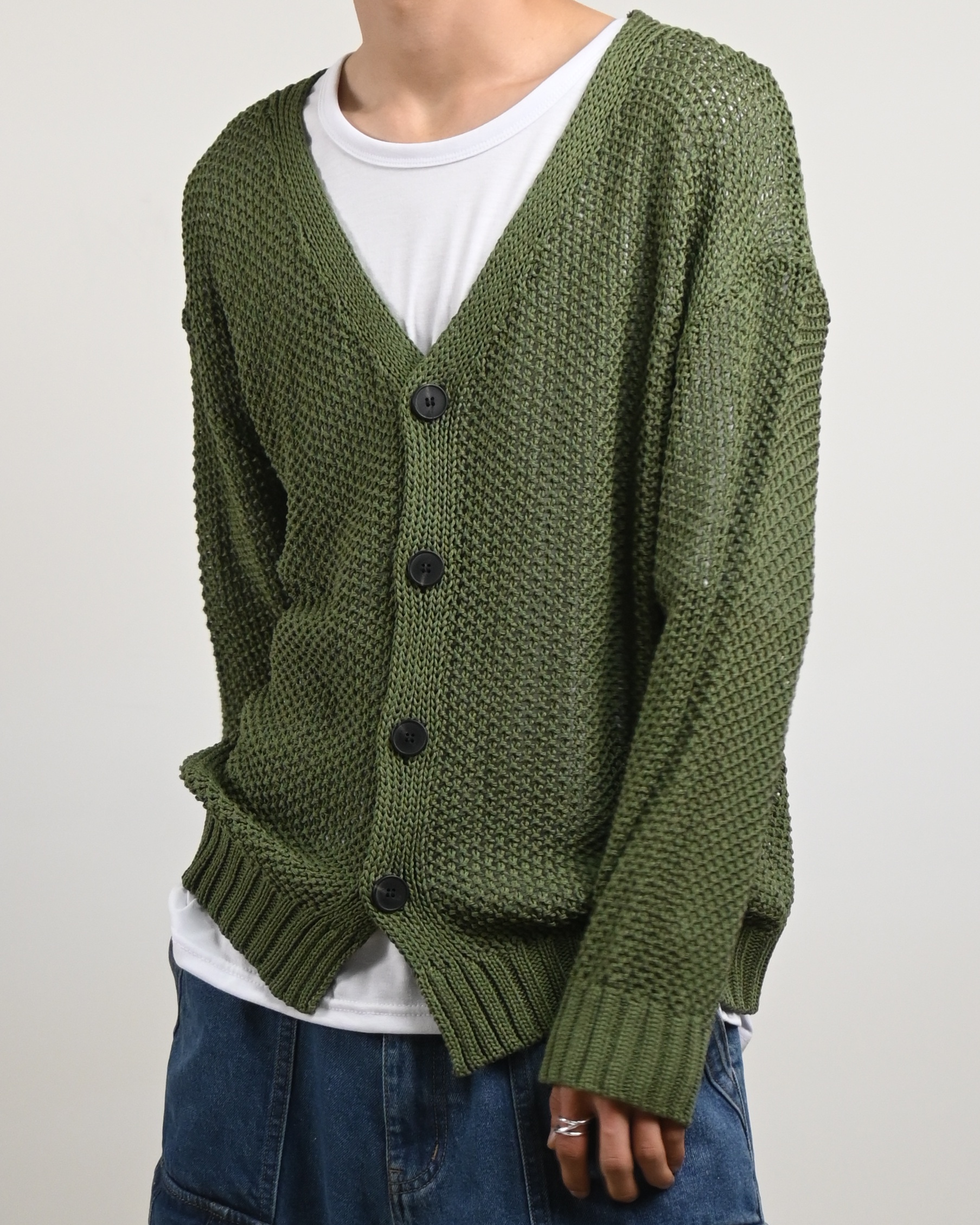 여름용으로 제작된 그물 니트 가디건입니다.